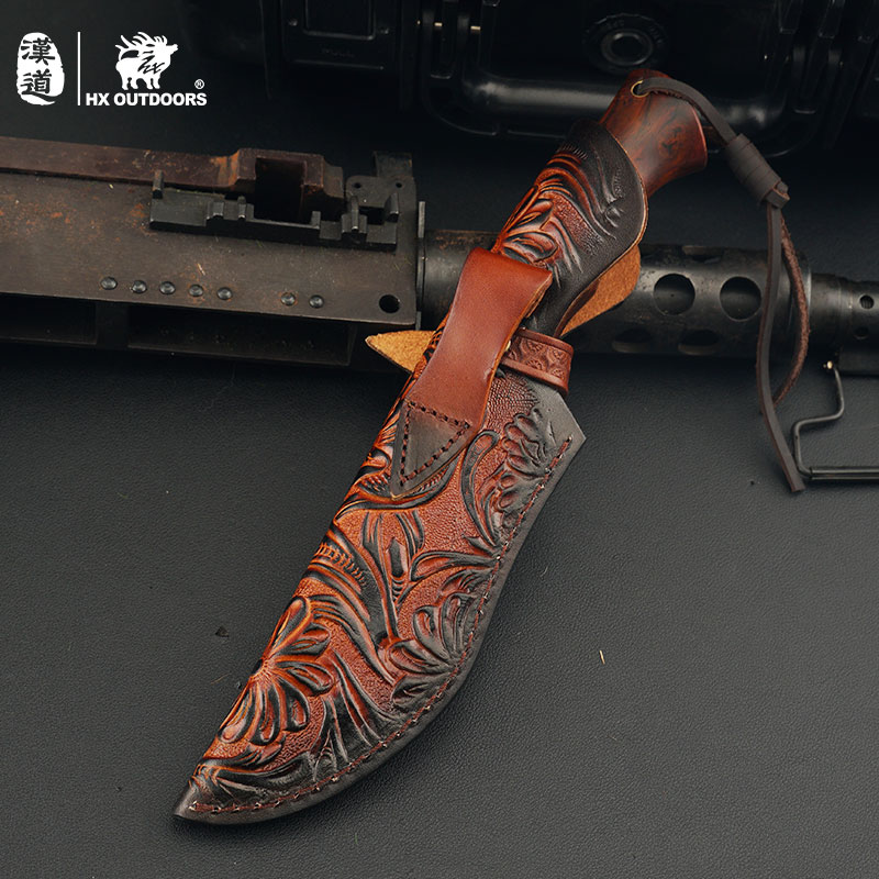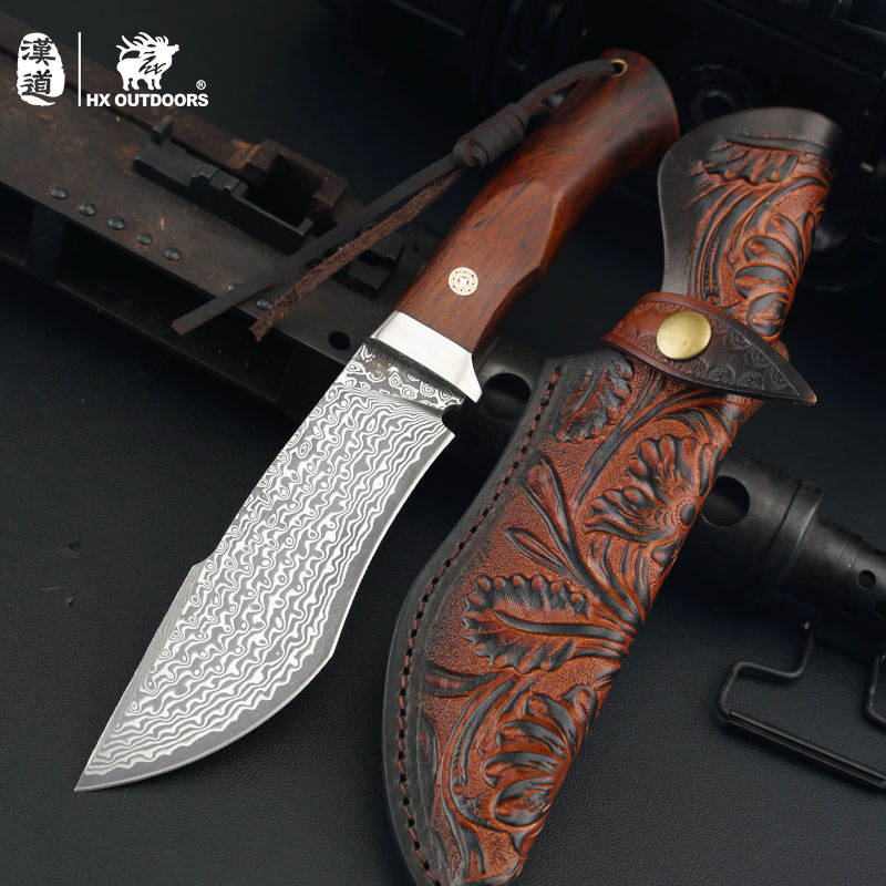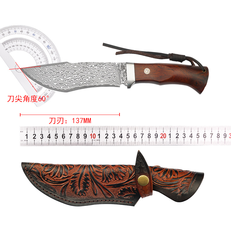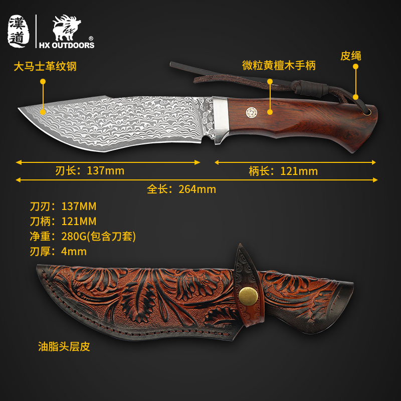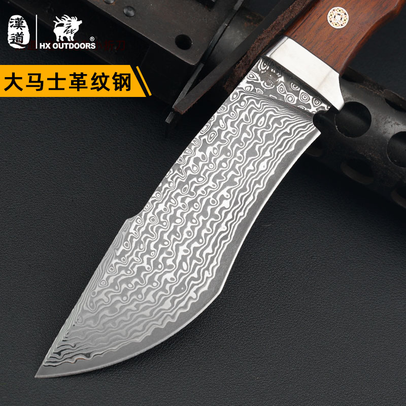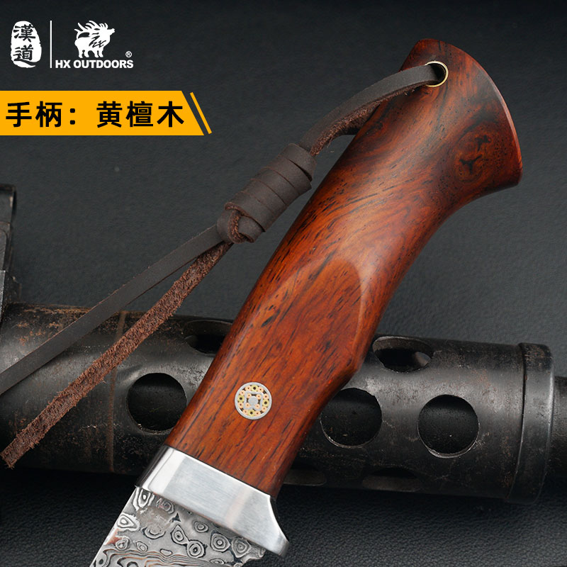 汉道战神大马士革钢户外战术直刀微粒黄檀木手柄手工直刀(大款)
