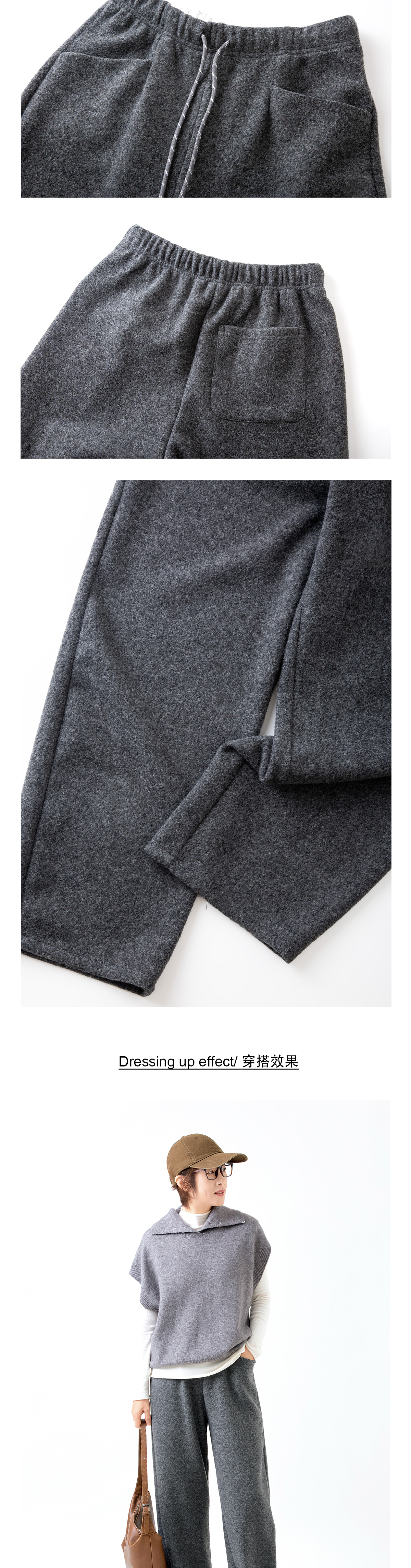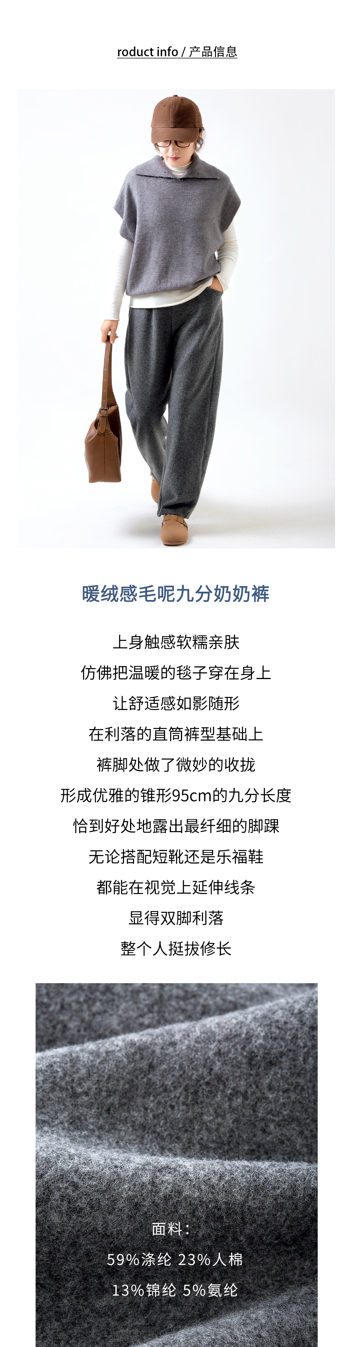 暖绒感毛呢九分奶奶裤