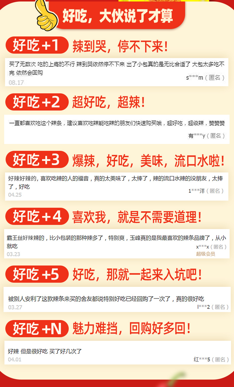 玉峰 霸王丝 爆辣味 辣条 18g/袋