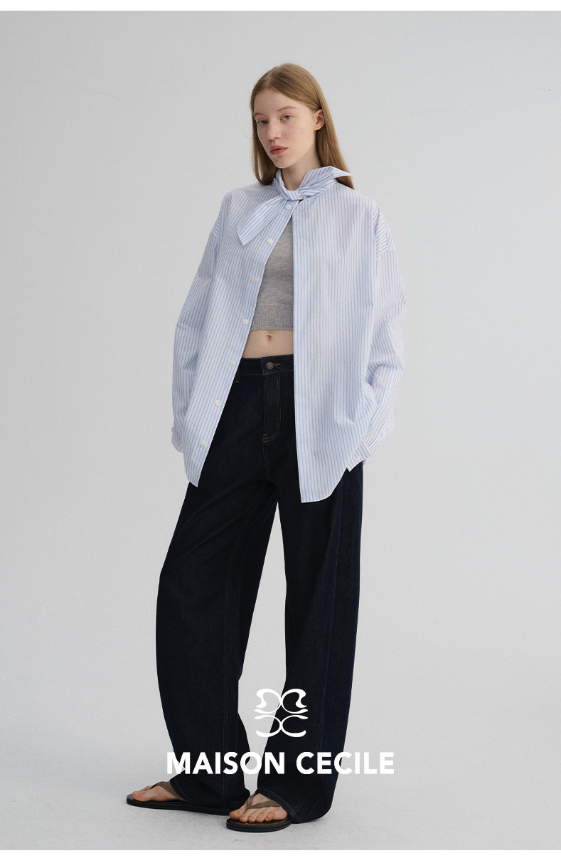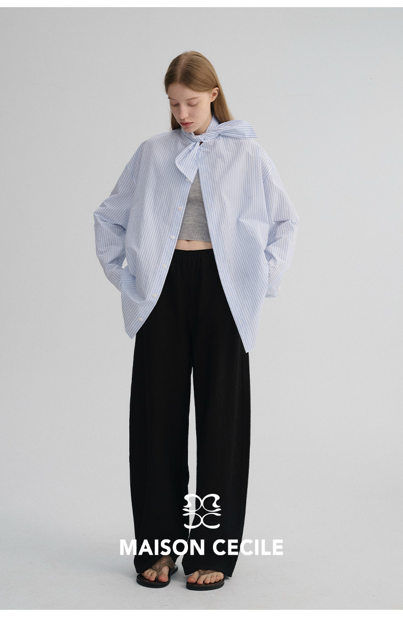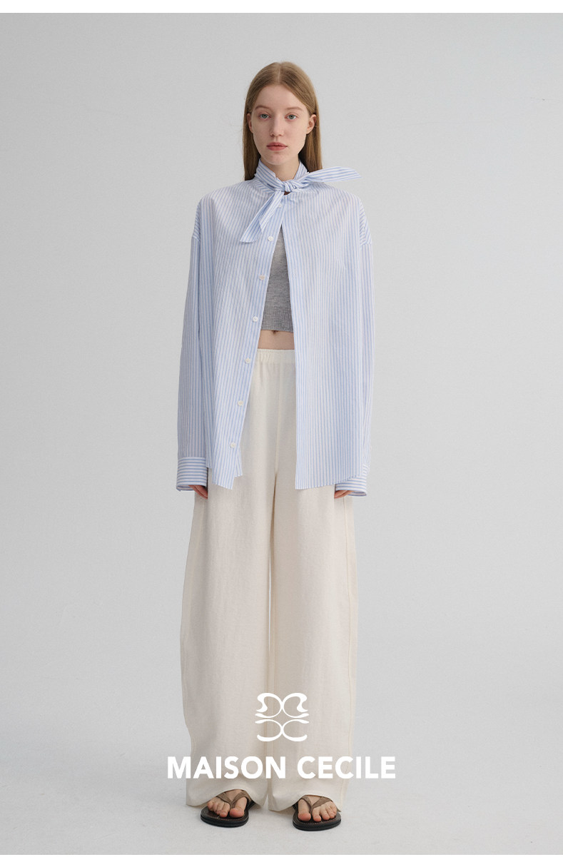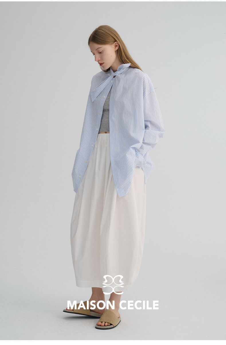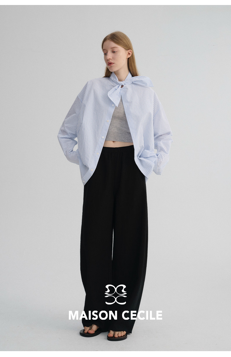 MAISON CECILE 经典条纹美国匹马棉设计感兔耳朵领结宽松长袖衬衫
