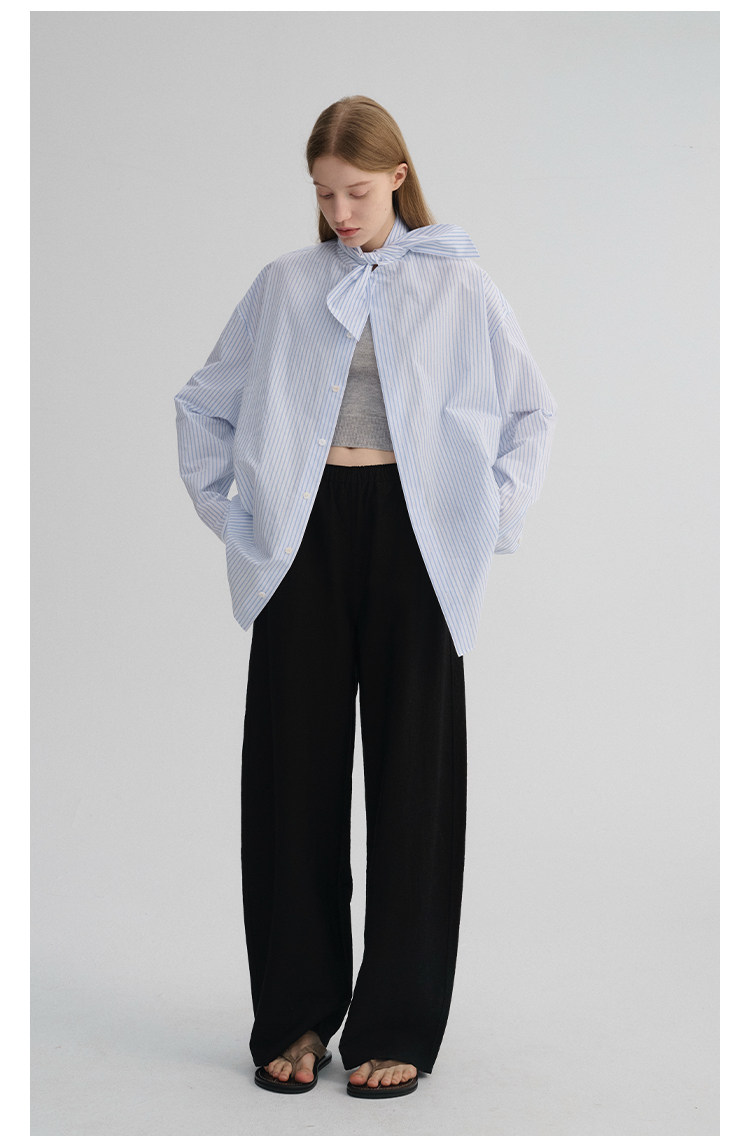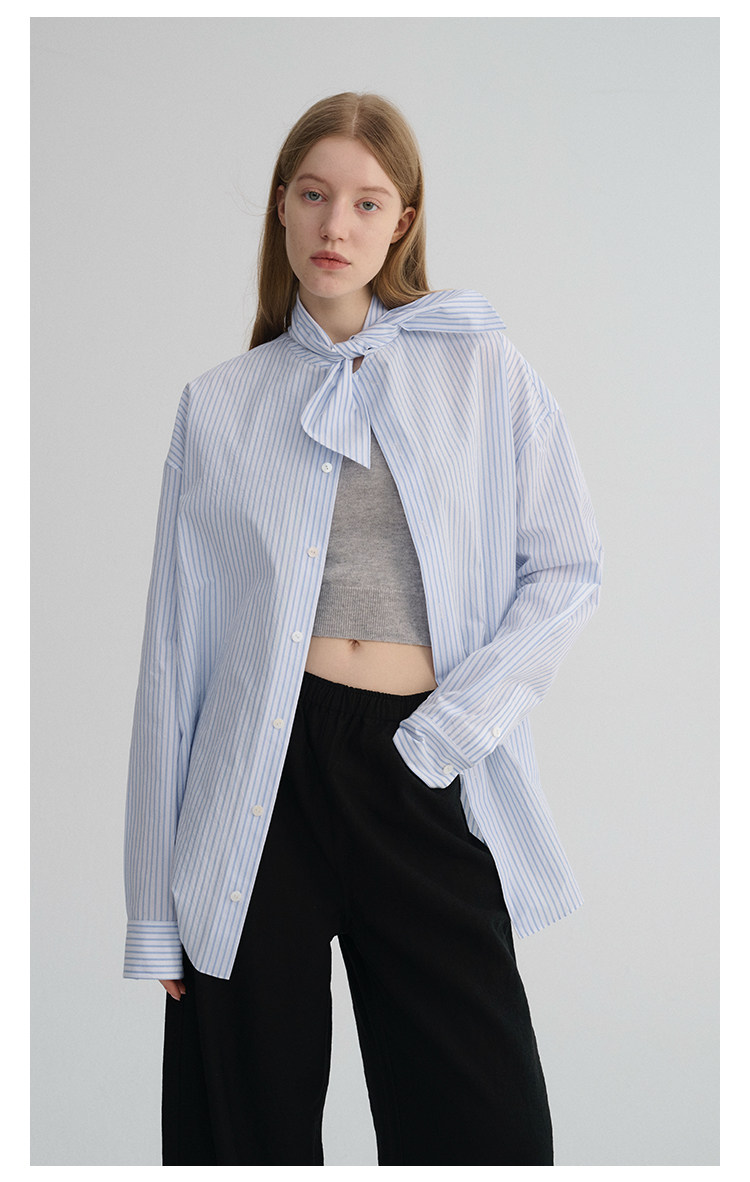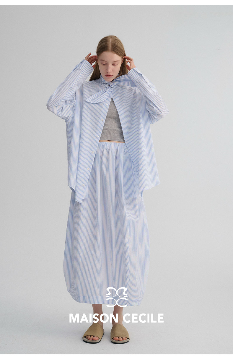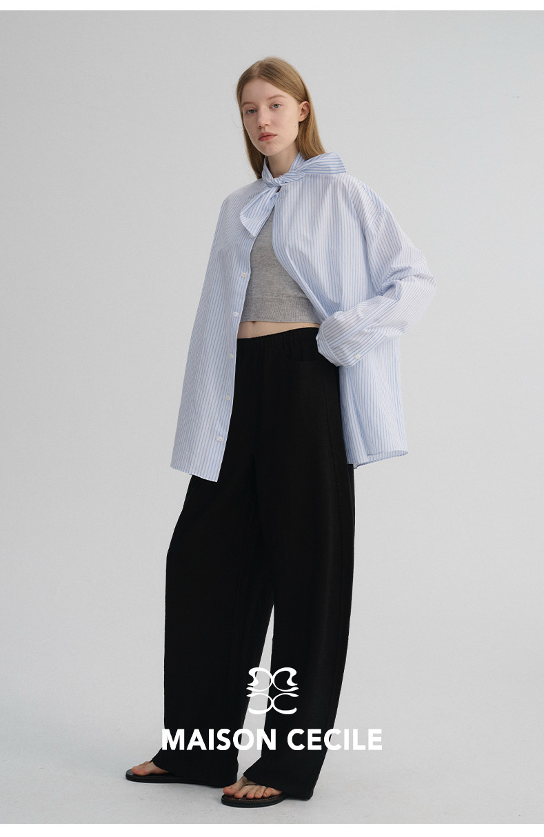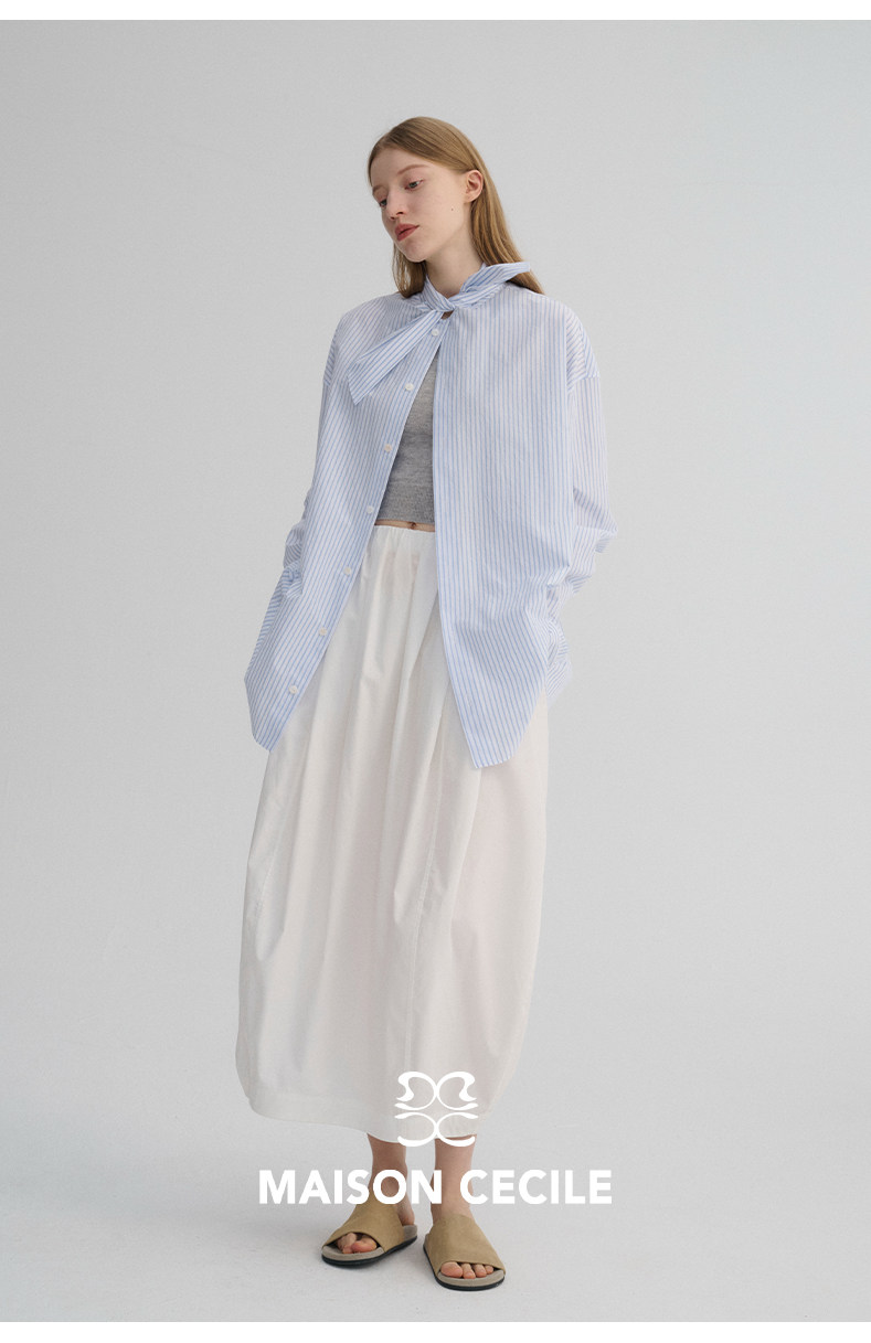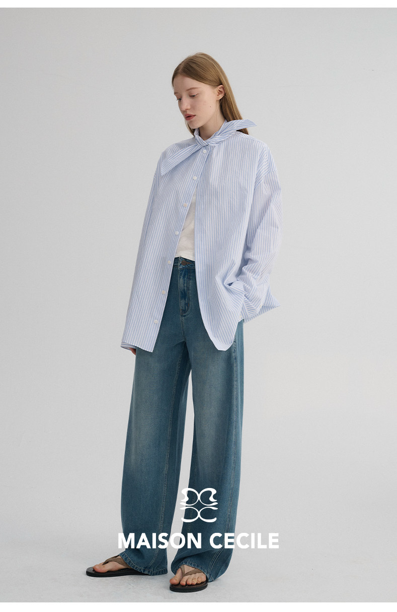 MAISON CECILE 经典条纹美国匹马棉设计感兔耳朵领结宽松长袖衬衫
