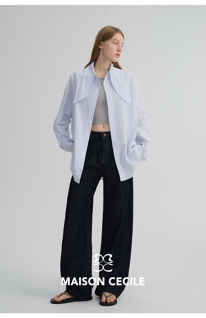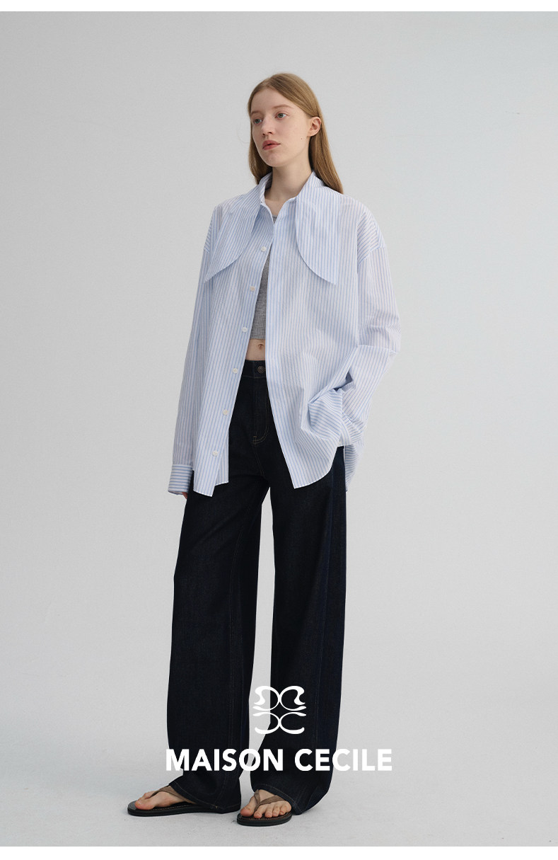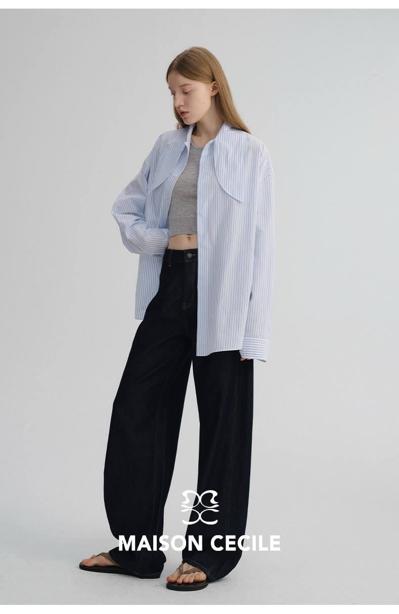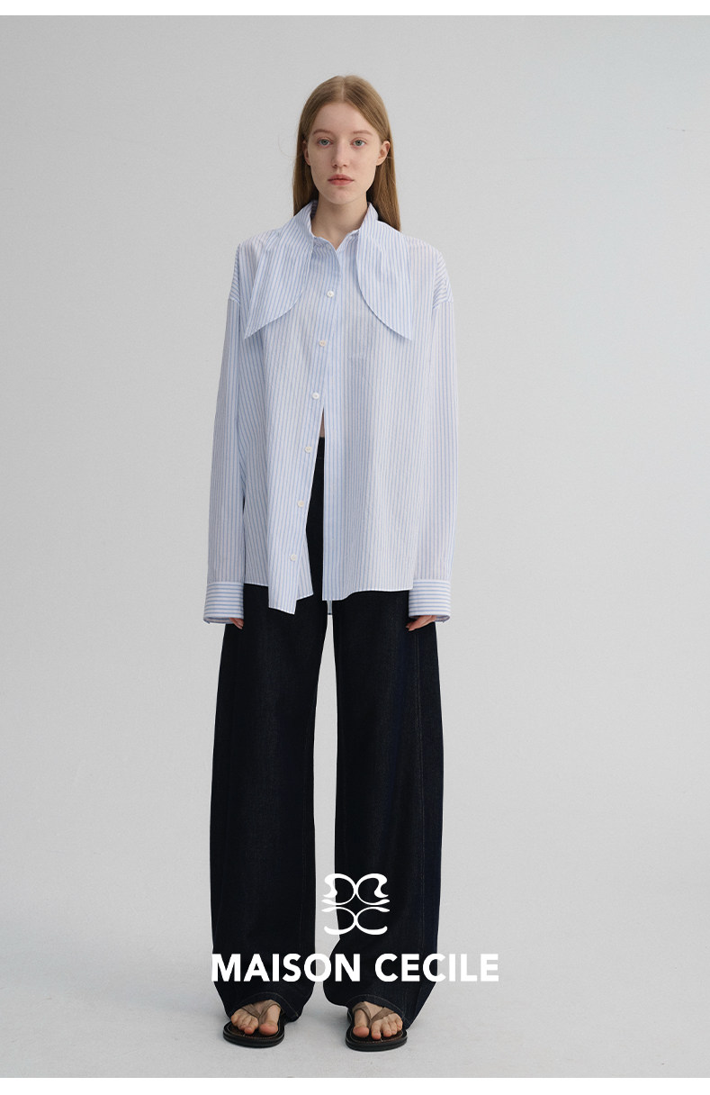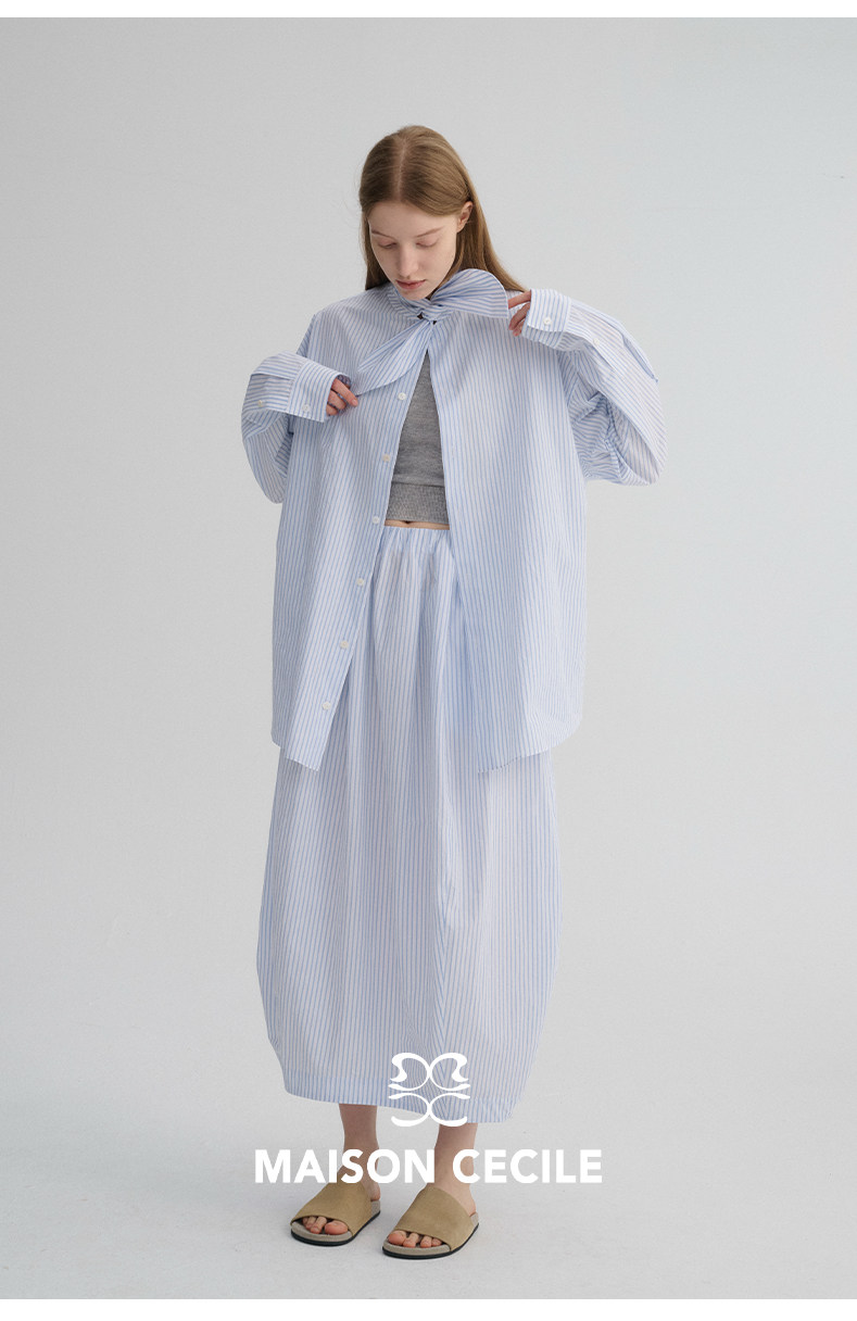 MAISON CECILE 经典条纹美国匹马棉设计感兔耳朵领结宽松长袖衬衫