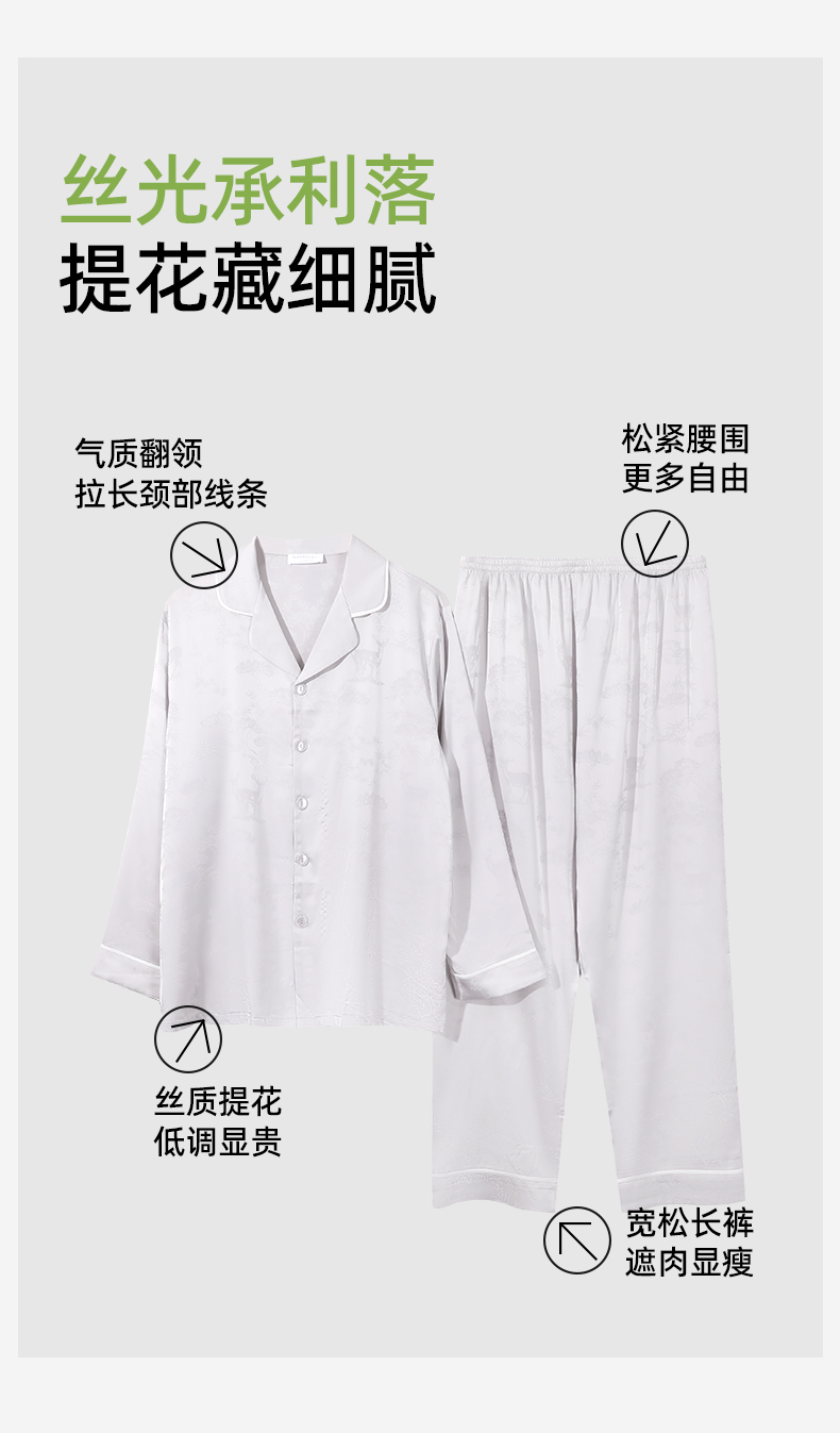 【商场同款】熳洁儿 早秋新款男士家居服开衫套装丝质缇花25703902