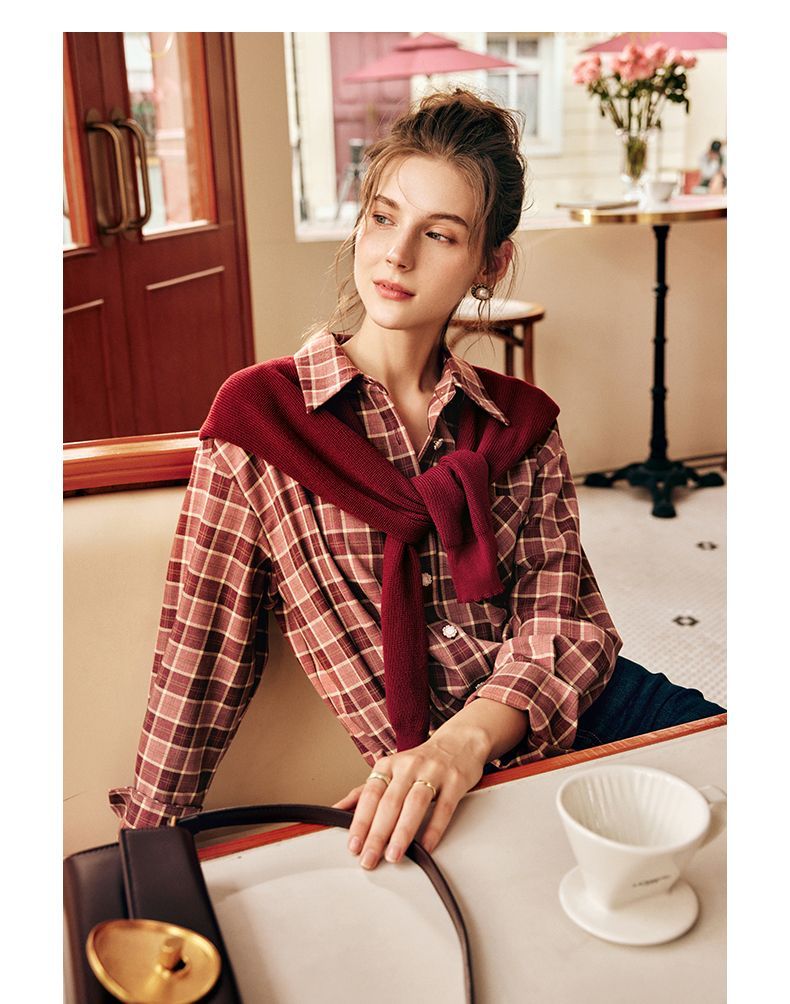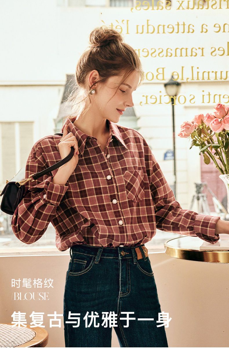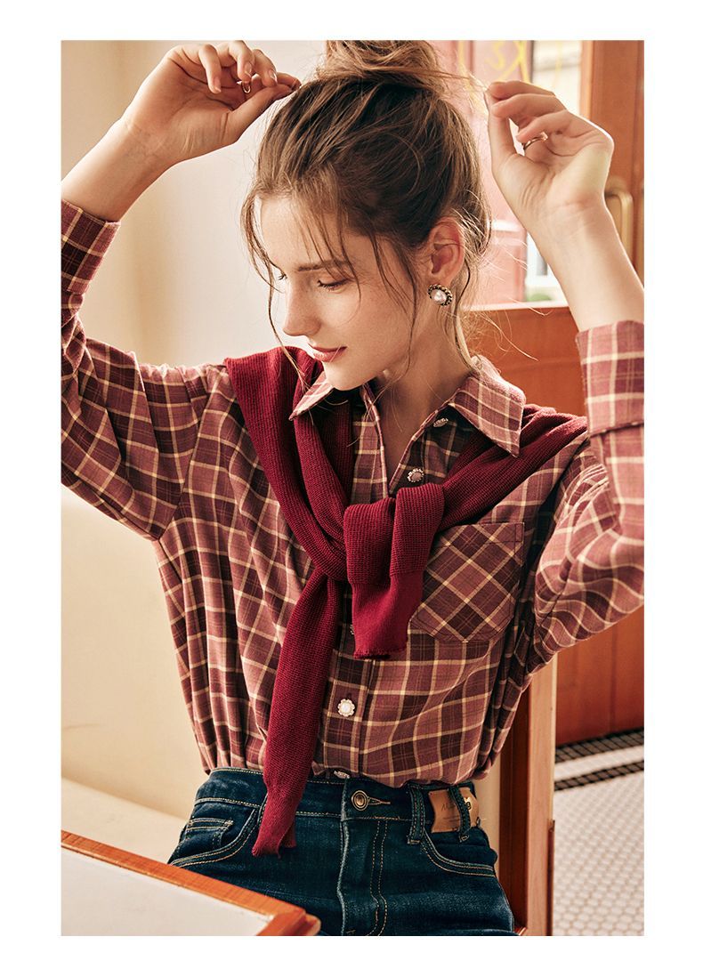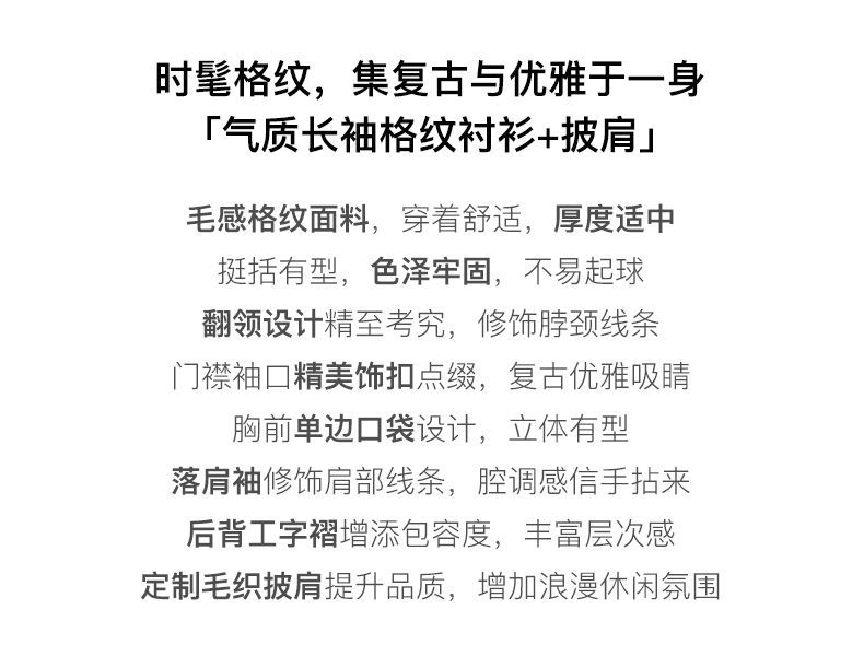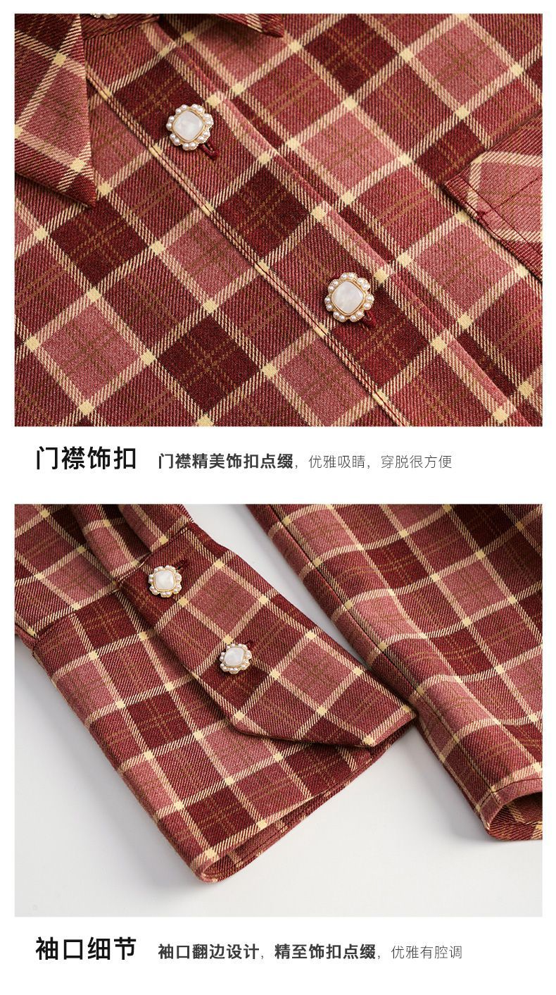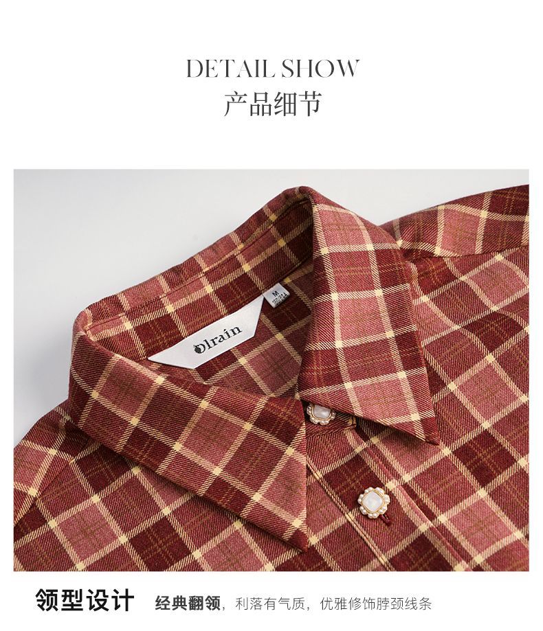 OLrain欧芮儿法式格纹衬衫女秋季2022新款宽松复古衬衣披肩两件套