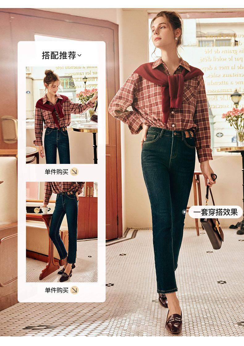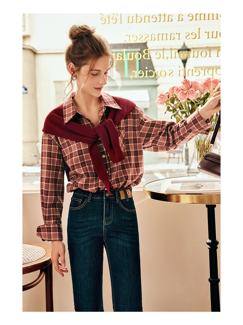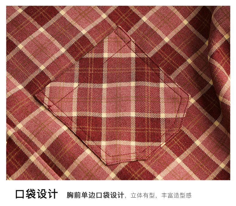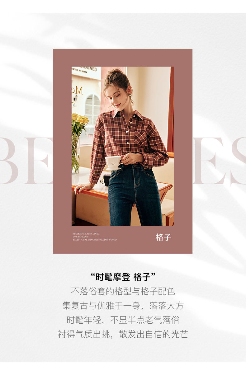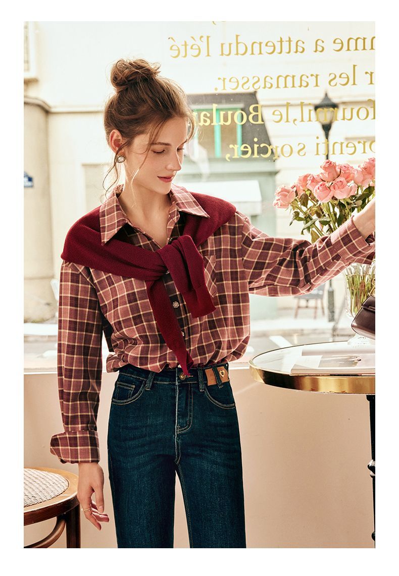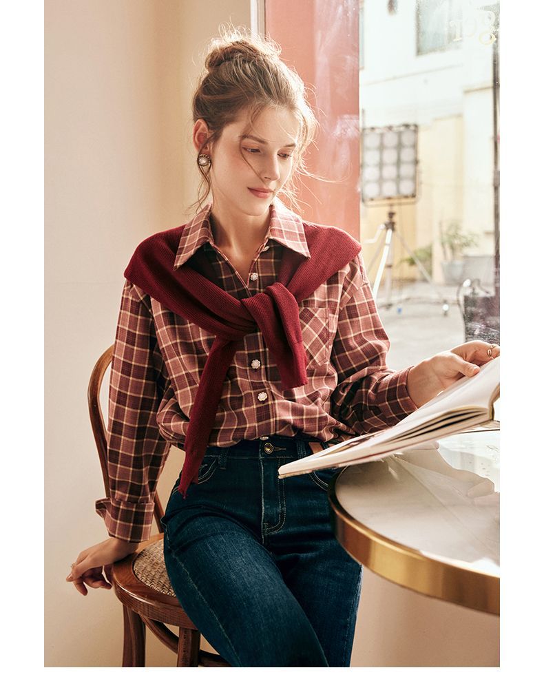 OLrain欧芮儿法式格纹衬衫女秋季2022新款宽松复古衬衣披肩两件套