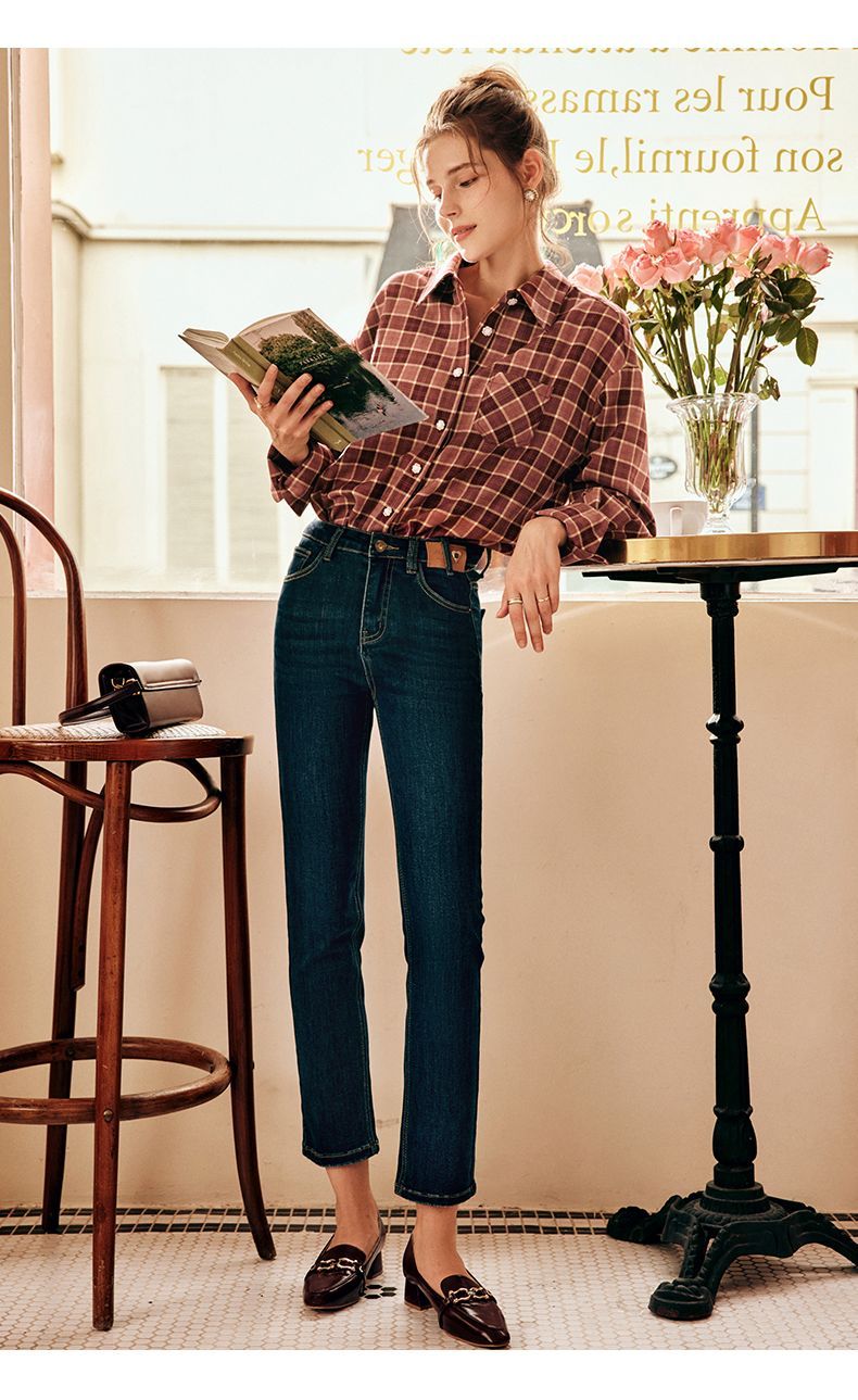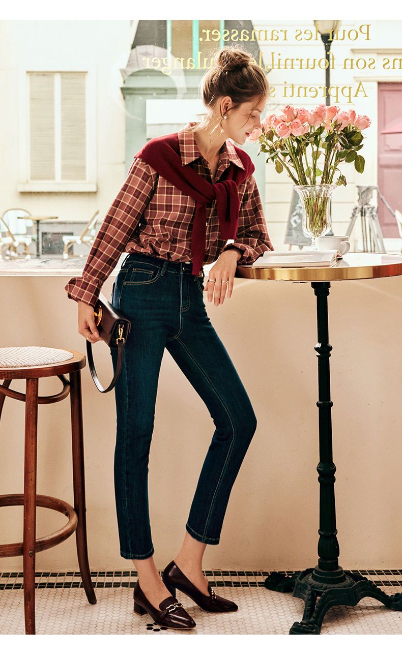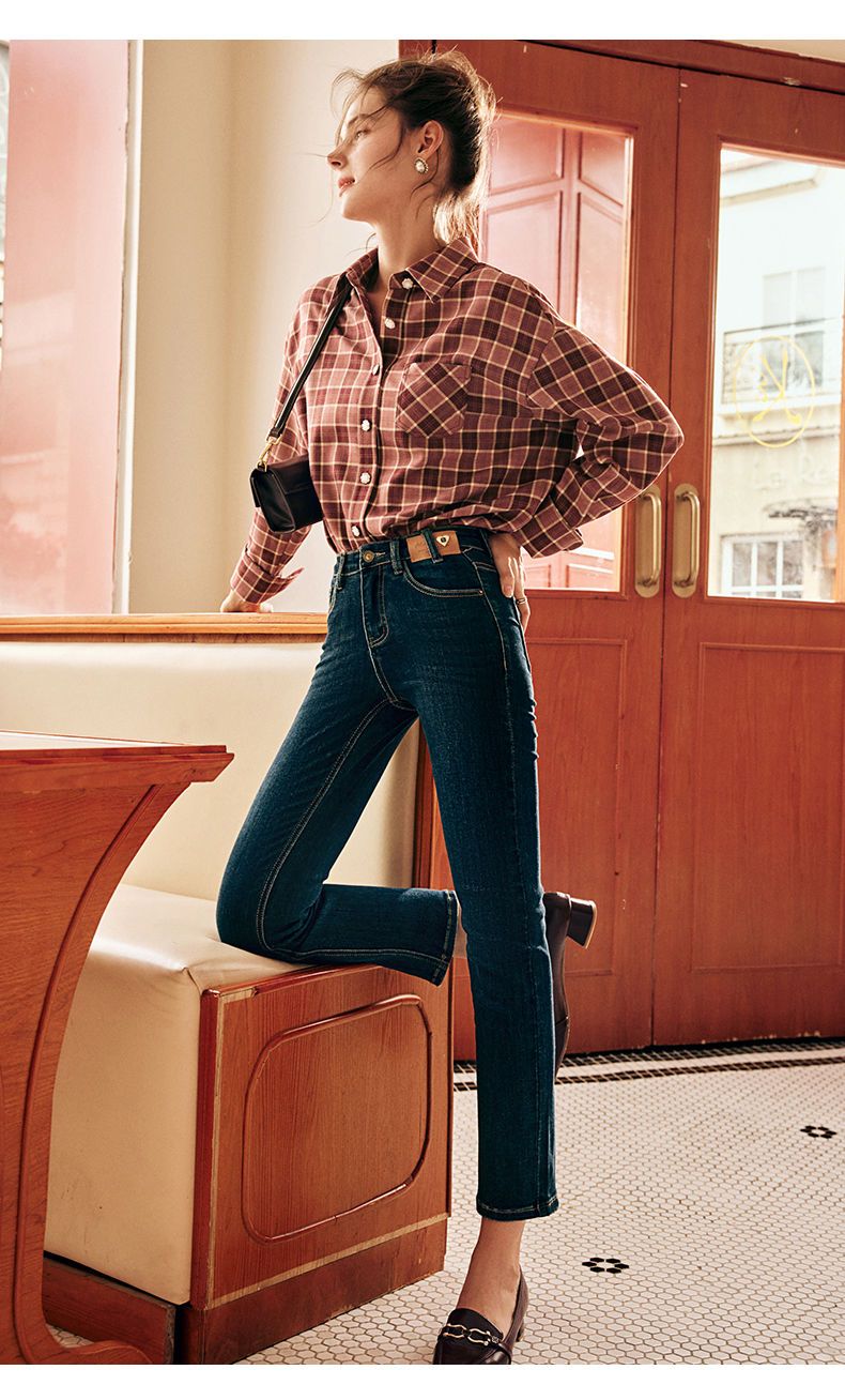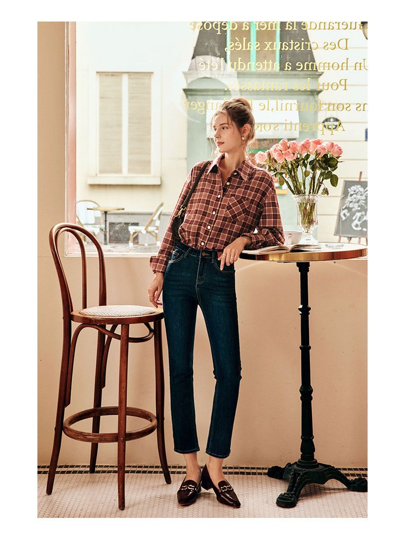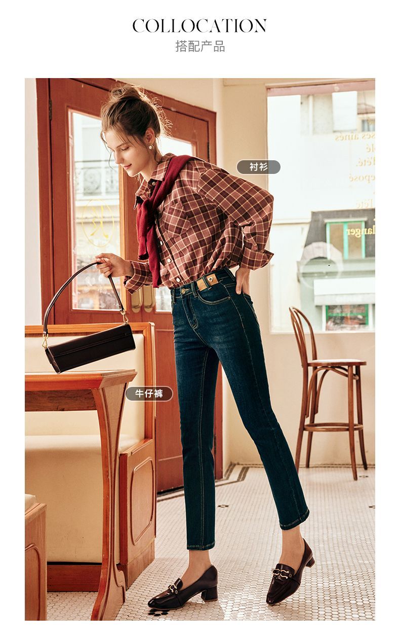 OLrain欧芮儿法式格纹衬衫女秋季2022新款宽松复古衬衣披肩两件套