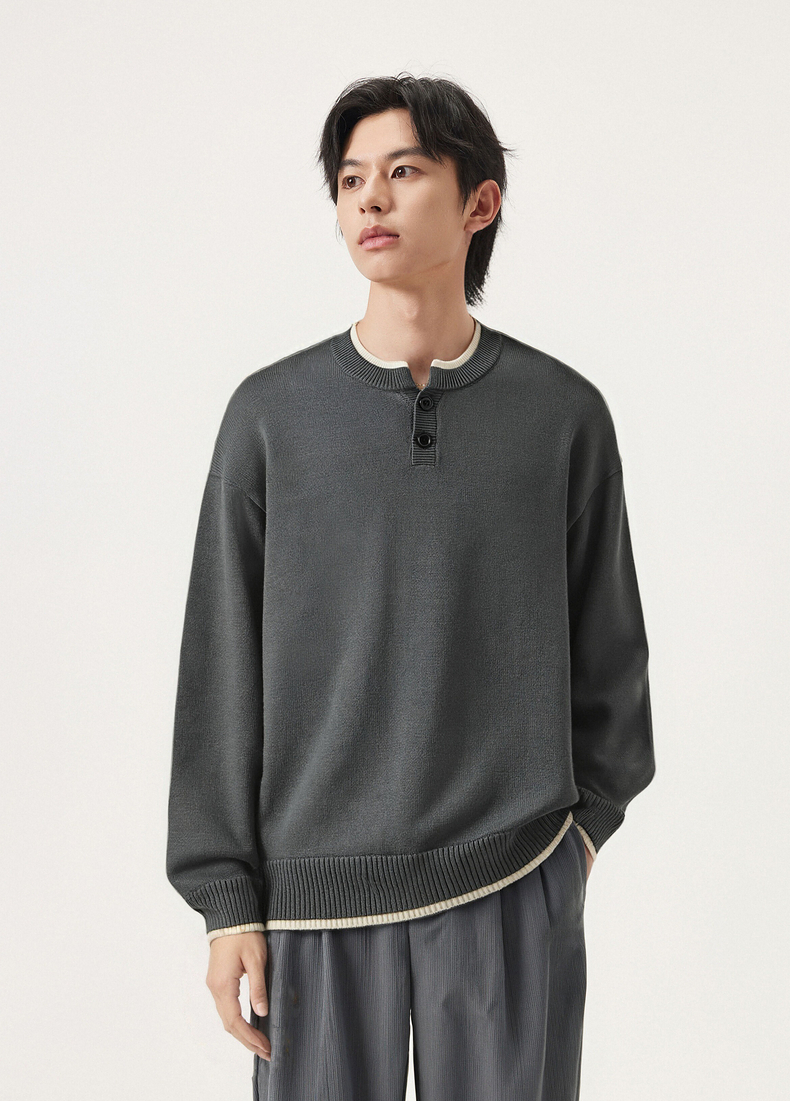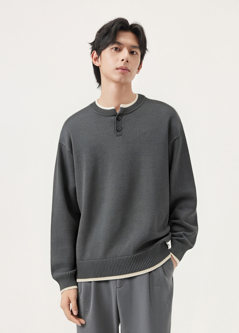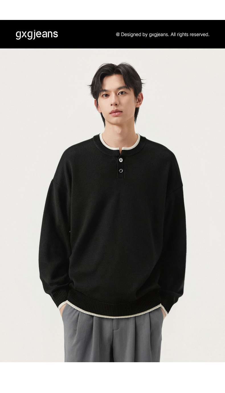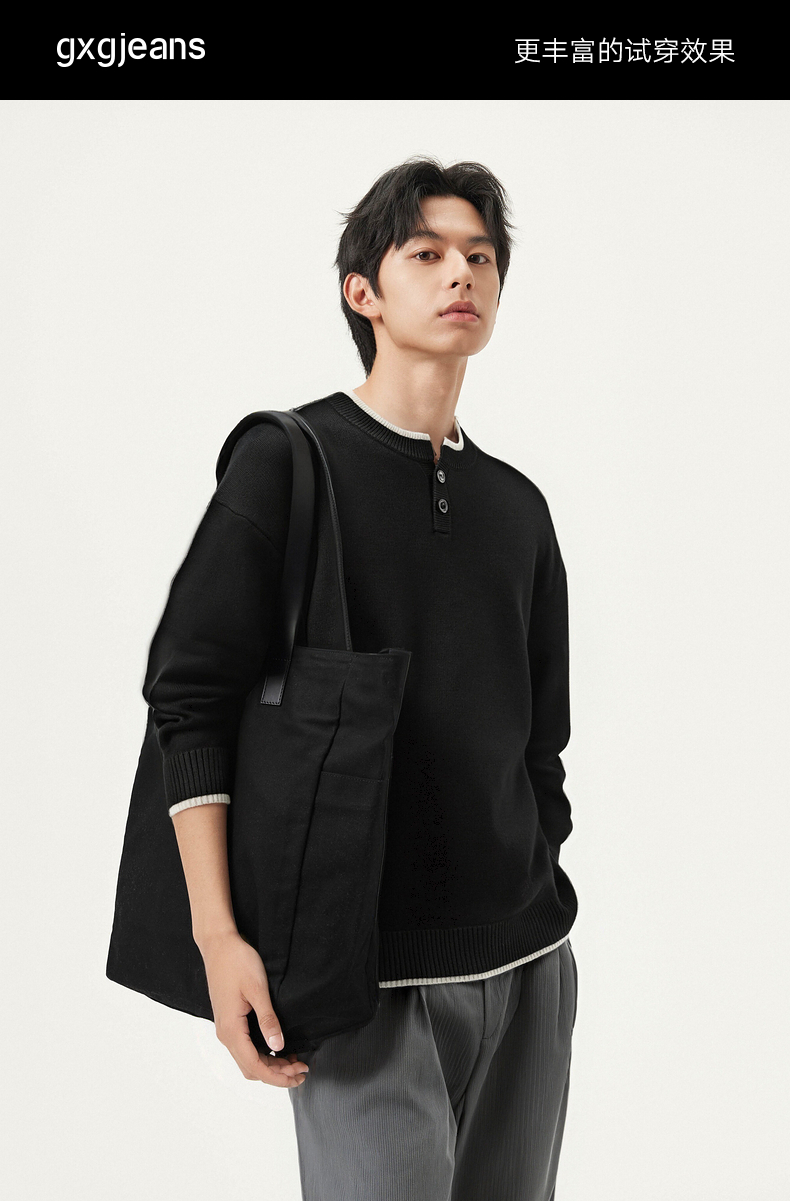 gxg.jeans男装 多色假两件宽松基础亨利领毛衣线衫男 25秋热卖