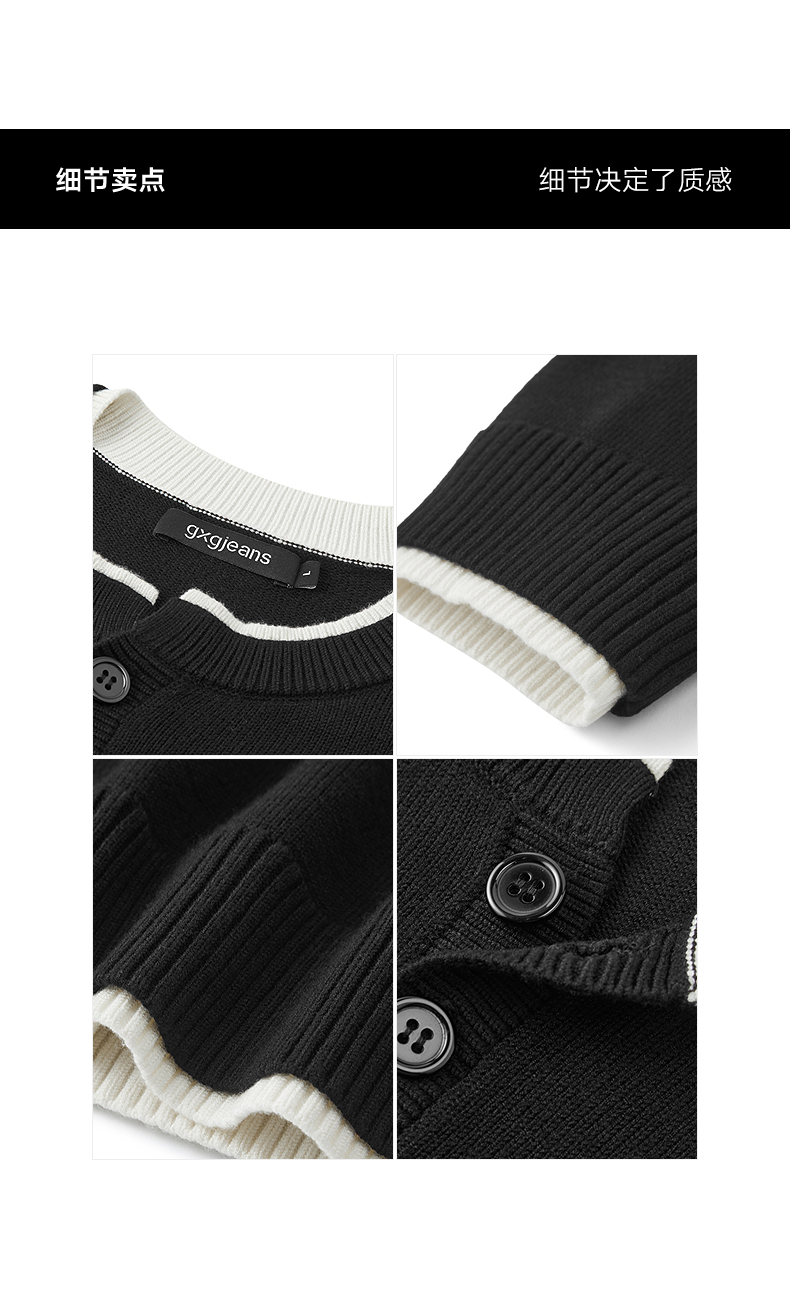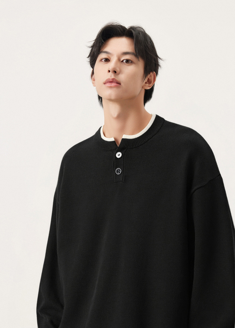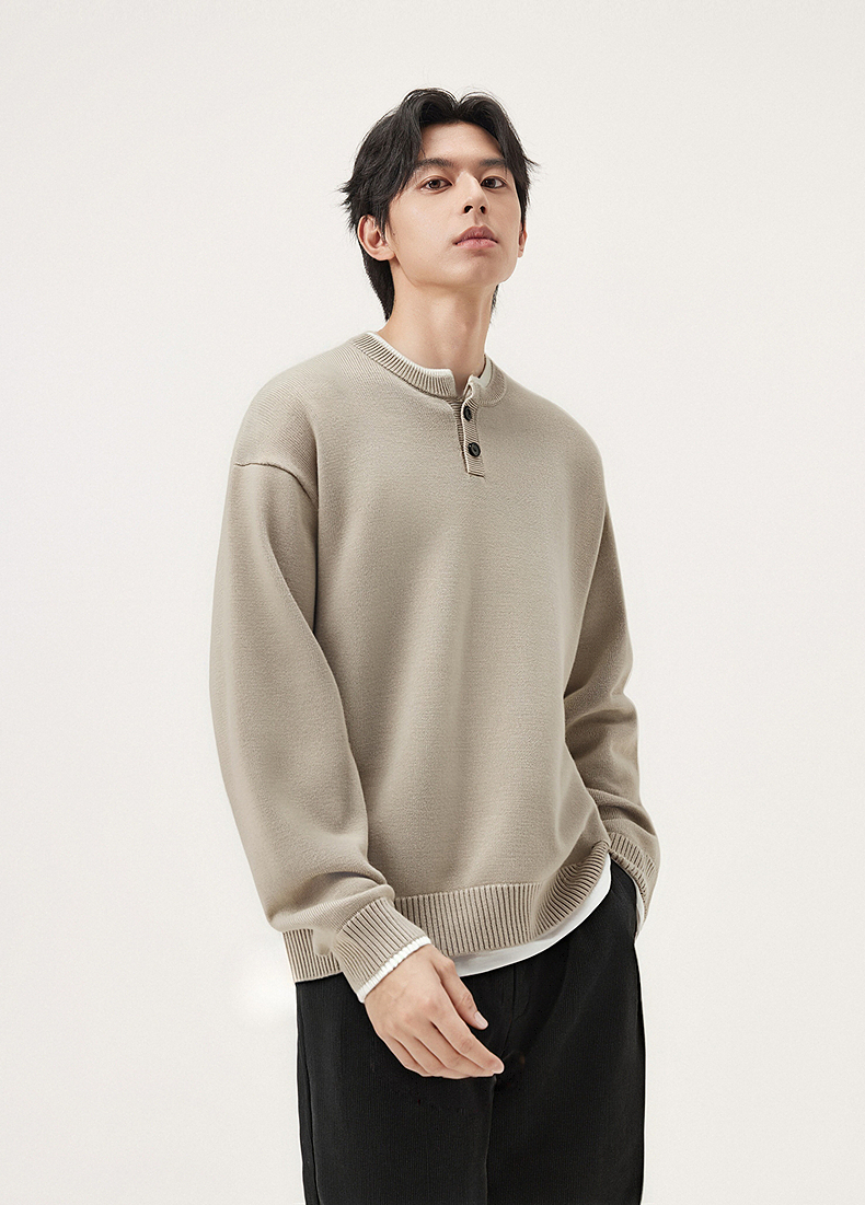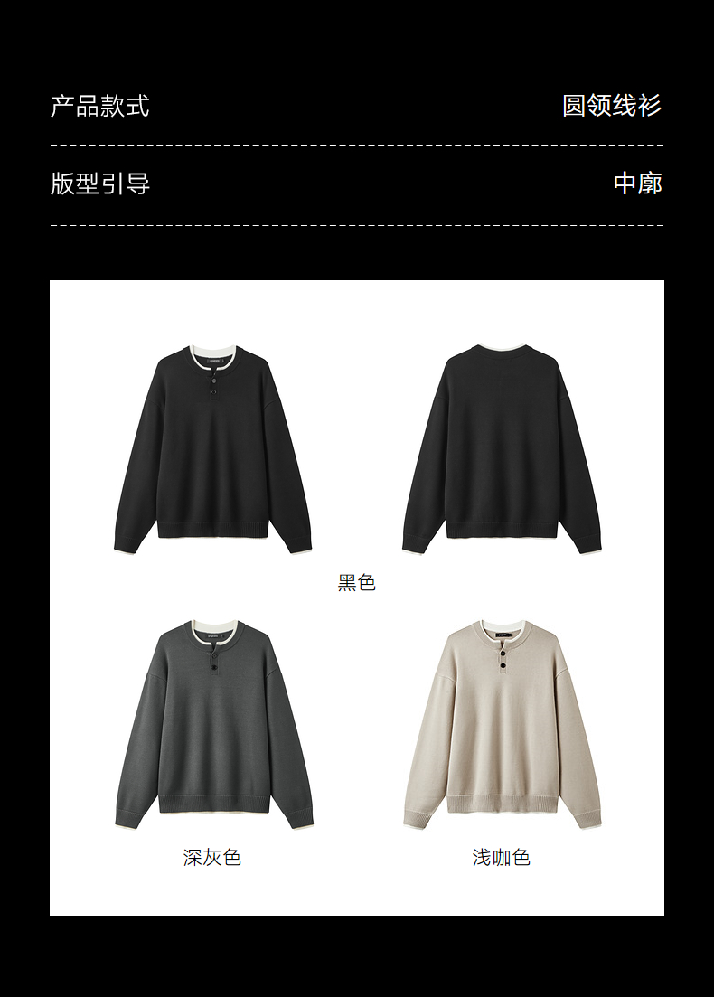 gxg.jeans男装 多色假两件宽松基础亨利领毛衣线衫男 25秋热卖