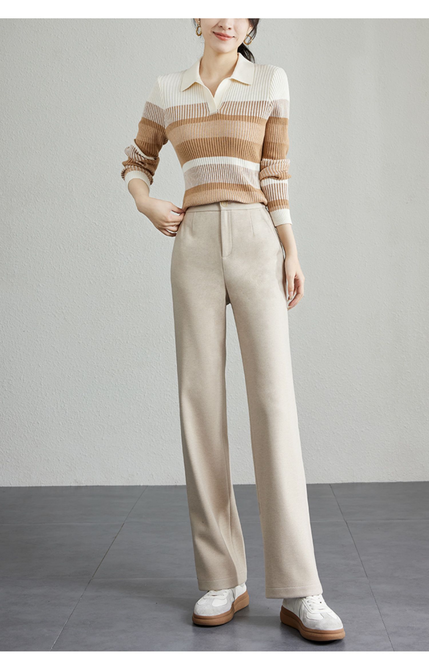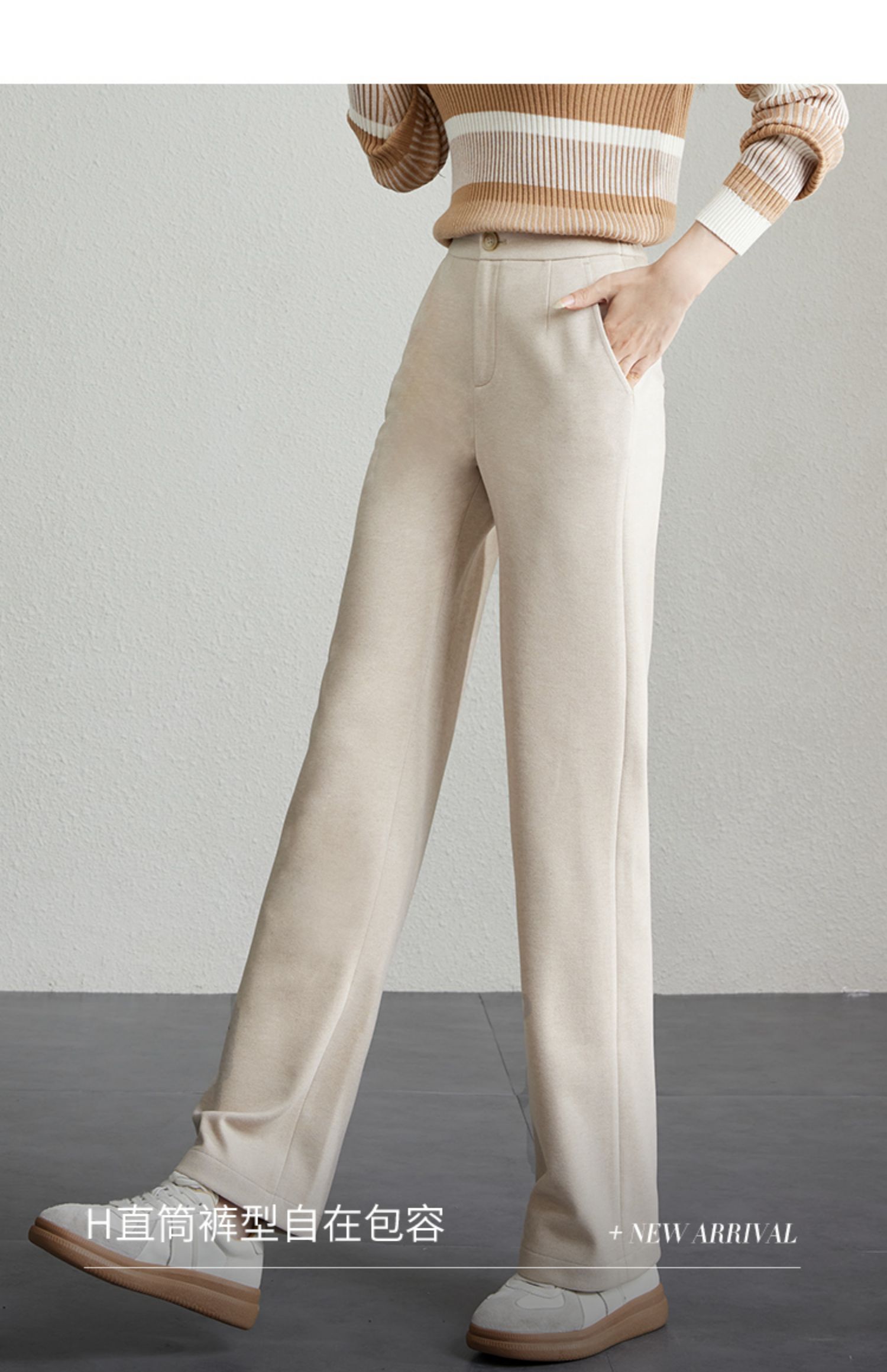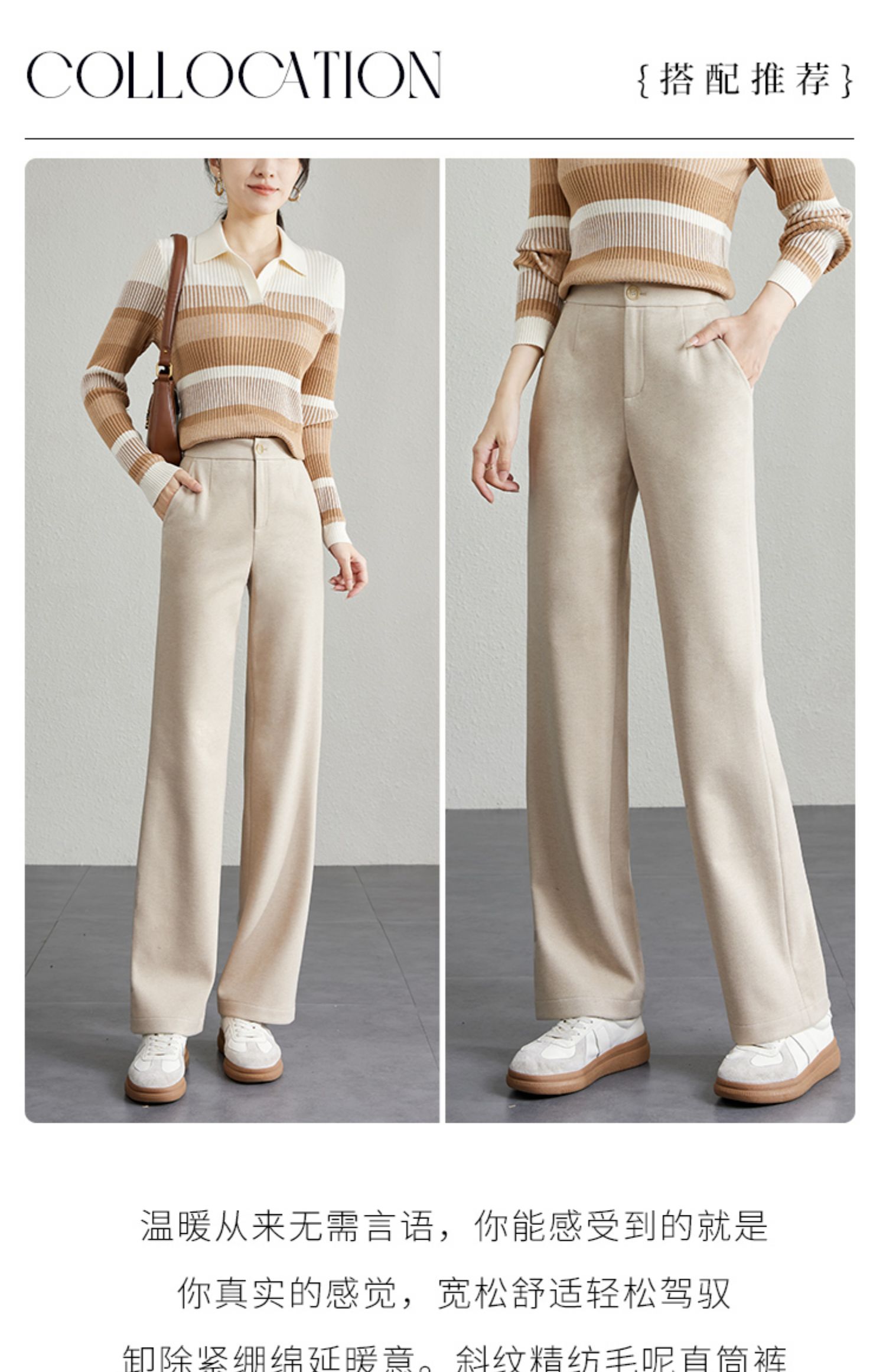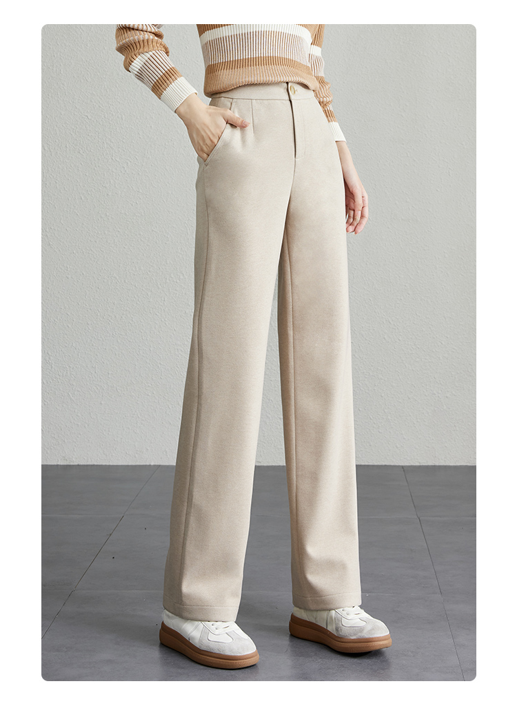 【年终特卖】熙世界毛呢休闲直筒裤女秋冬2025新款高腰显瘦垂感宽松阔腿拖地裤