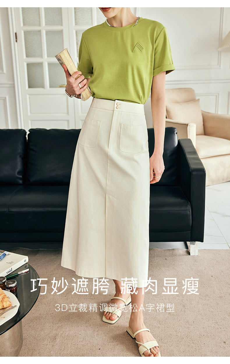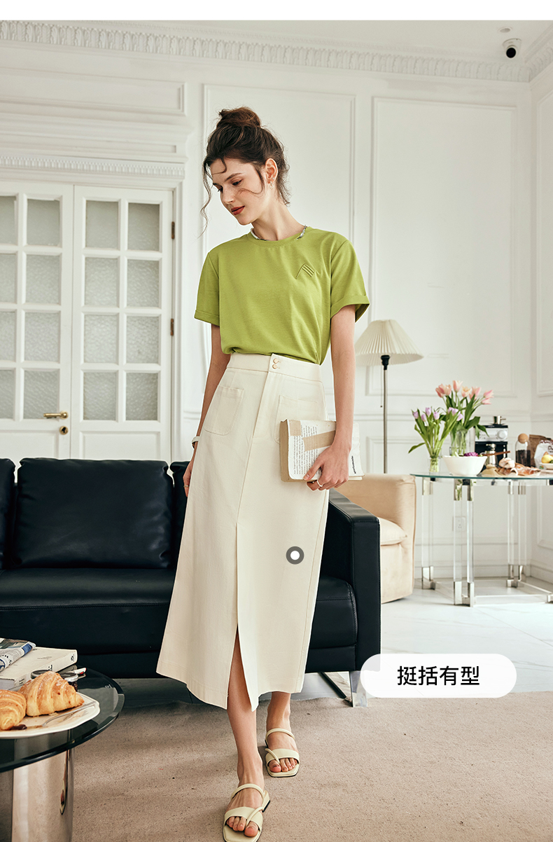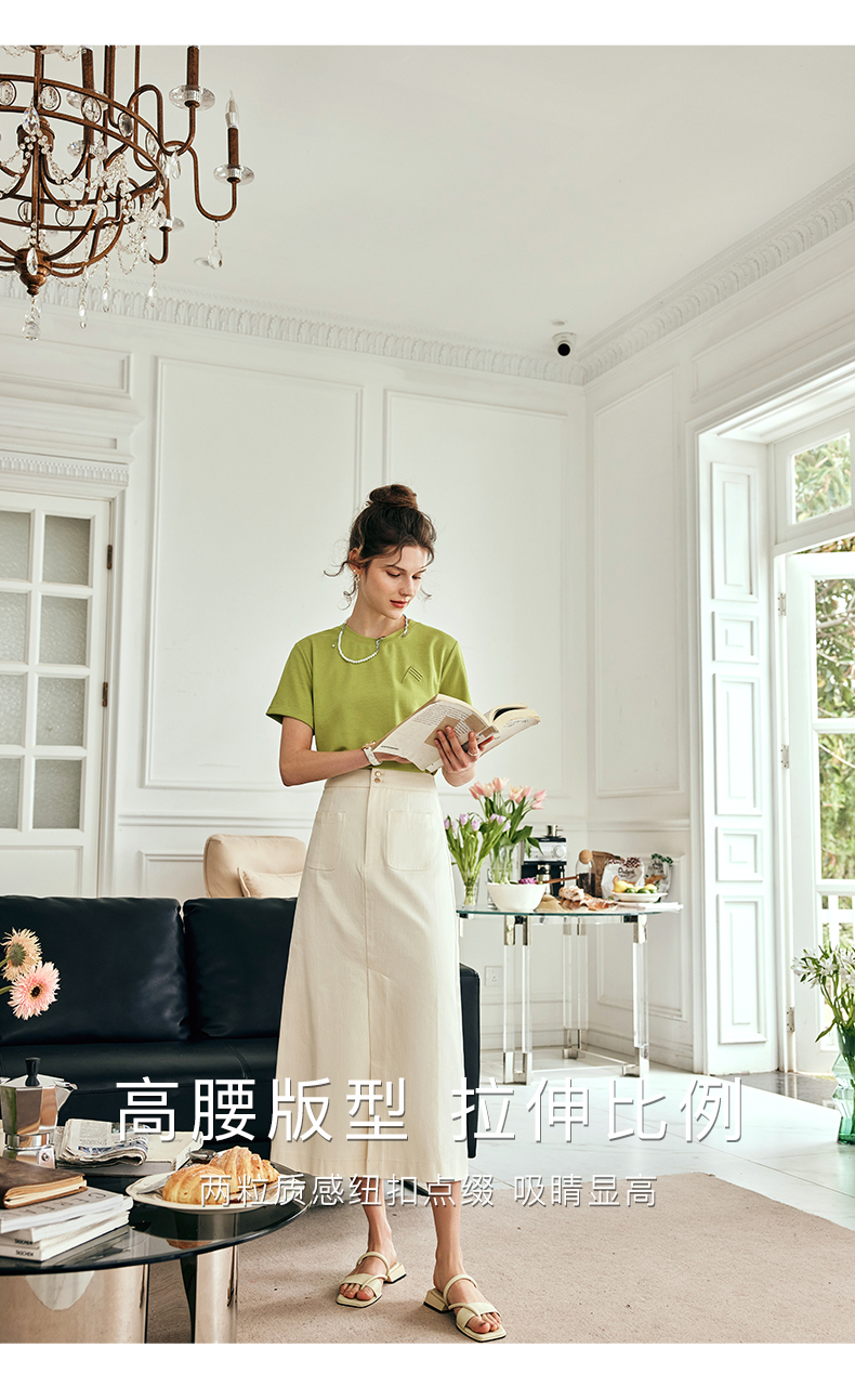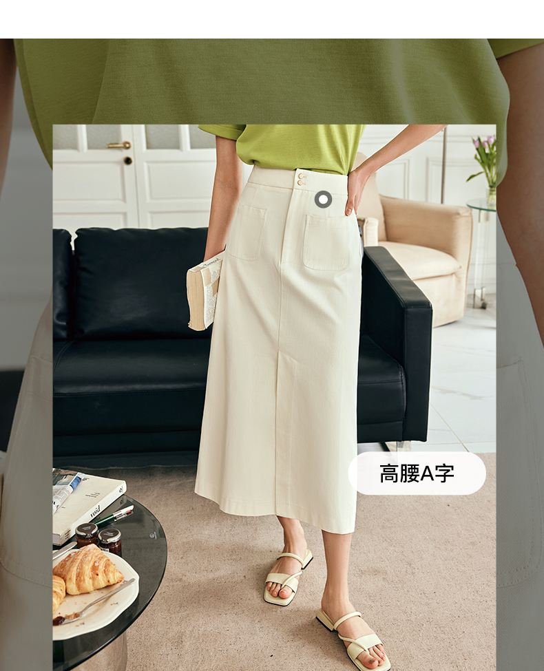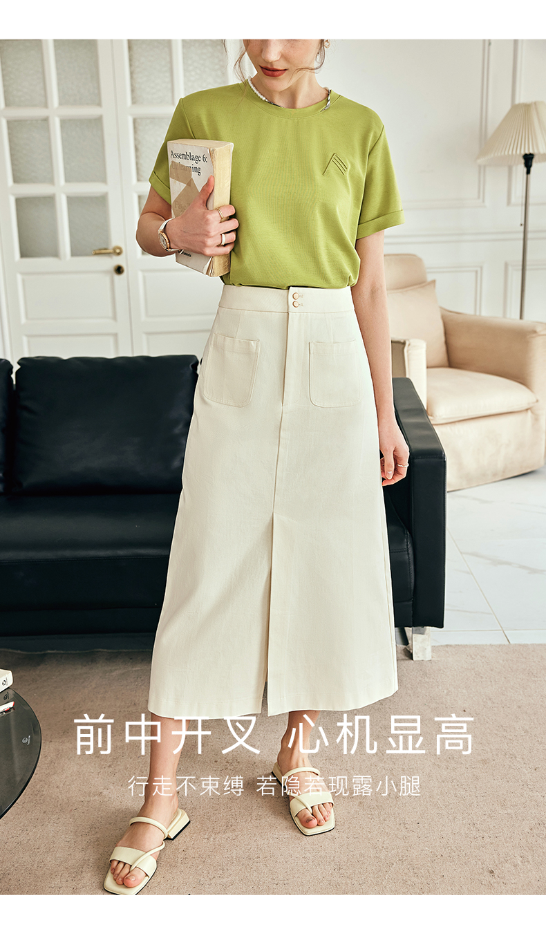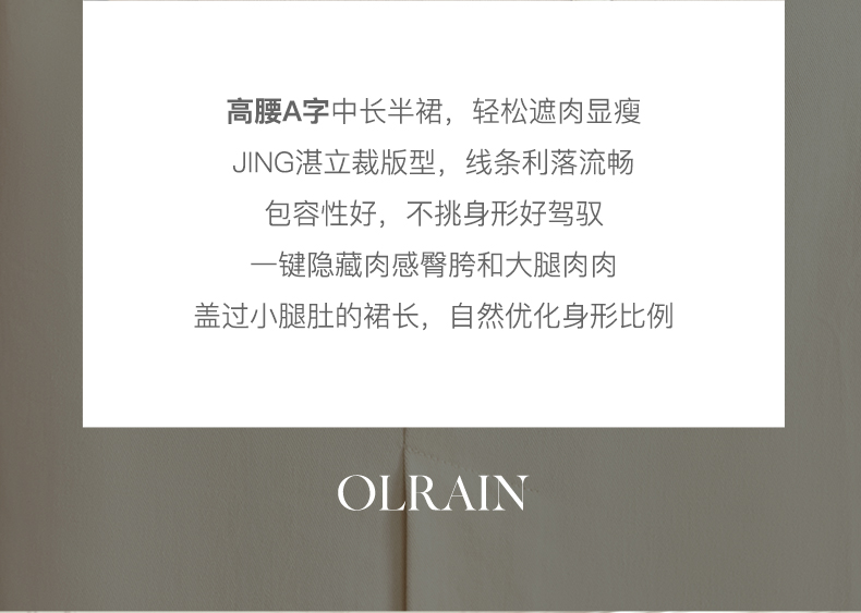OLrain欧芮儿法式杏色半身裙女夏季2023新款高腰开叉中长款a字裙