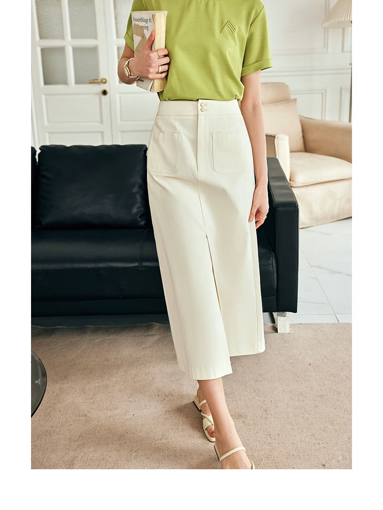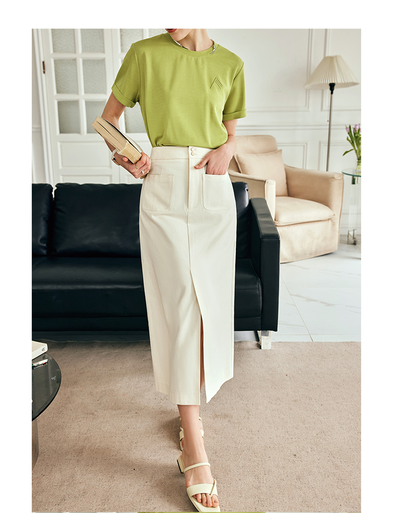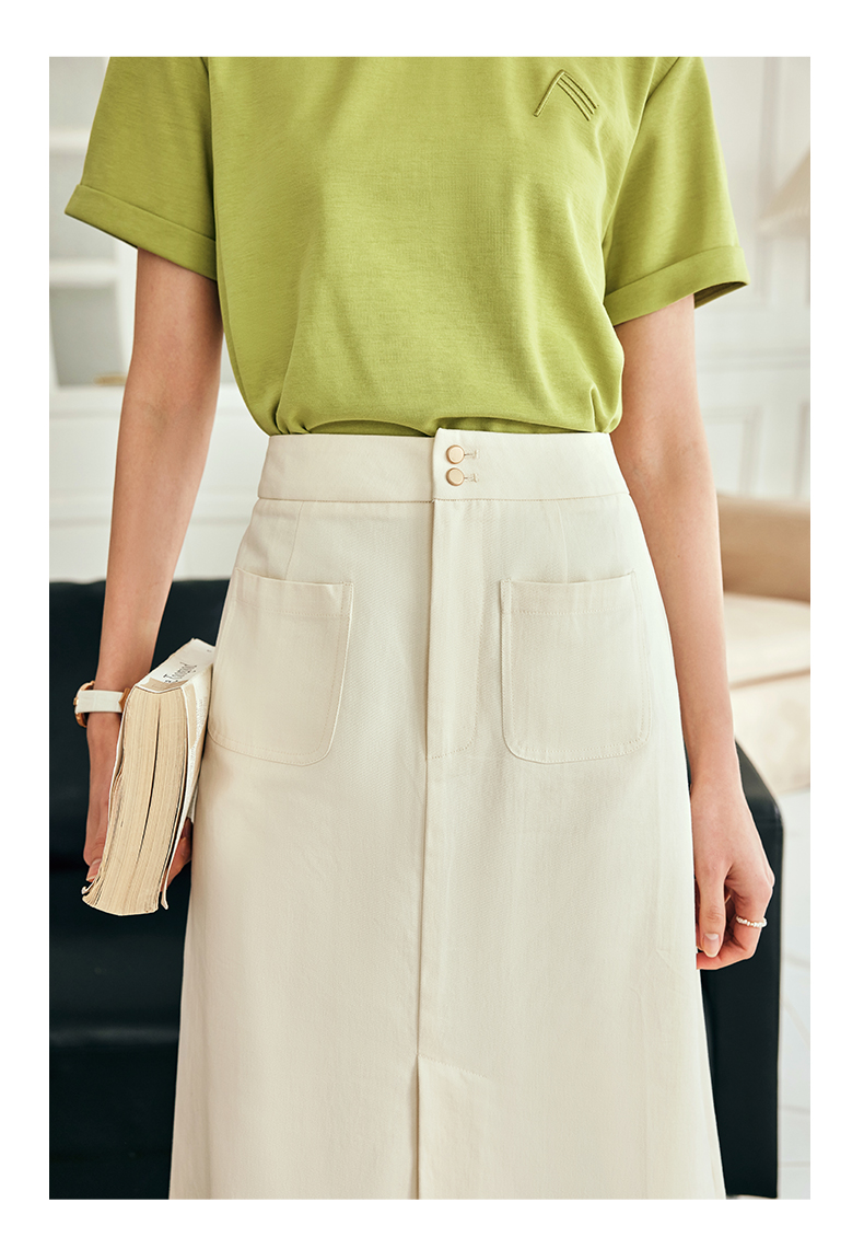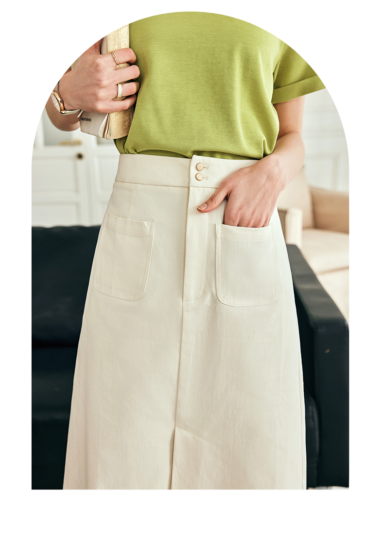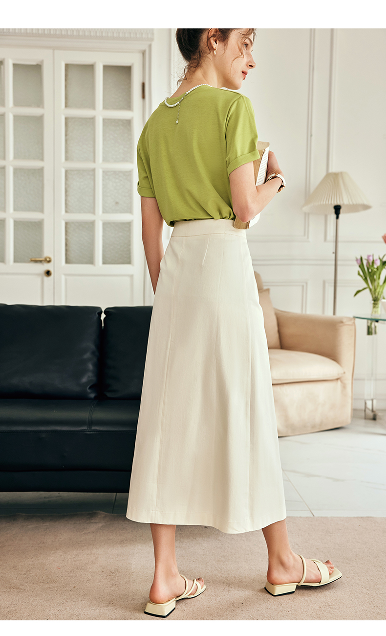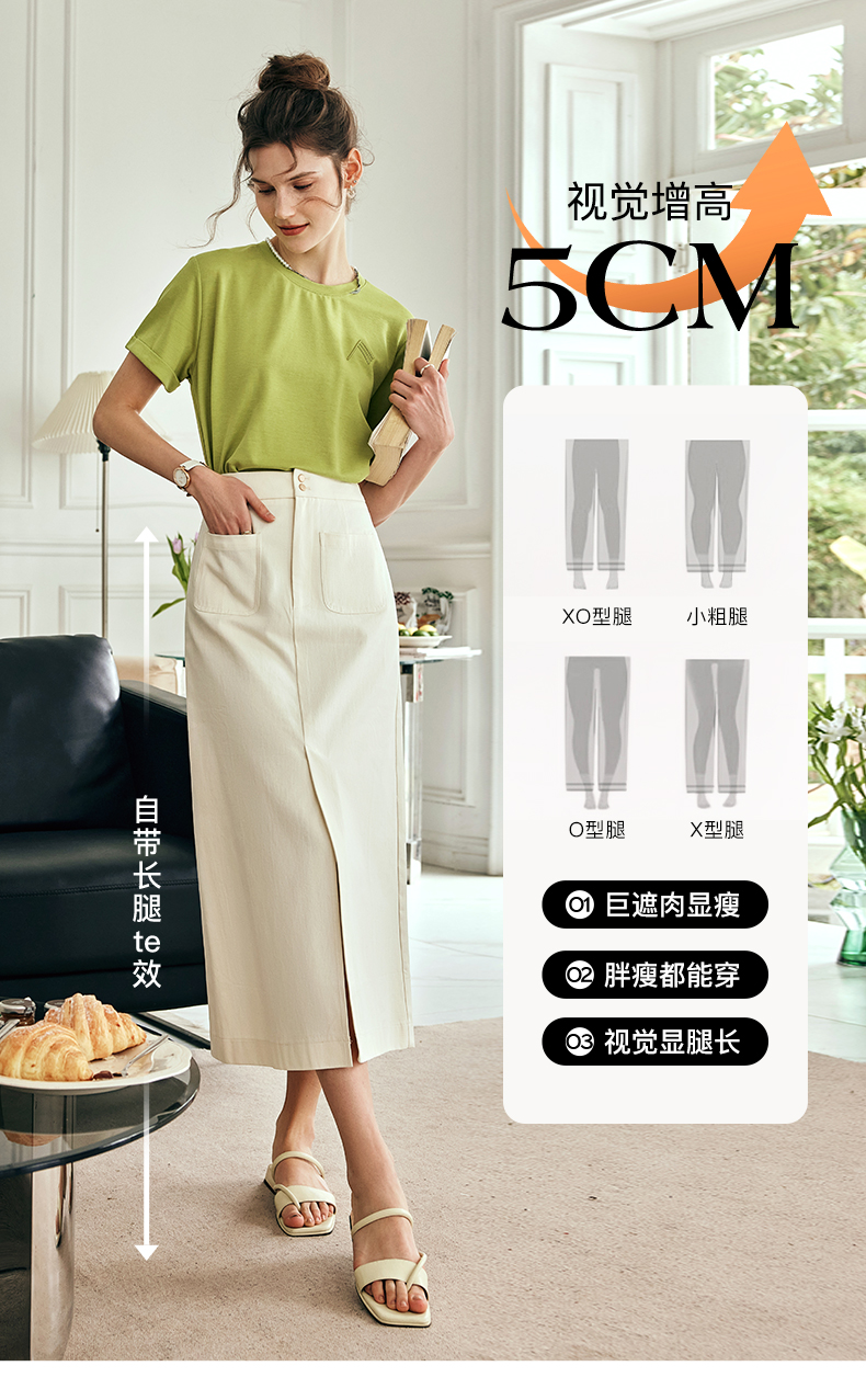 OLrain欧芮儿法式杏色半身裙女夏季2023新款高腰开叉中长款a字裙