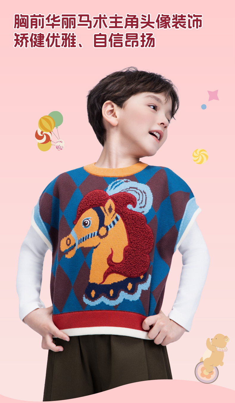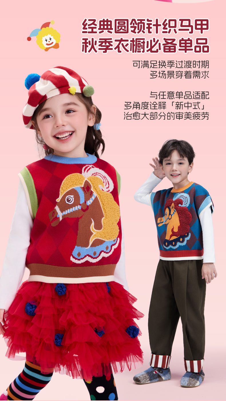 年衣童装针织马甲25秋冬新款男女童上衣新中式特马头针织马甲