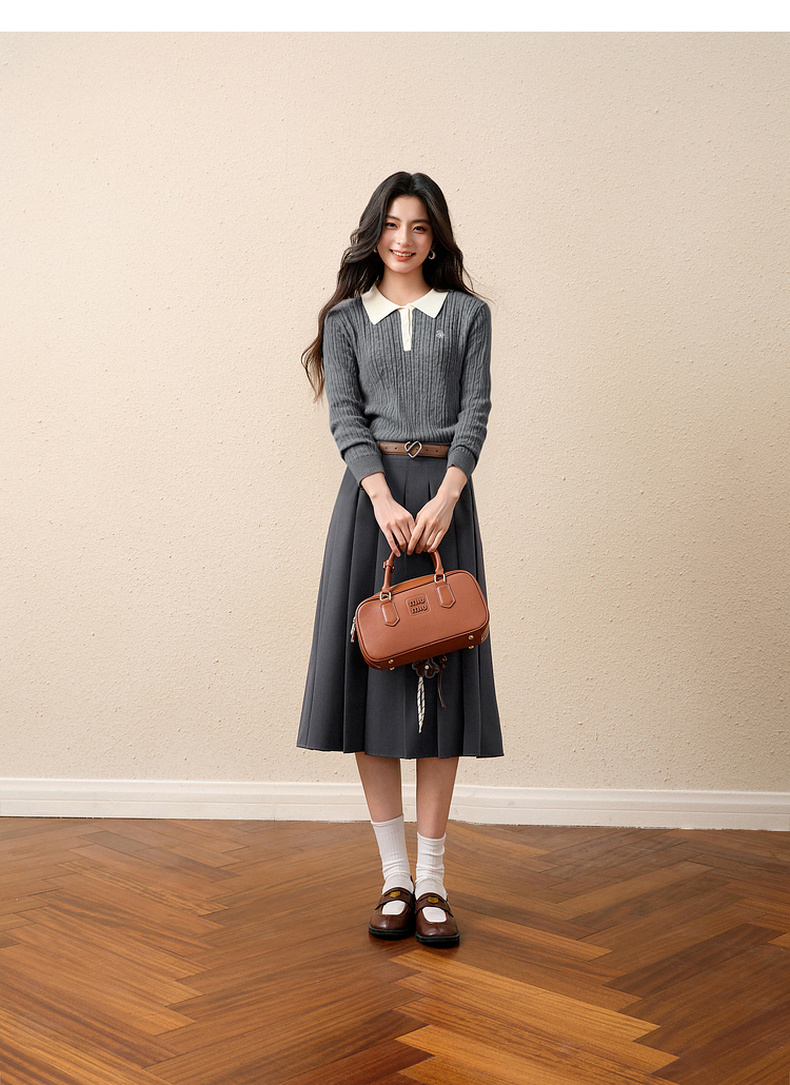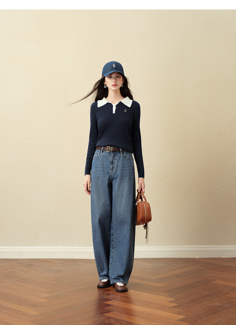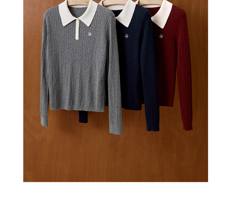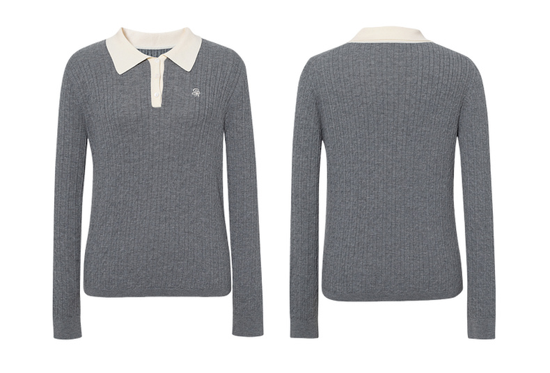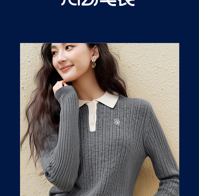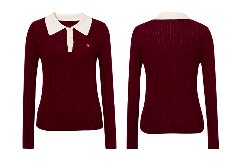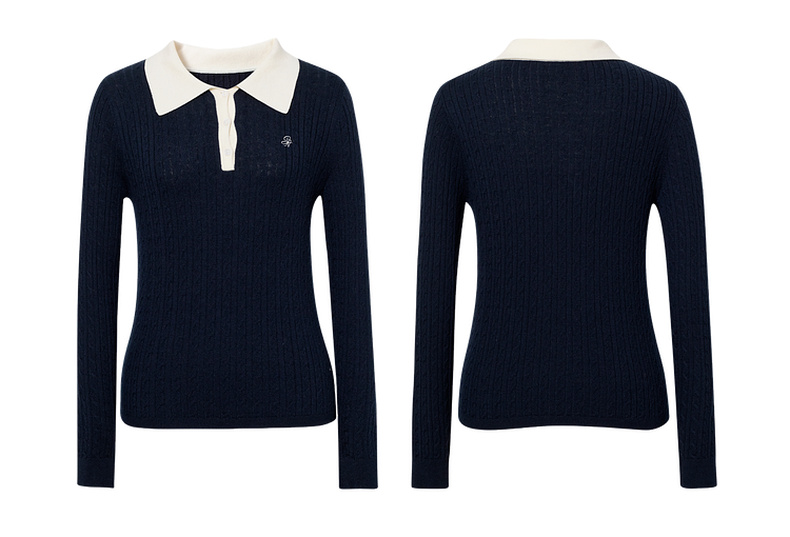 【严选】诗凡黎经典Polo领绞花针织衫2025秋新款修身显瘦休闲百搭长袖上衣7G7332181