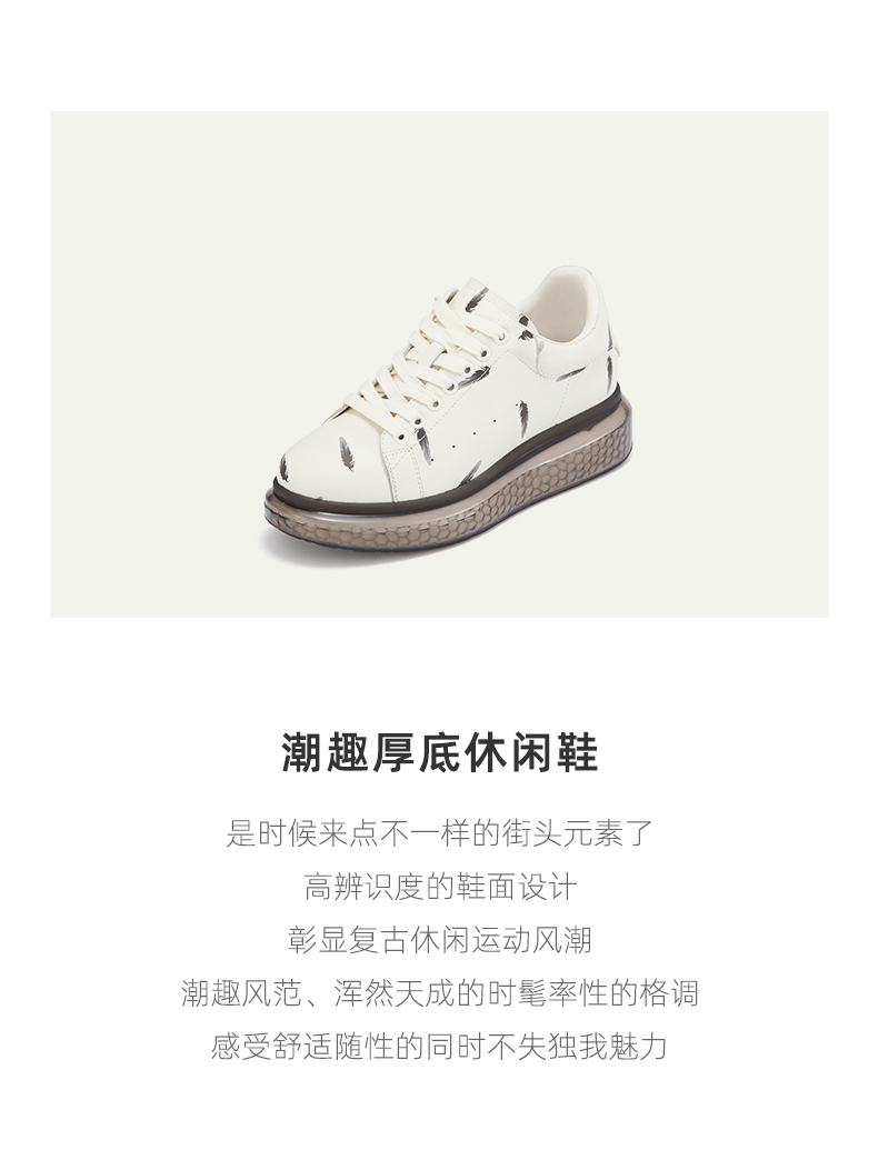 westory2021秋季潮趣厚底时尚休闲新款女鞋羽毛设计S21CM73741