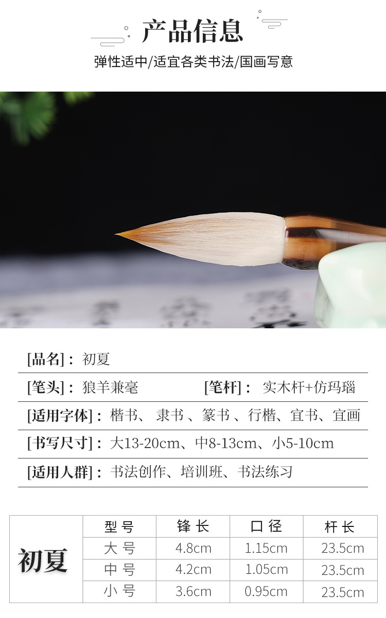 初夏-兼毫套装-3支 书法创作、书法培训、书法练习