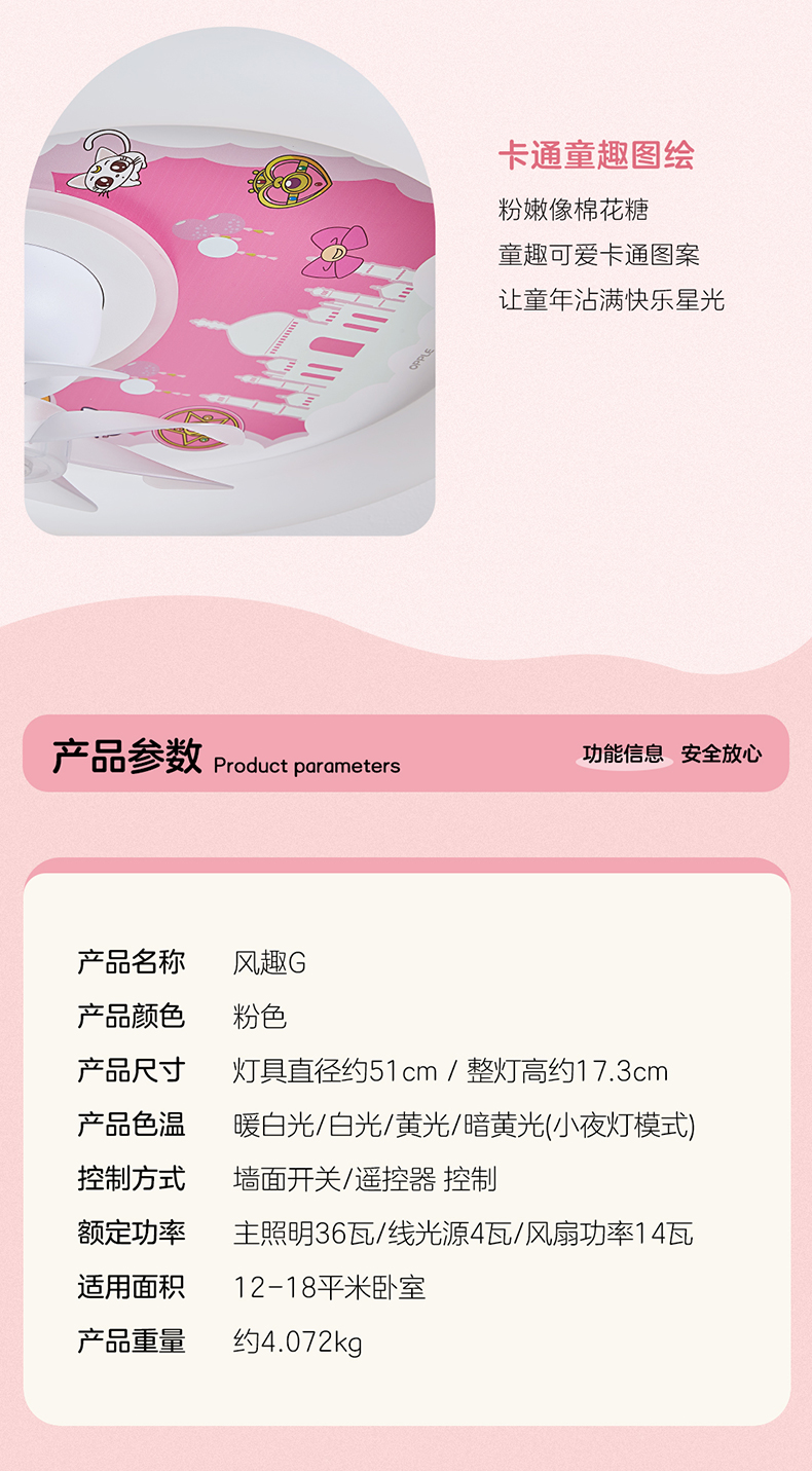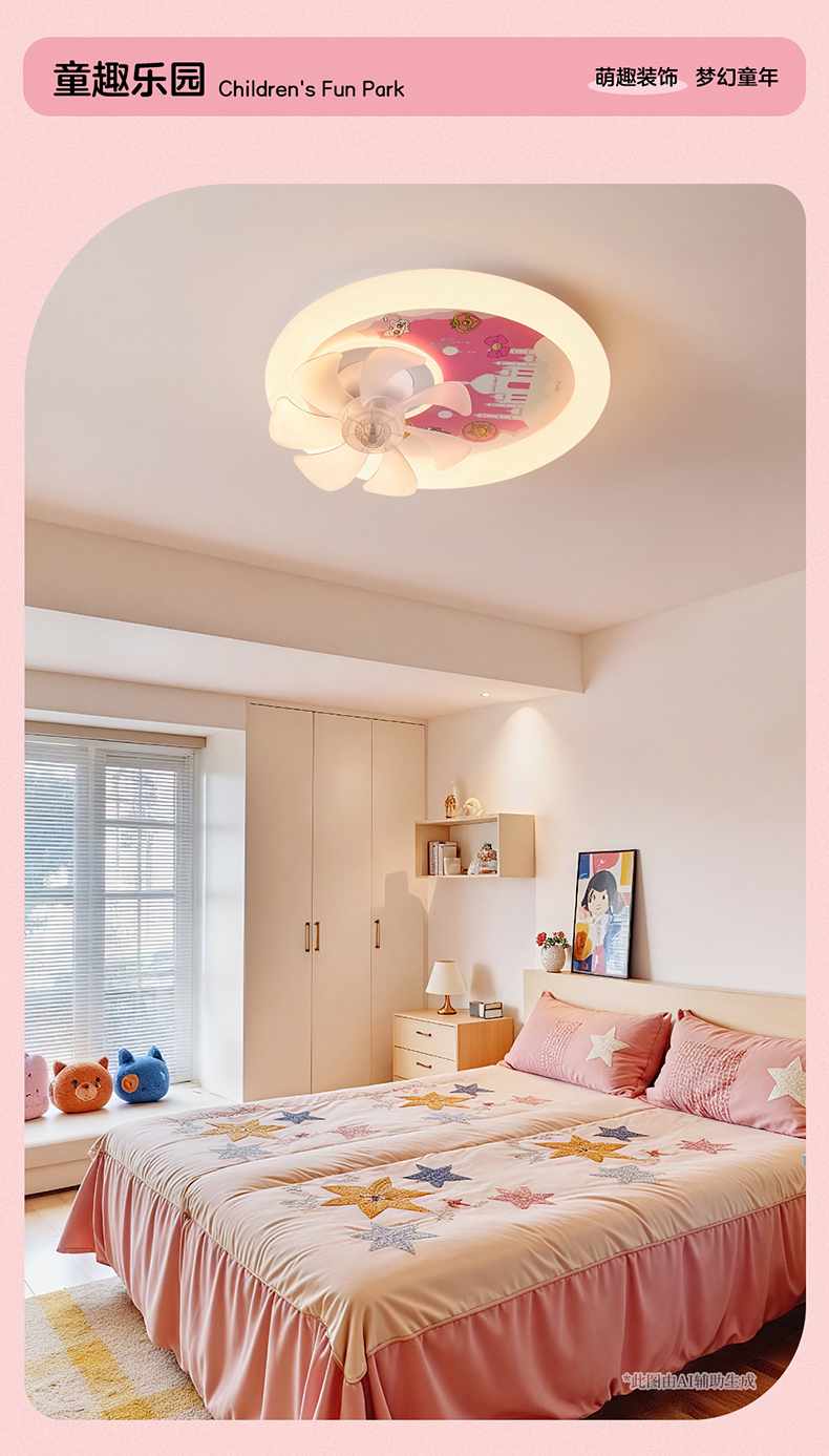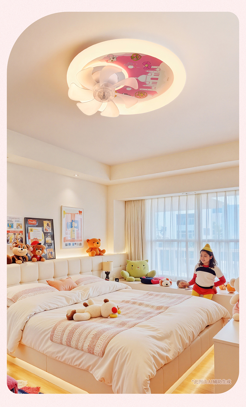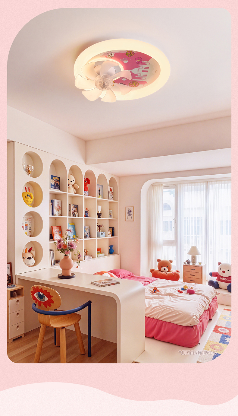 欧普(OPPLE)风趣G全光谱奶油风儿童房卧室吸顶风扇灯