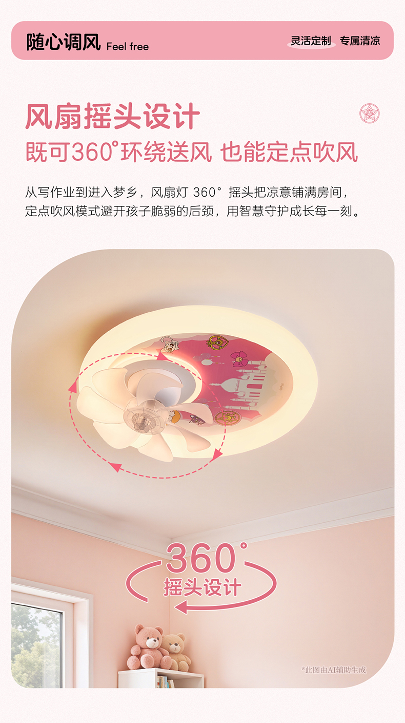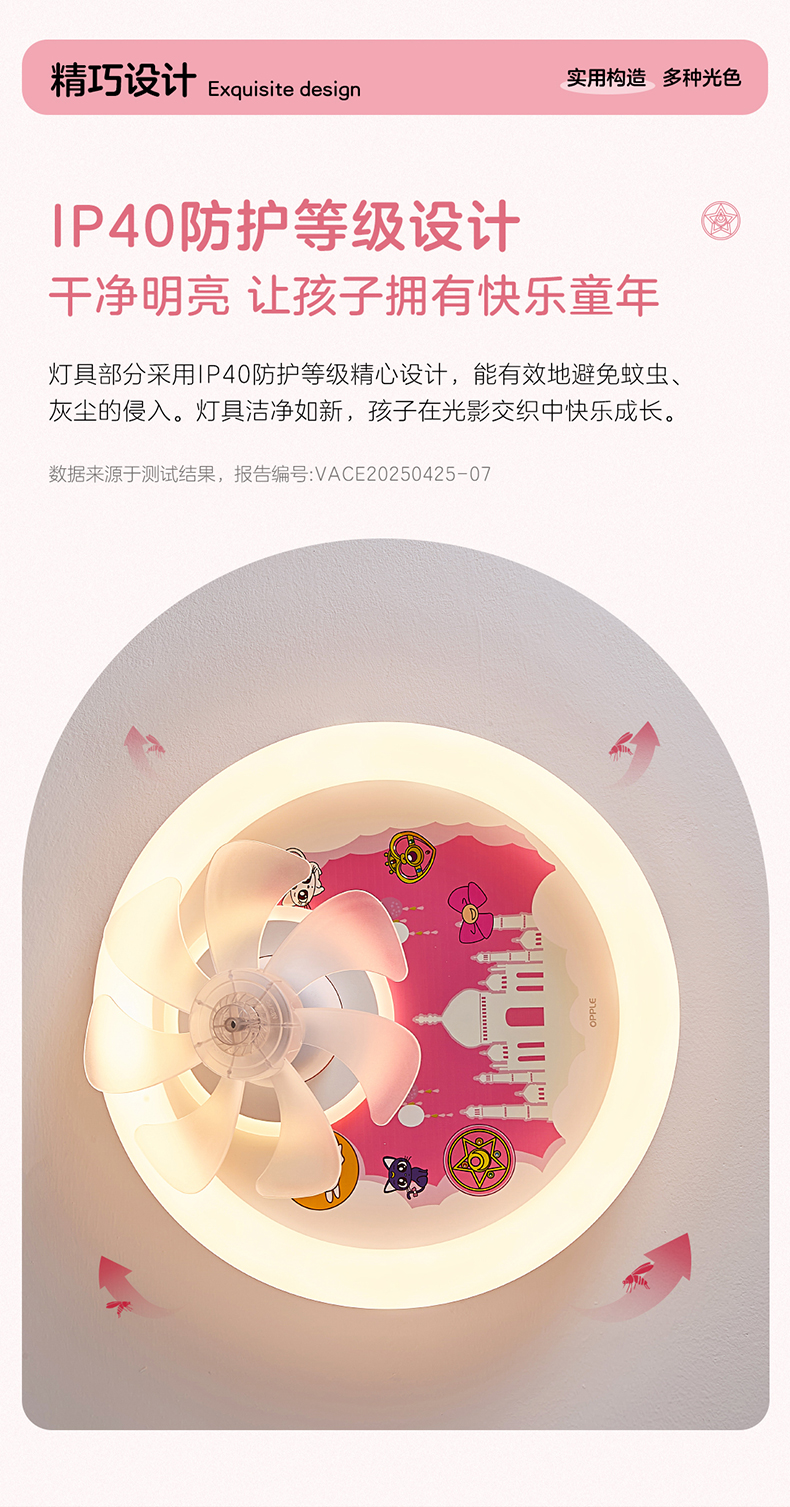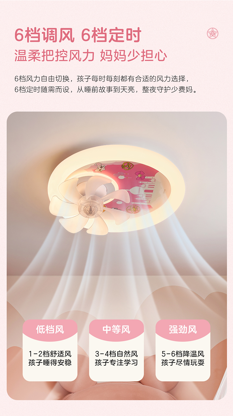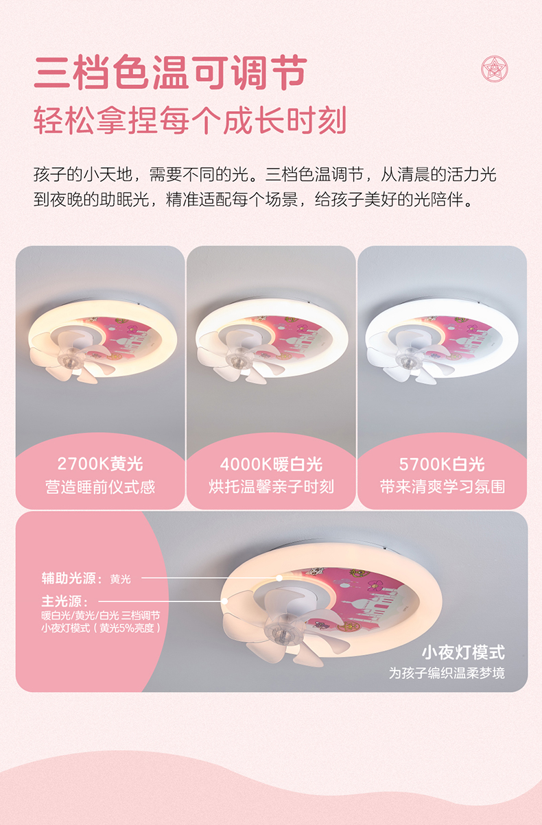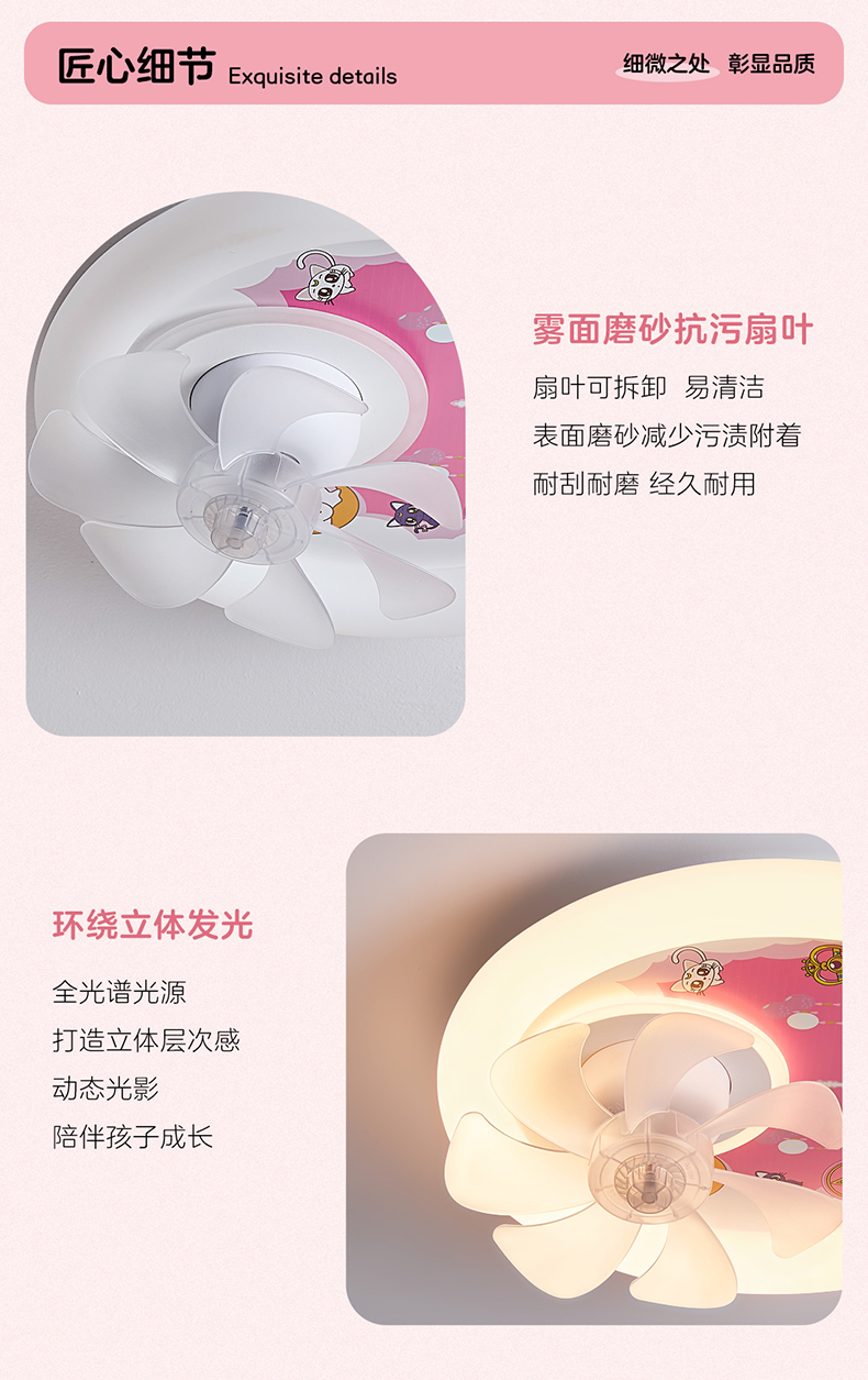 欧普(OPPLE)风趣G全光谱奶油风儿童房卧室吸顶风扇灯