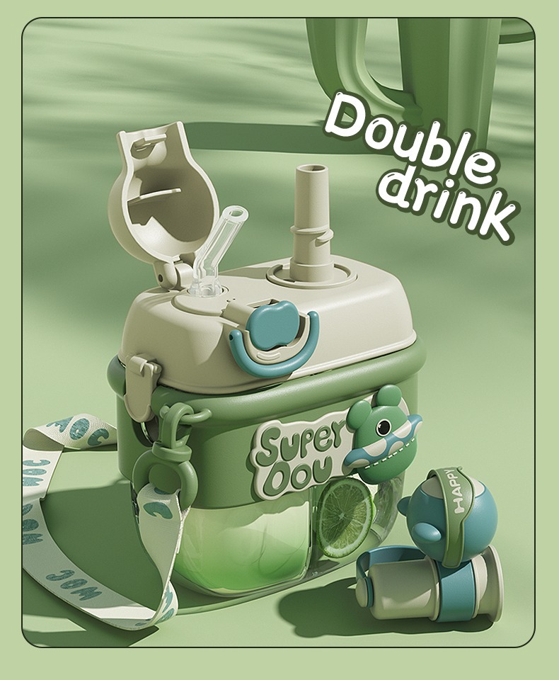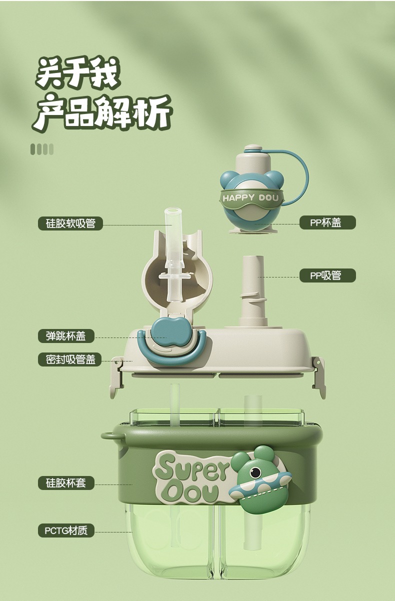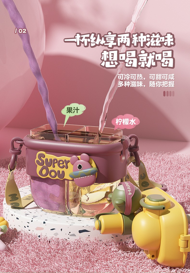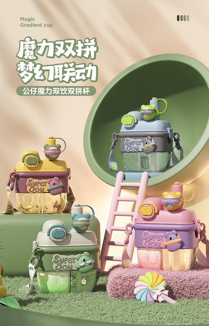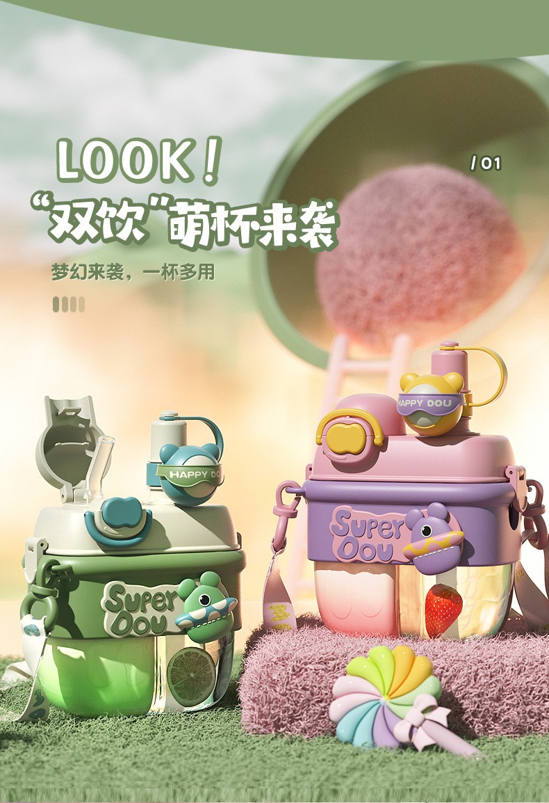 儿童吸管杯大容量分仓双饮杯女学生高颜值塑料杯运动便携水杯