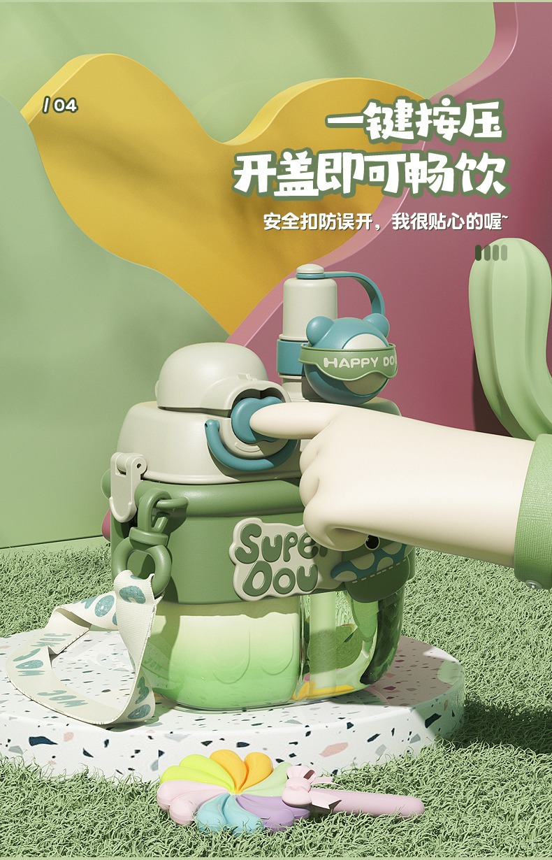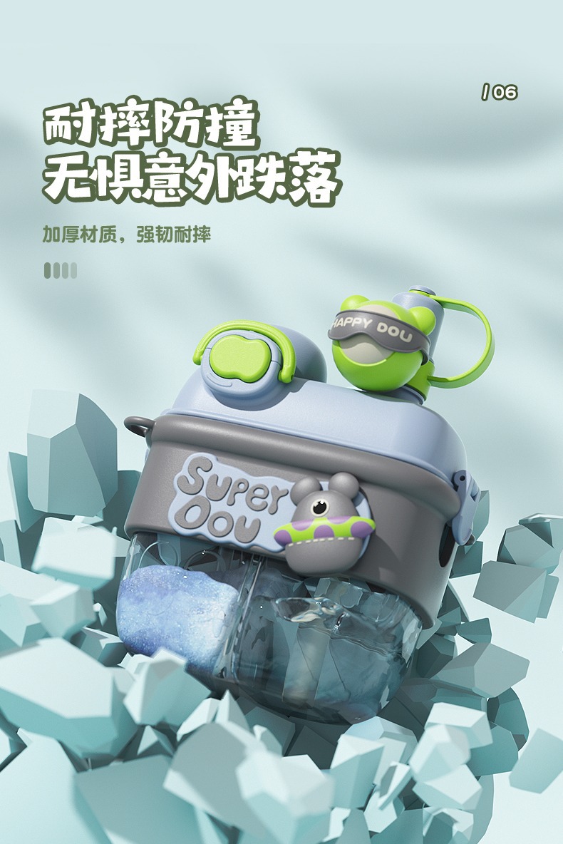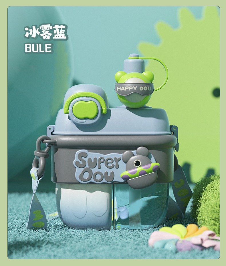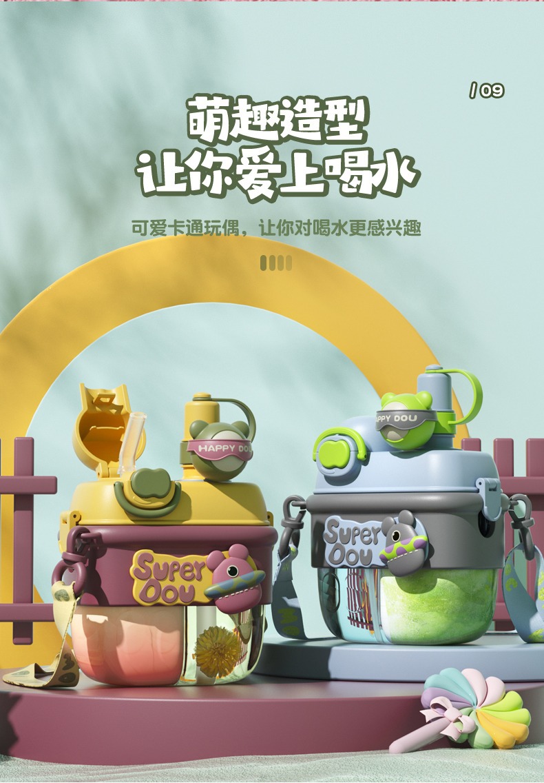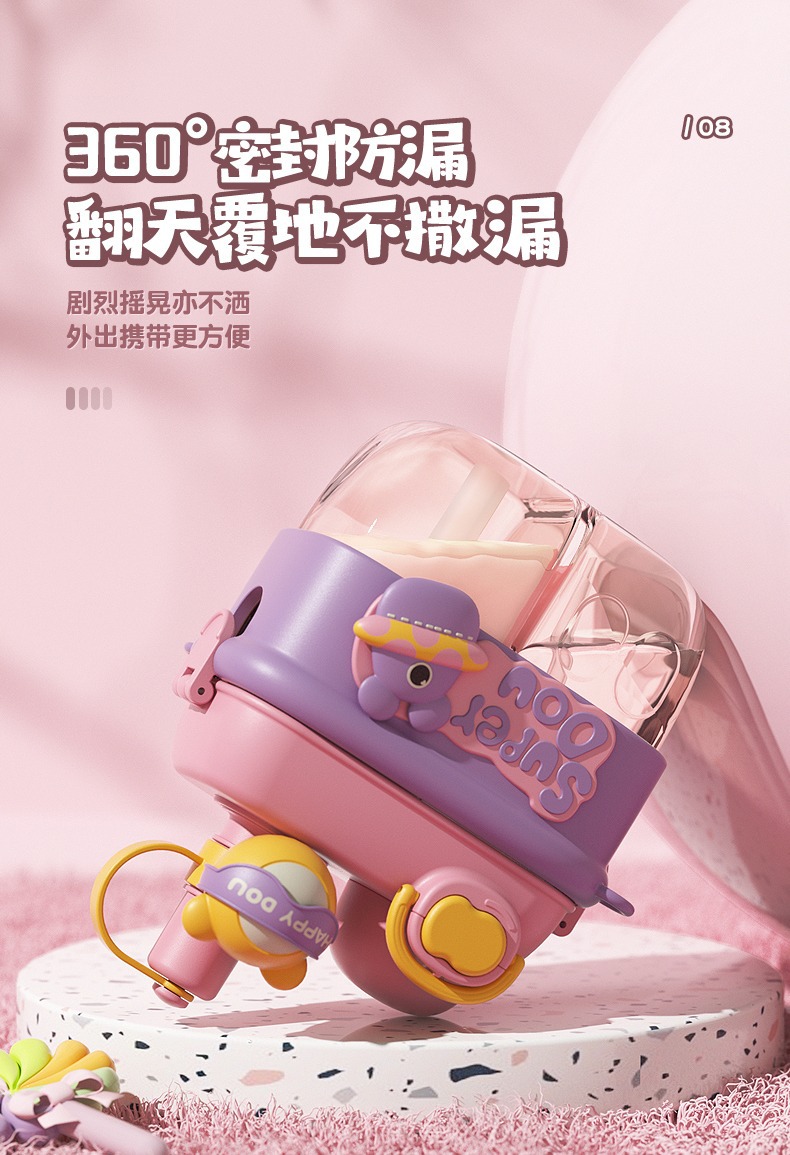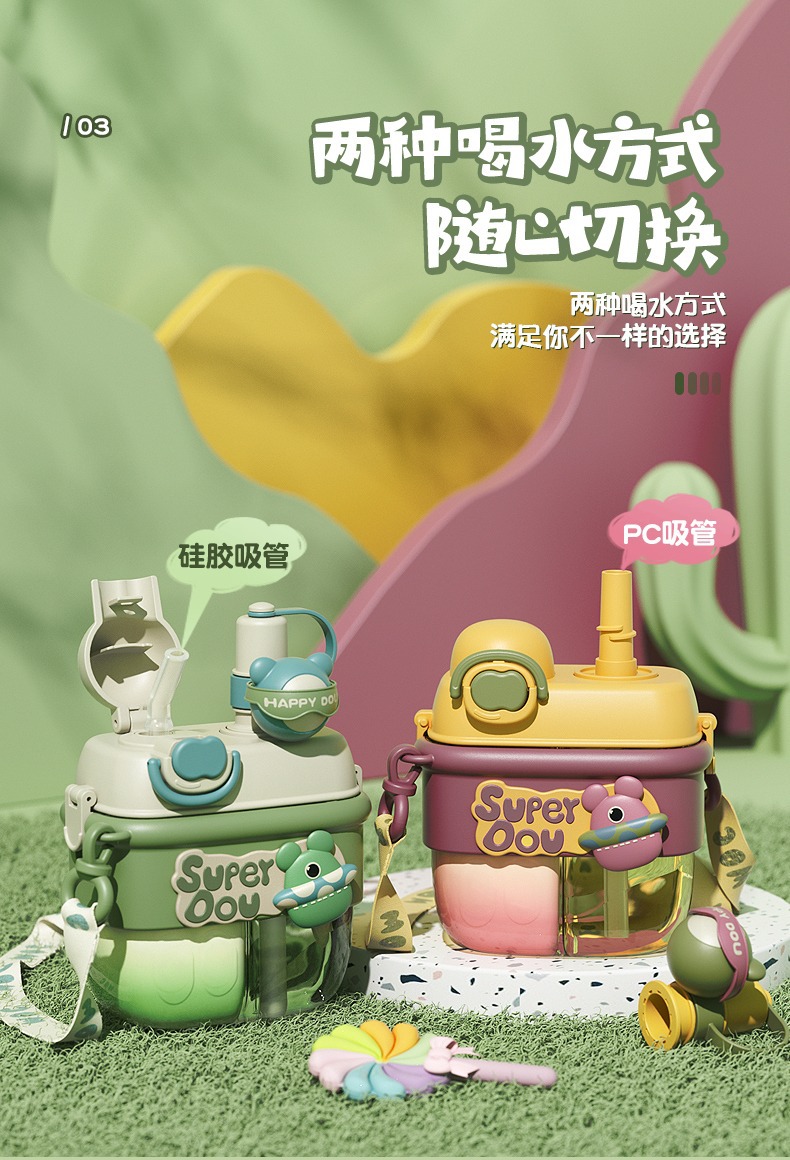 儿童吸管杯大容量分仓双饮杯女学生高颜值塑料杯运动便携水杯