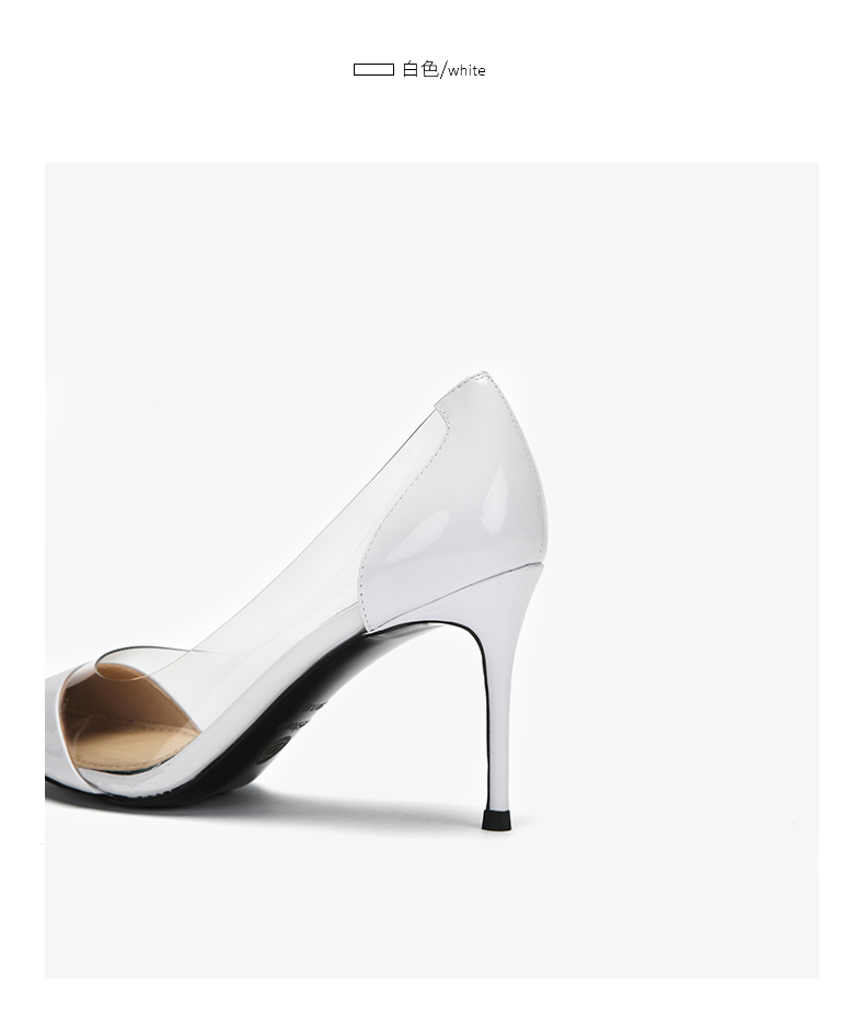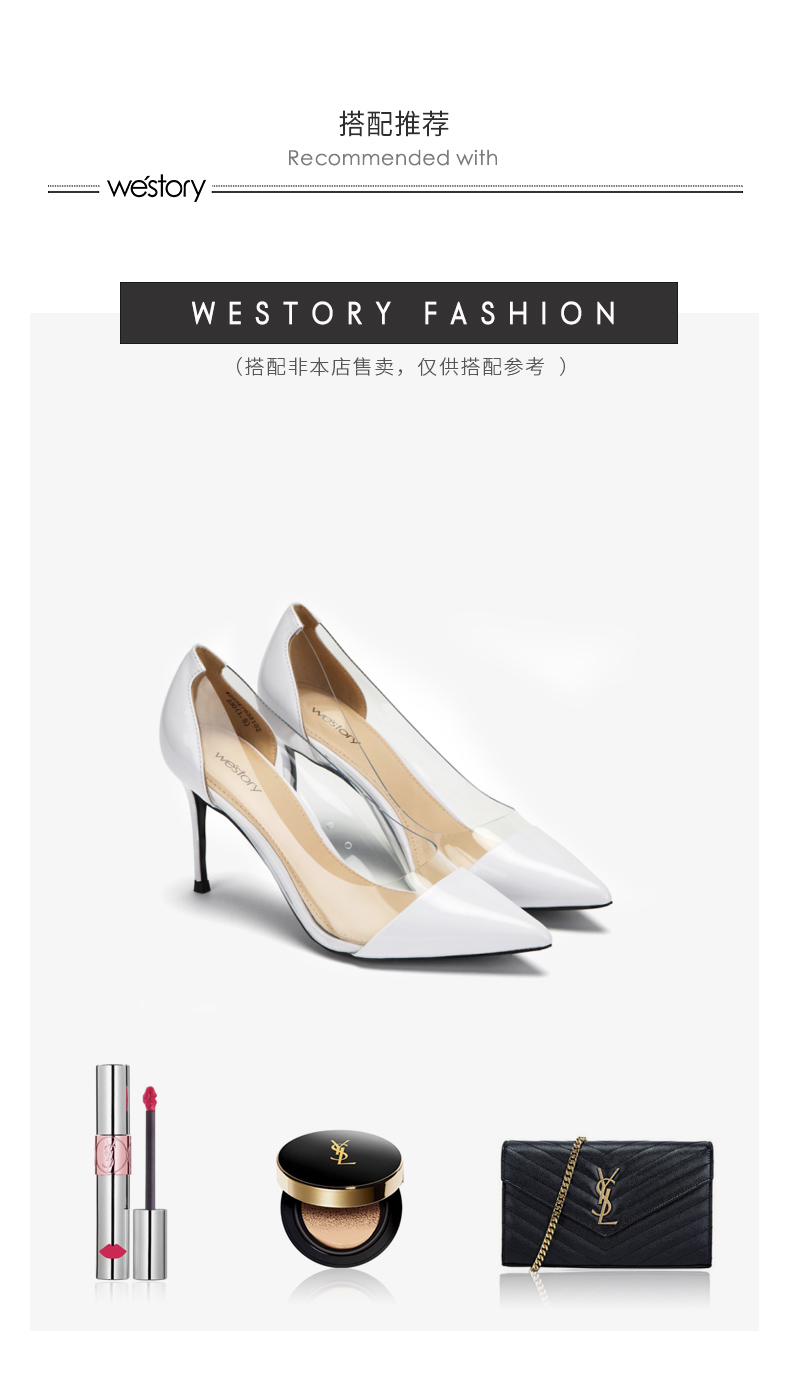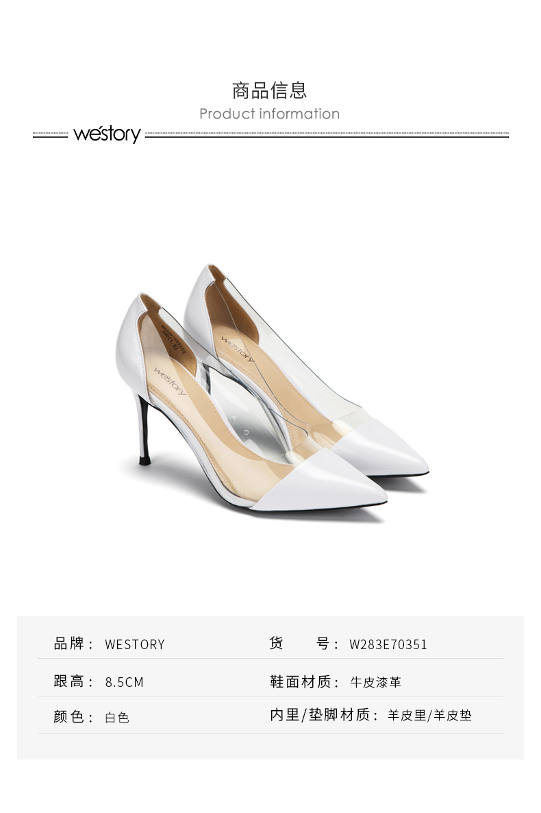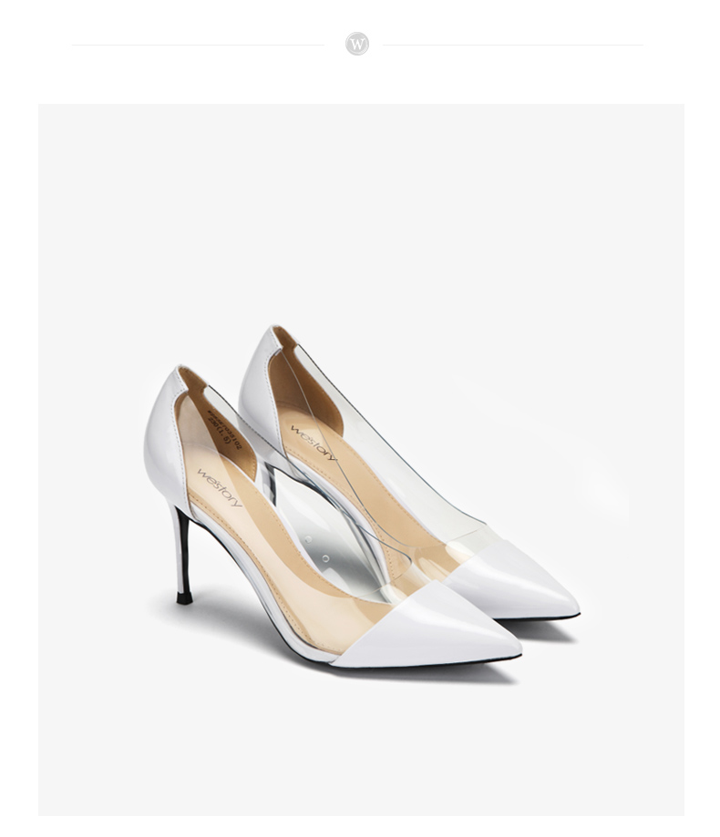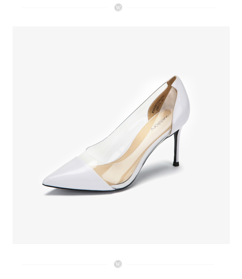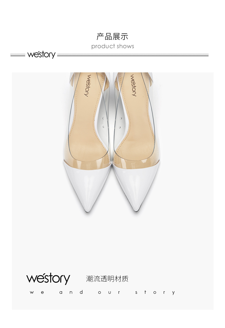 westory新款透明高跟鞋皮面时尚女鞋尖头浅口单鞋W283E70351