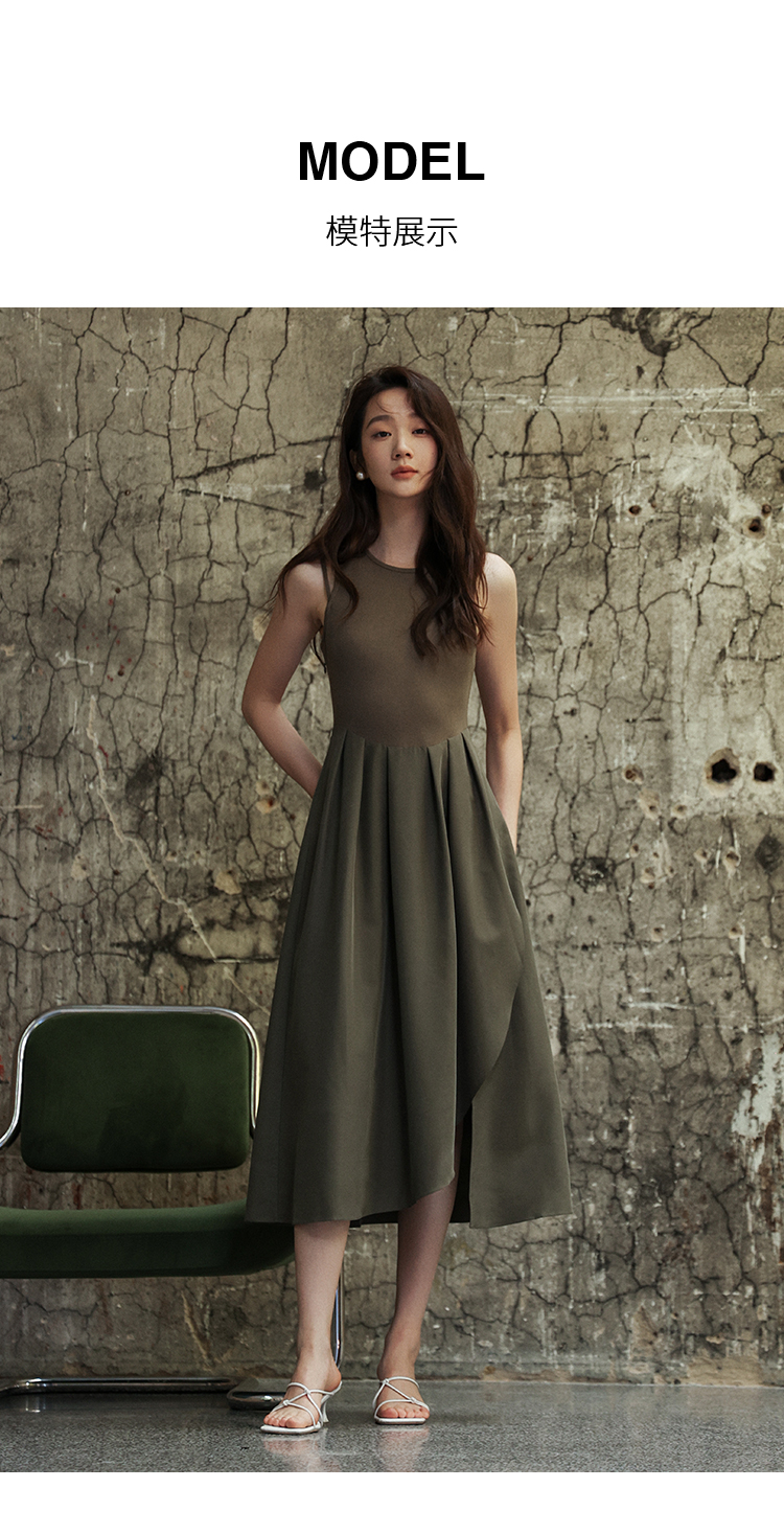 NUTS商场同款夏季简约气质休闲拼接无袖连衣裙422101060