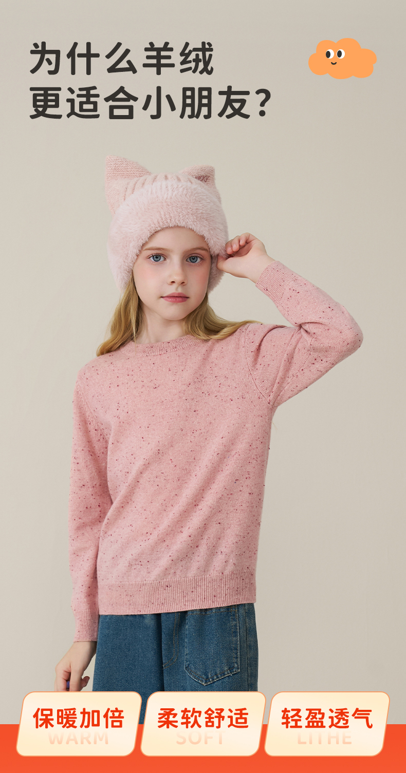 【亲子】儿童100%羊绒衫2025秋冬女童点子纱男童毛衣女士打底针织