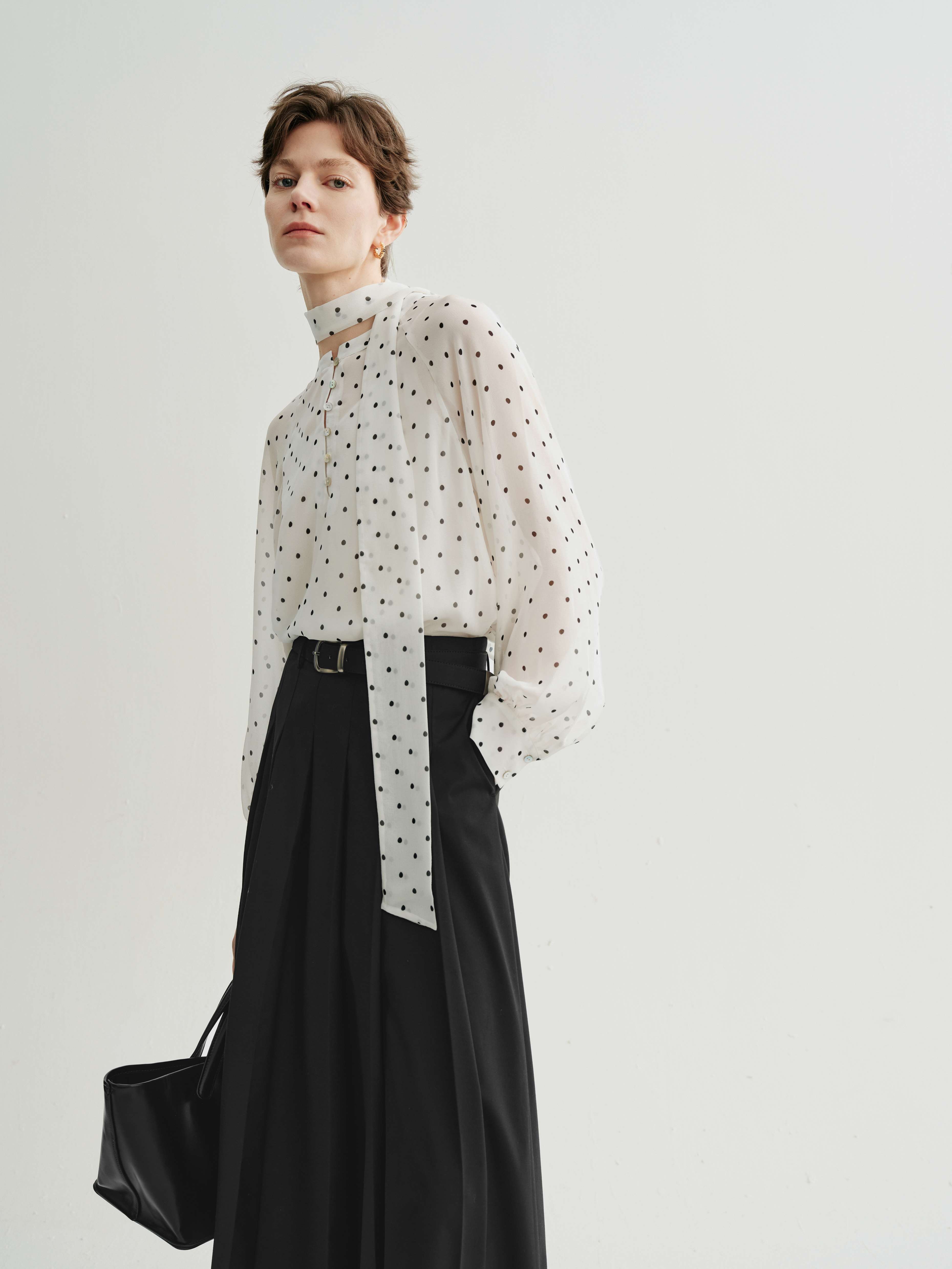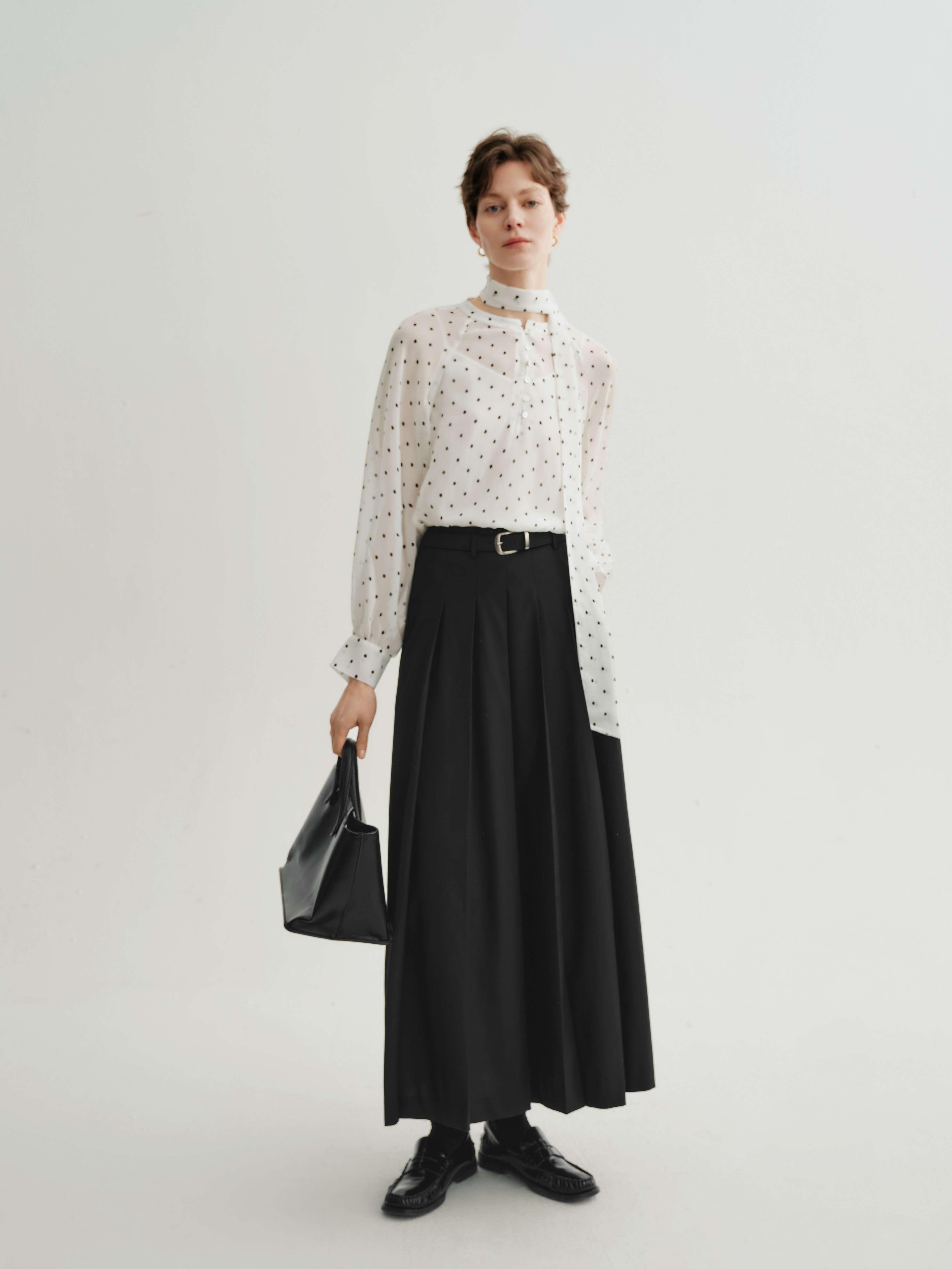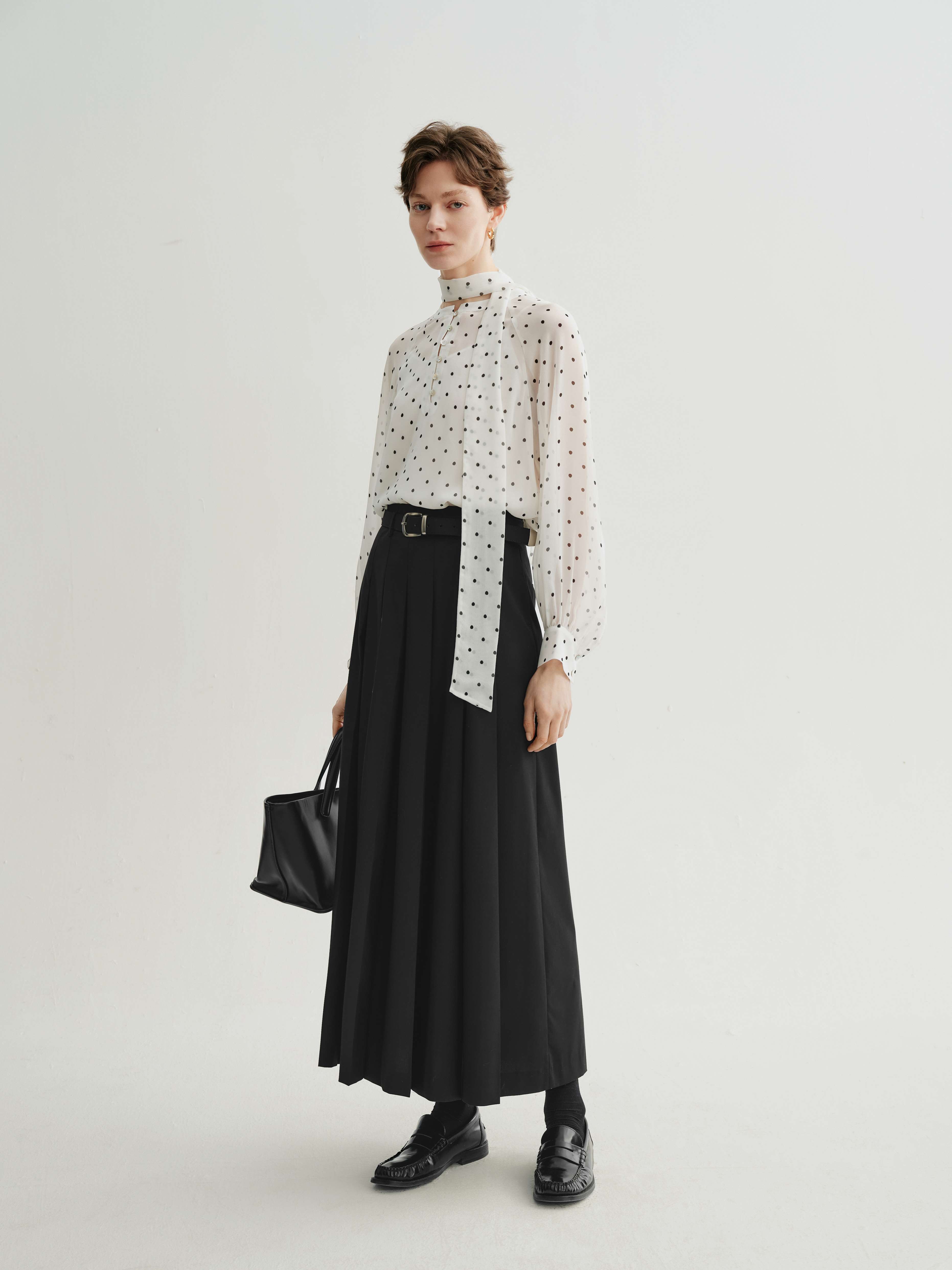 【严选】诗凡黎气质飘逸白色半身裙25夏新款高腰a字显瘦中长小个子百褶裙7G4240161