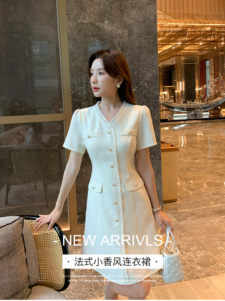 奢姿大码女装2025夏季法式小香风气质连衣裙胖妹妹V领时尚裙子9952853117