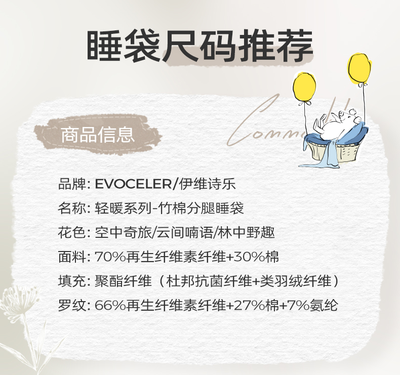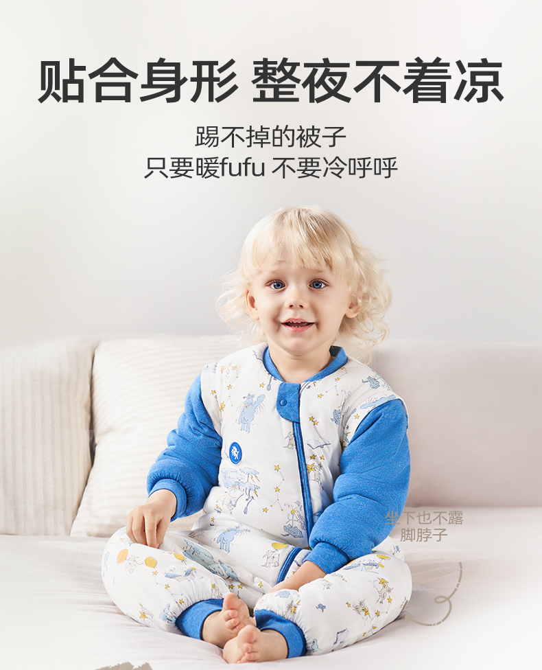 【云优选】英国evoceler轻暖婴儿睡袋四季款秋冬夹棉宝宝分腿儿童睡袋防踢被(清仓,非质量问题不退换,介意慎拍)