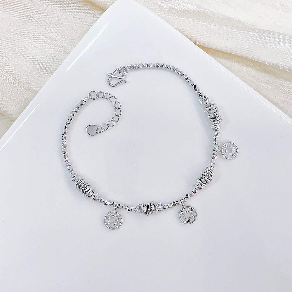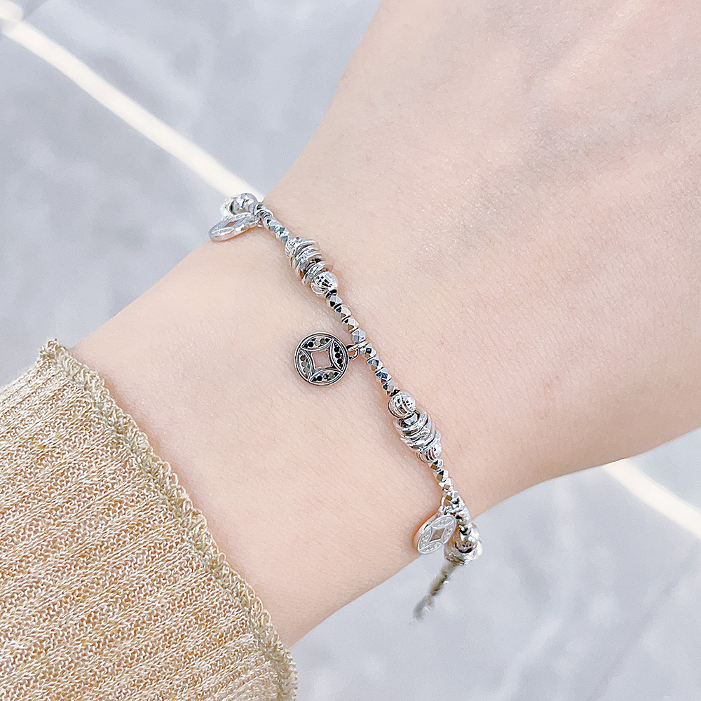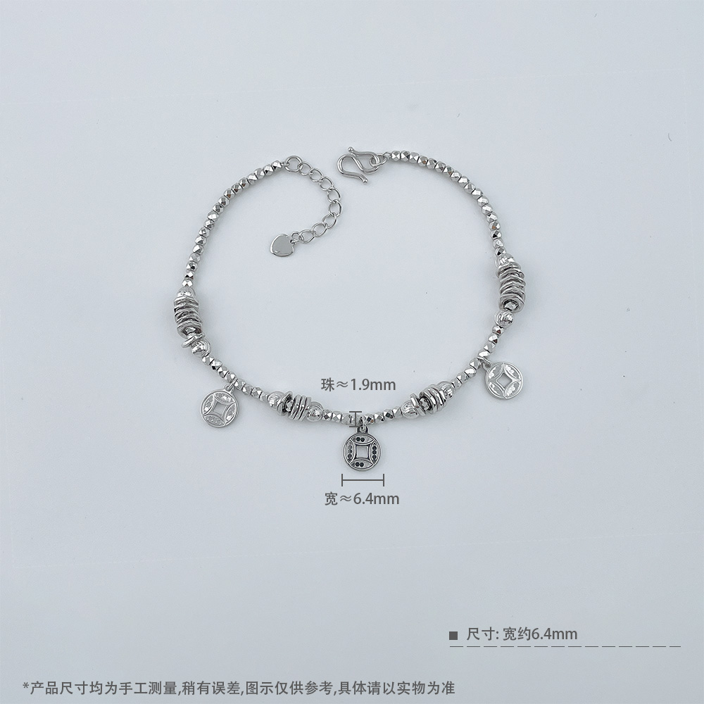【限时8.8折】【线上铂金馆】PT950 #CNC #盘缠 #招财纳福 铂金调节金币流苏蹦迪珠间碎金子盘缠手链(内里为铂金链,铜钱盘缠实心)(PTSL00040)预售4-7天发货,一经下单不支持退款