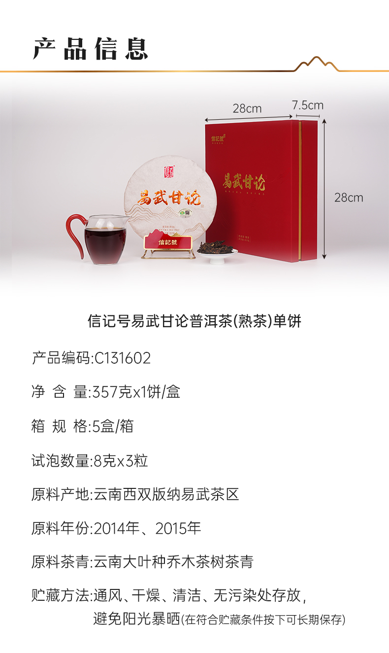 八马信记号|普洱熟茶 易武甘论 单饼装 C131602