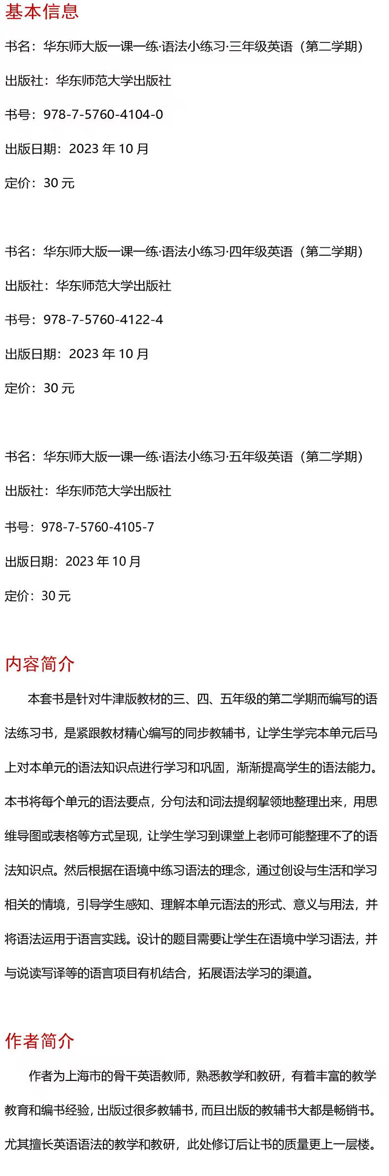 一课一练 华东师范出版 3-5年级英语语法小练习