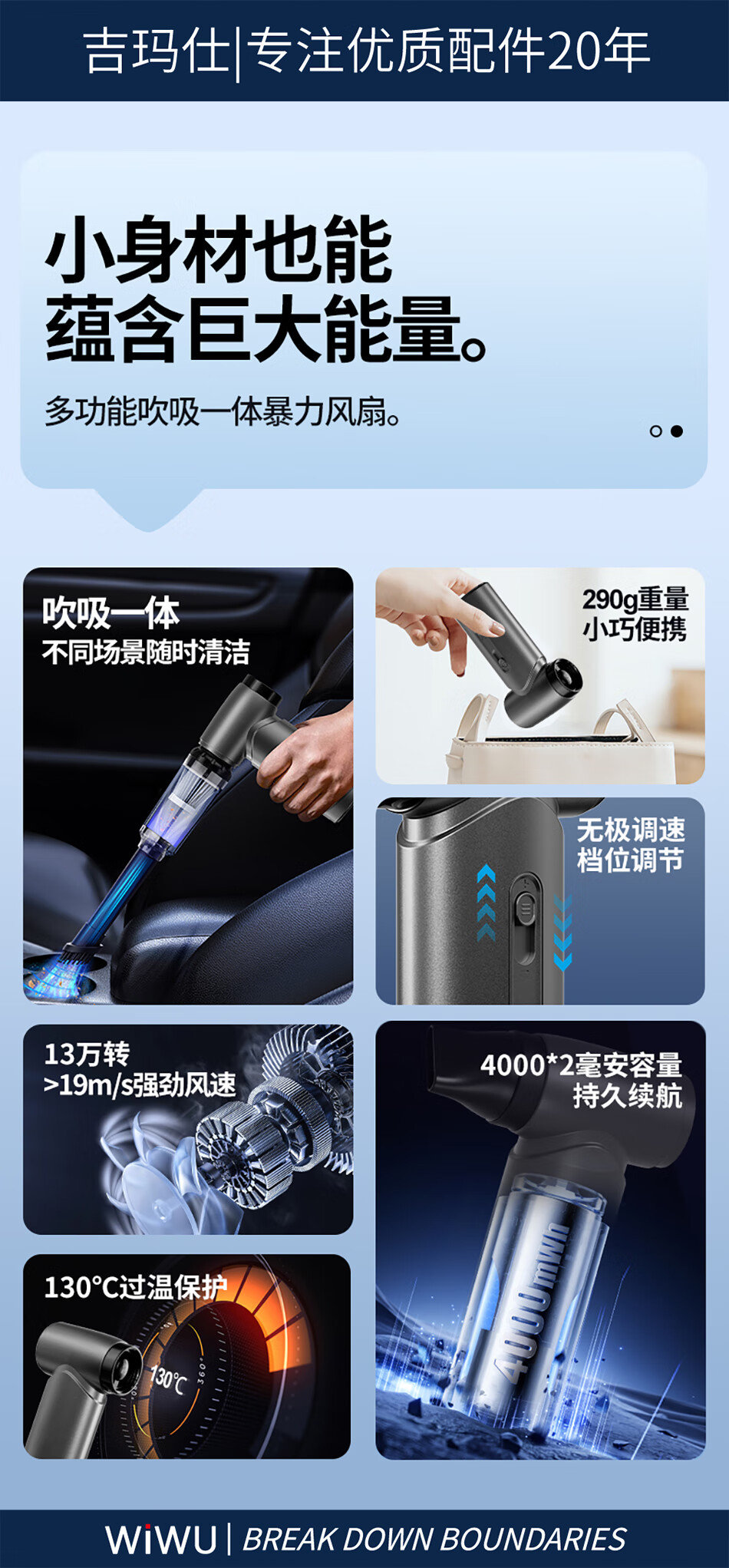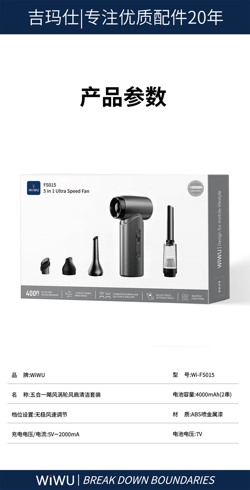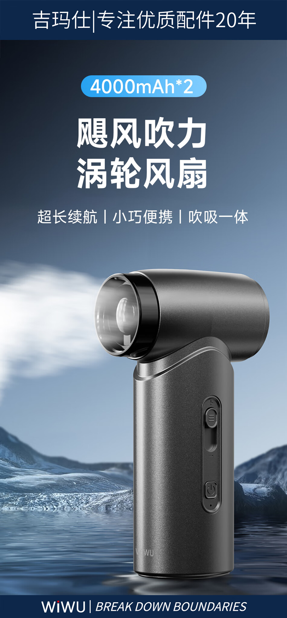 WIWU高速飓风手持风扇USB Wi-FS015 4000mAh