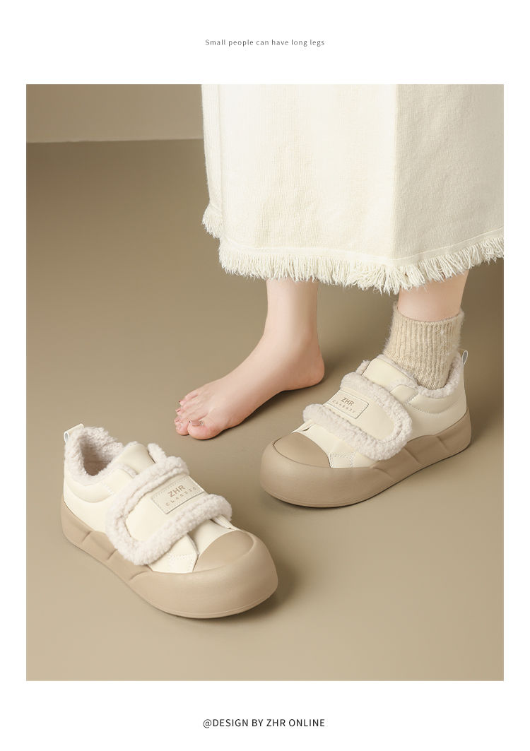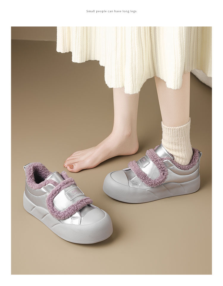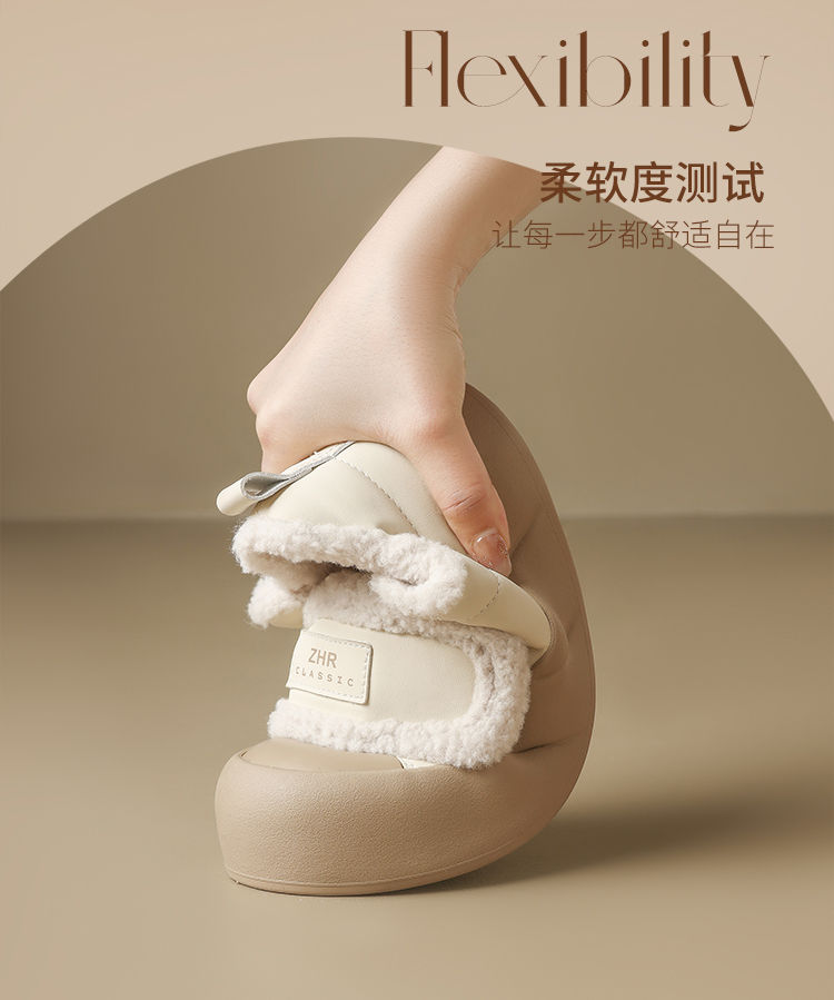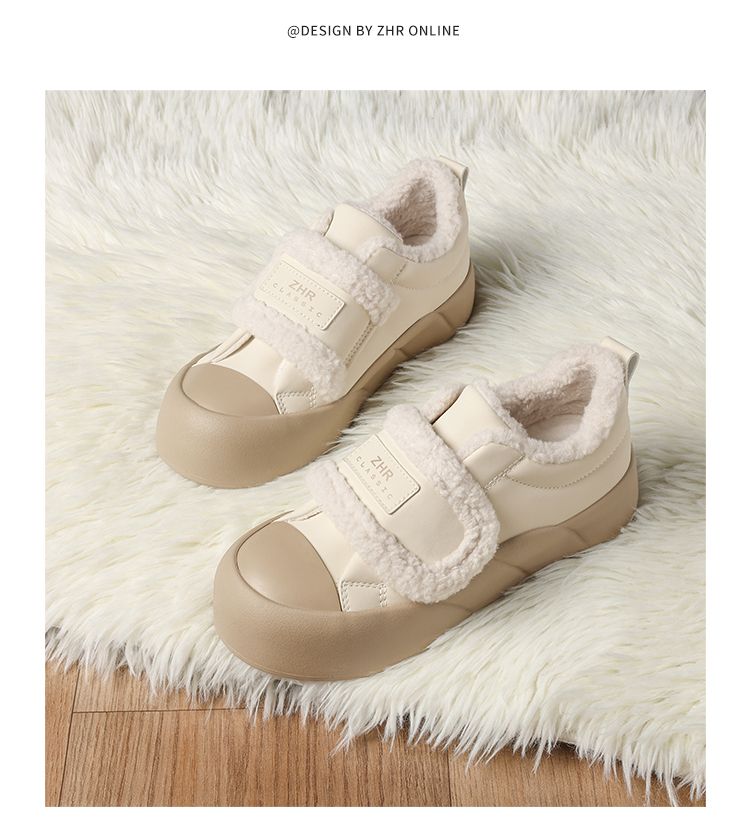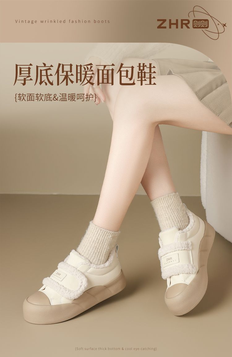 ZHR则则加绒面包鞋女2024秋冬季厚底保暖魔术贴超软雪地靴棉鞋女