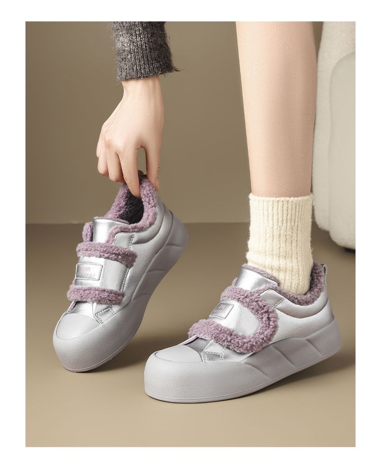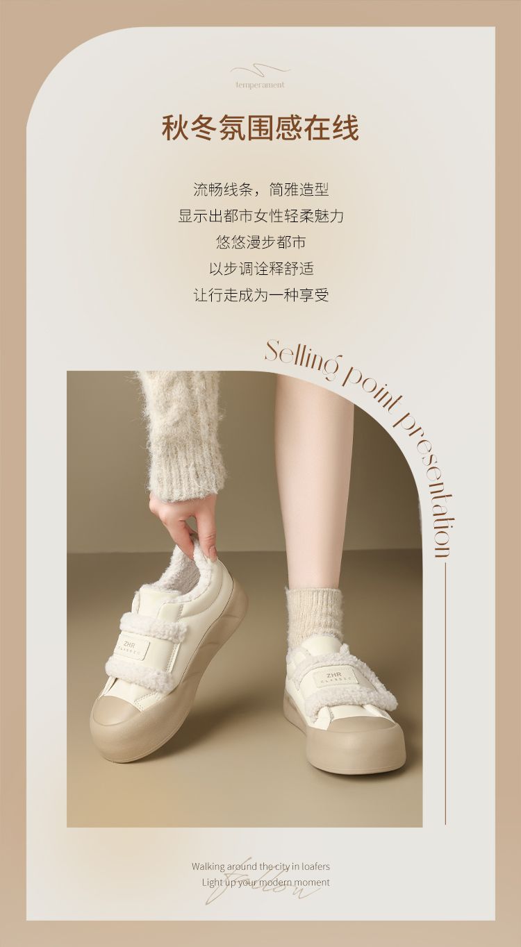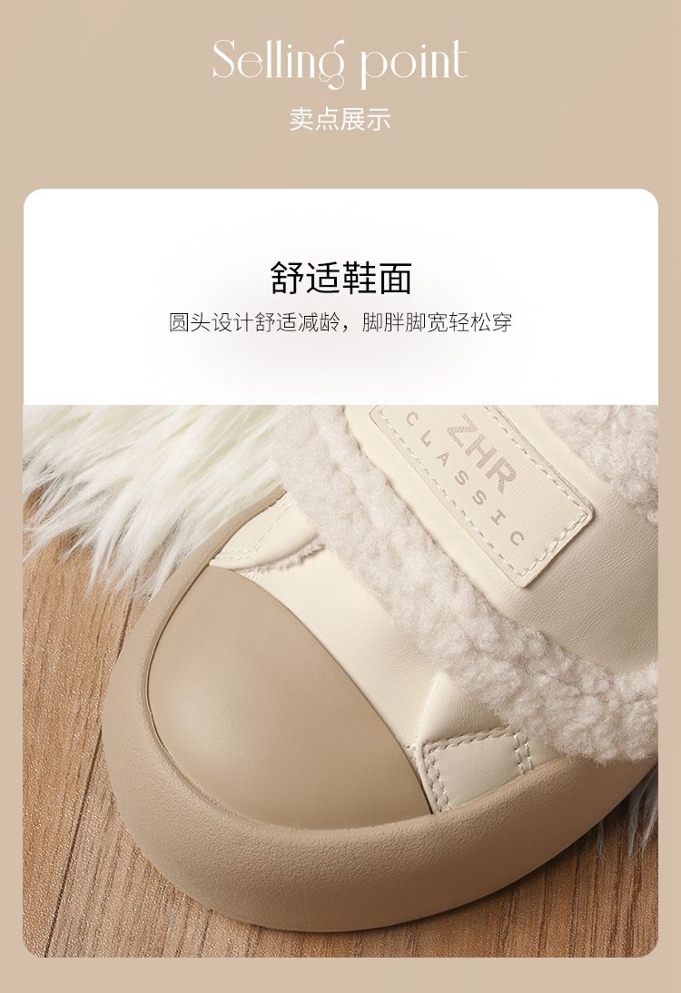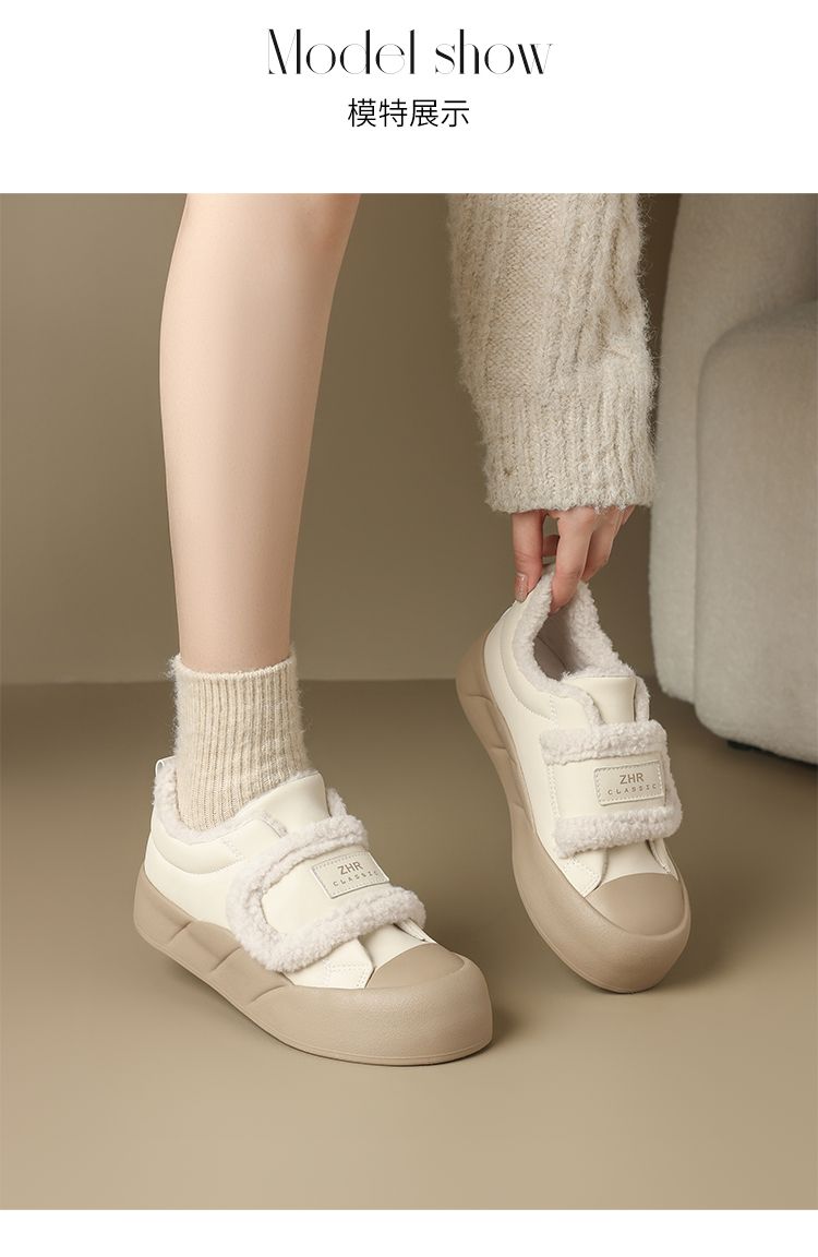 ZHR则则加绒面包鞋女2024秋冬季厚底保暖魔术贴超软雪地靴棉鞋女