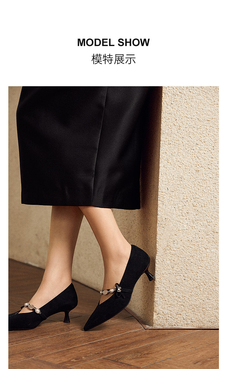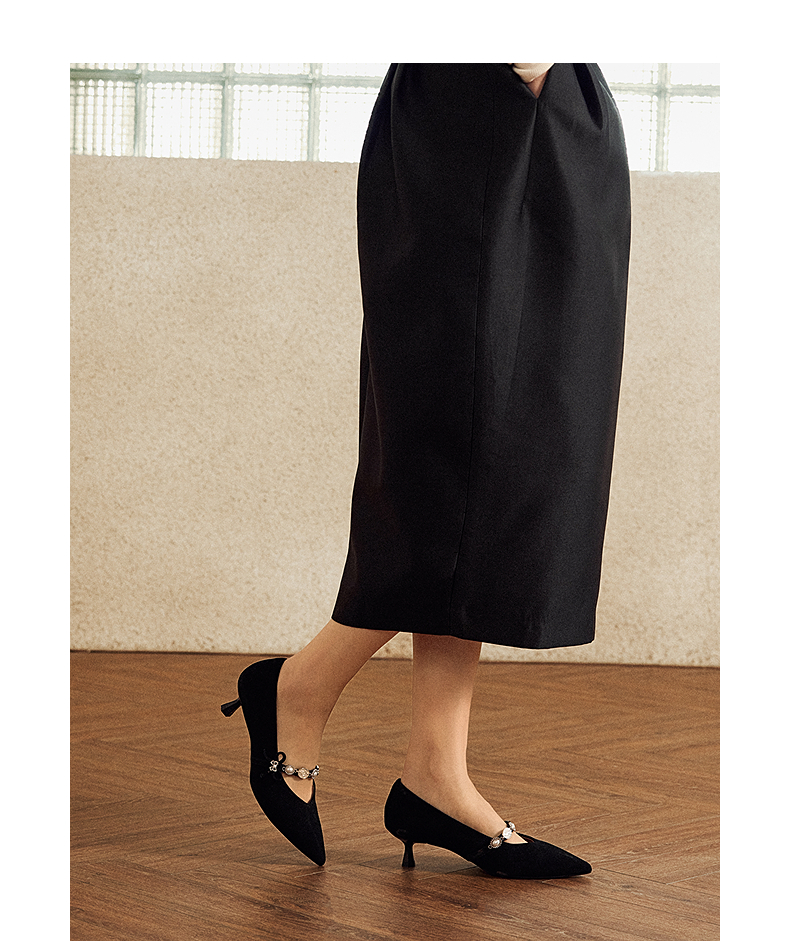 【静音系列】千百度羊皮细高跟鞋女玛丽珍鞋浅口单鞋A25482930