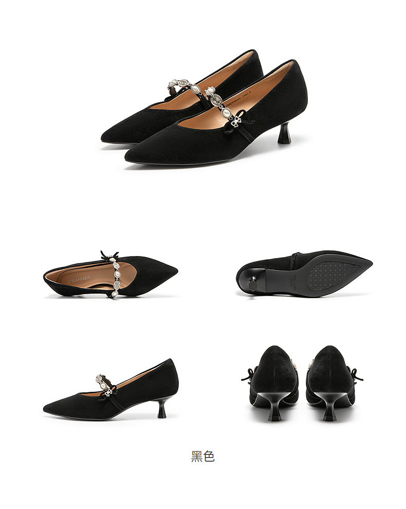 千百度闪钻羊皮镂空玛丽珍鞋凉鞋女春季新低跟透气单鞋晚晚鞋A25179334