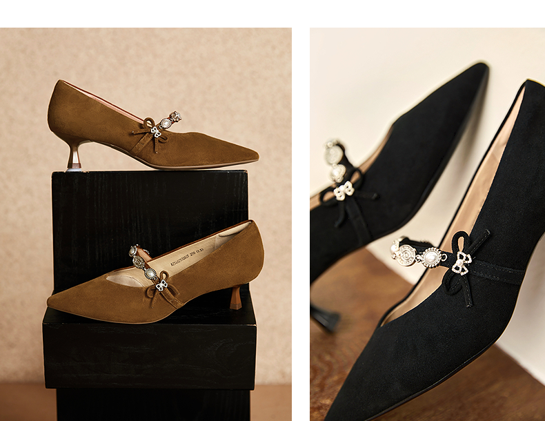 MIO米奥女鞋小香风凉鞋春夏新款甜美链条蝴蝶结法式浅口单鞋皮鞋M252240712