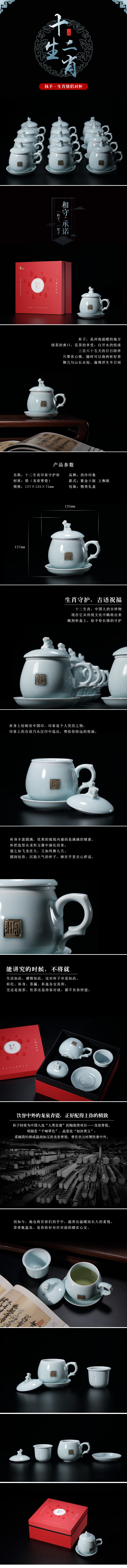 【分销】西泠印社 龙泉青瓷十二生肖印章守护杯(全釉) 茶具水杯商务礼品套装福纳吉祥