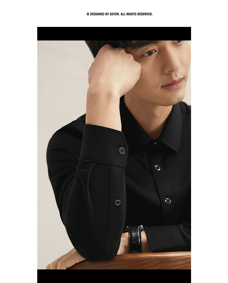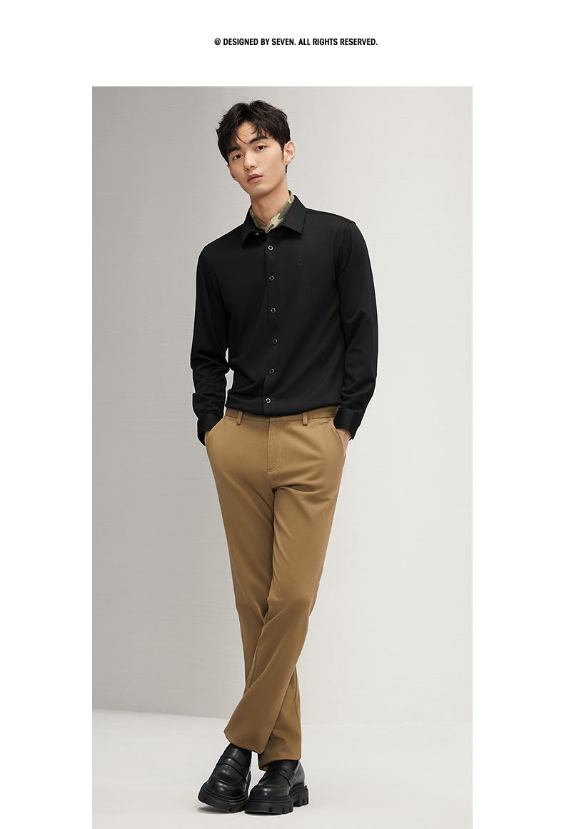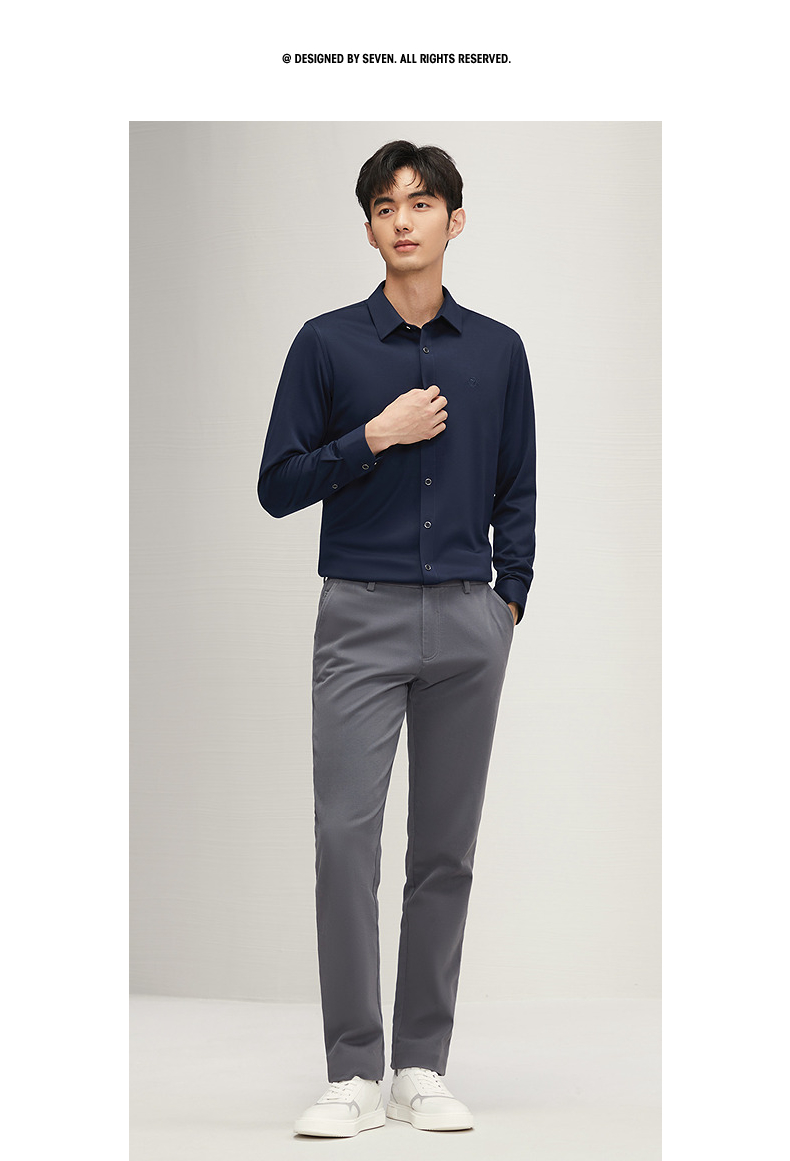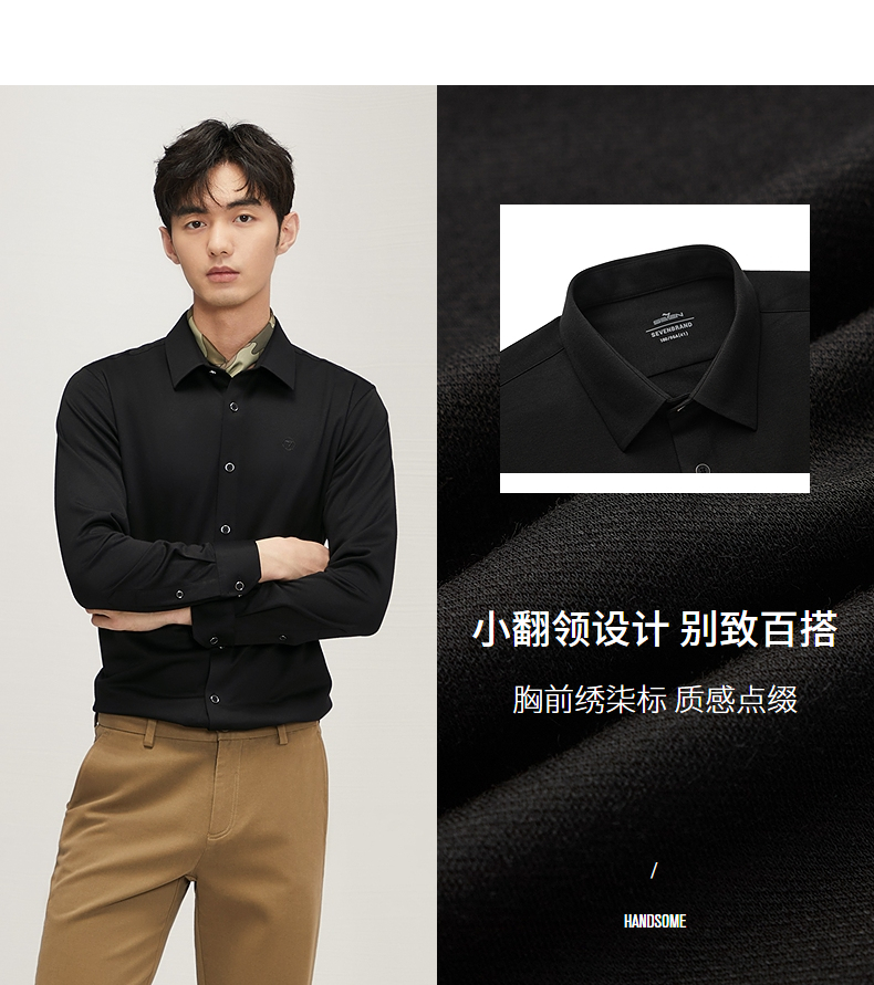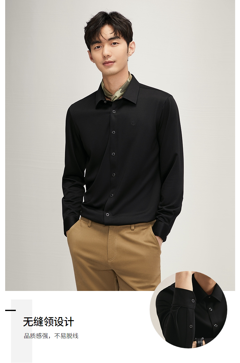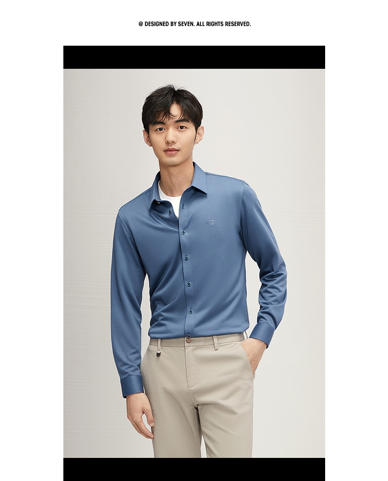 【针织弹力】柒牌无缝翻领衬衫男士2024秋季新款商务休闲长袖衬衣 127A70800