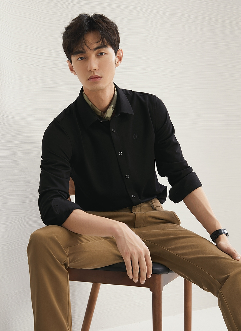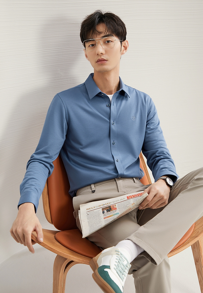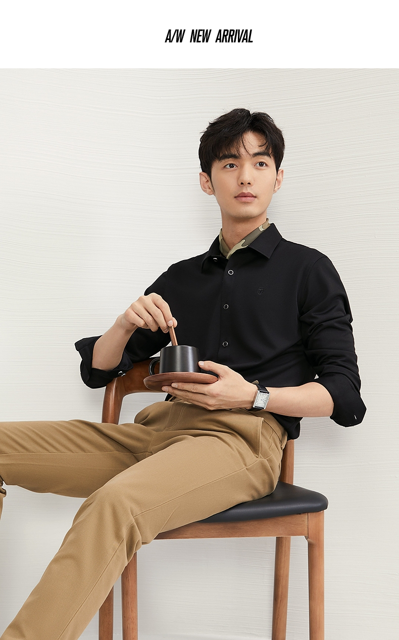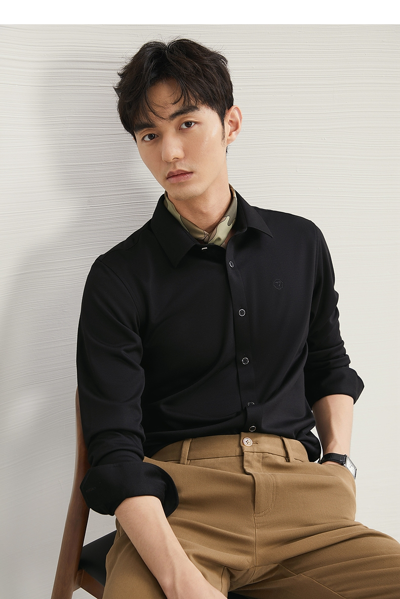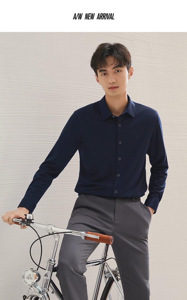 【针织弹力】柒牌无缝翻领衬衫男士2024秋季新款商务休闲长袖衬衣 127A70800