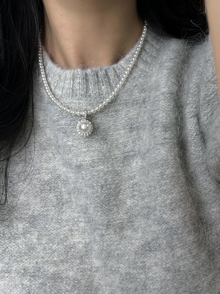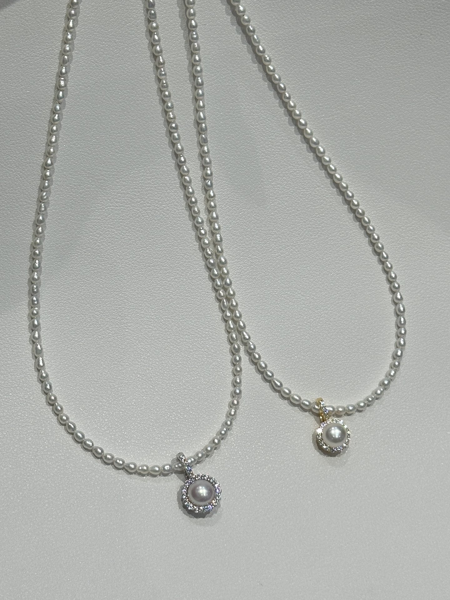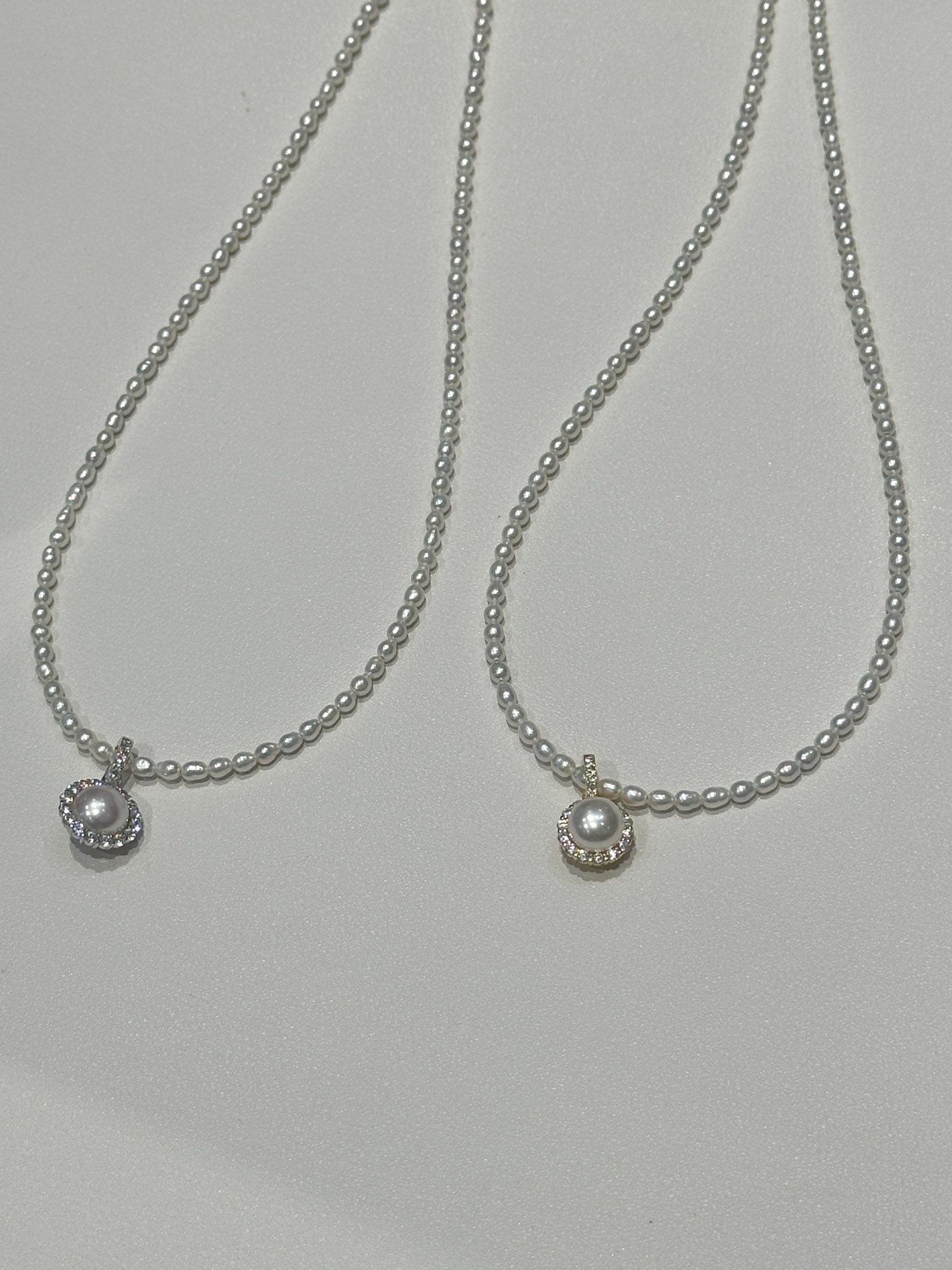 1014-2 炒鸡日常 跑量小米珠项链 4-4.5mm白亮米珠➕极光纯银锆石太阳花吊坠