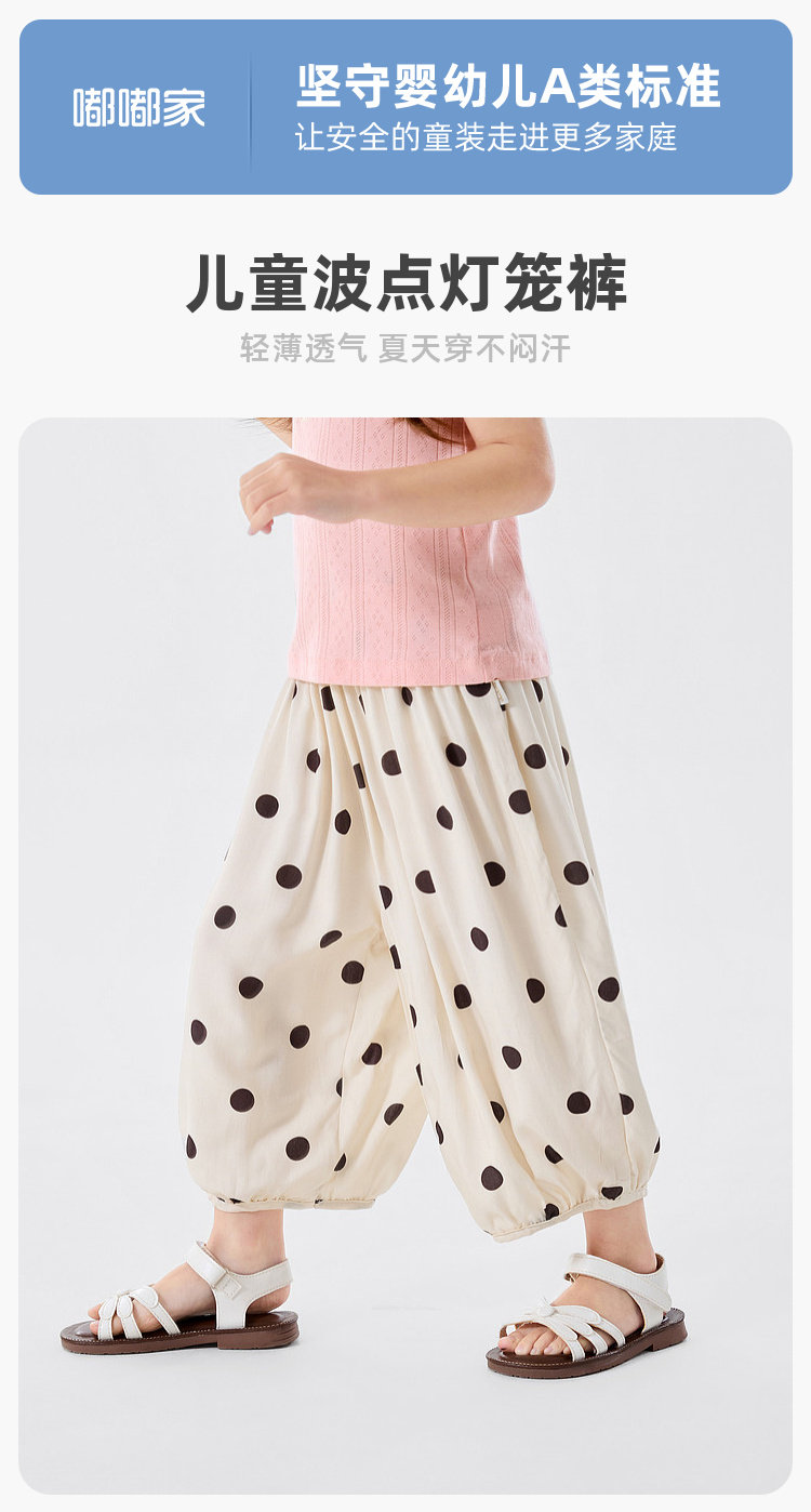 嘟嘟家女童裤子夏季儿童新款灯笼裤外穿舒适休闲裤女孩波点裤a类C6BKZ283