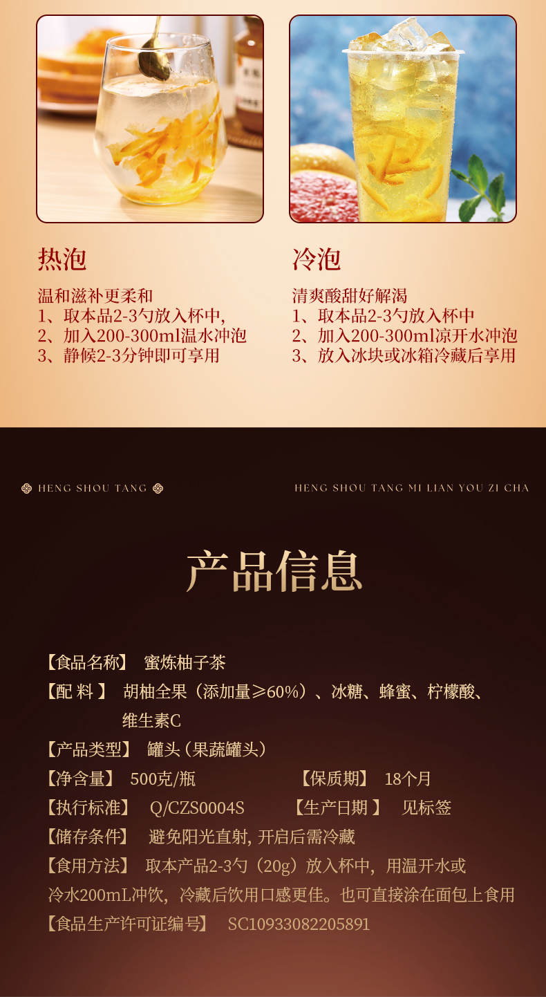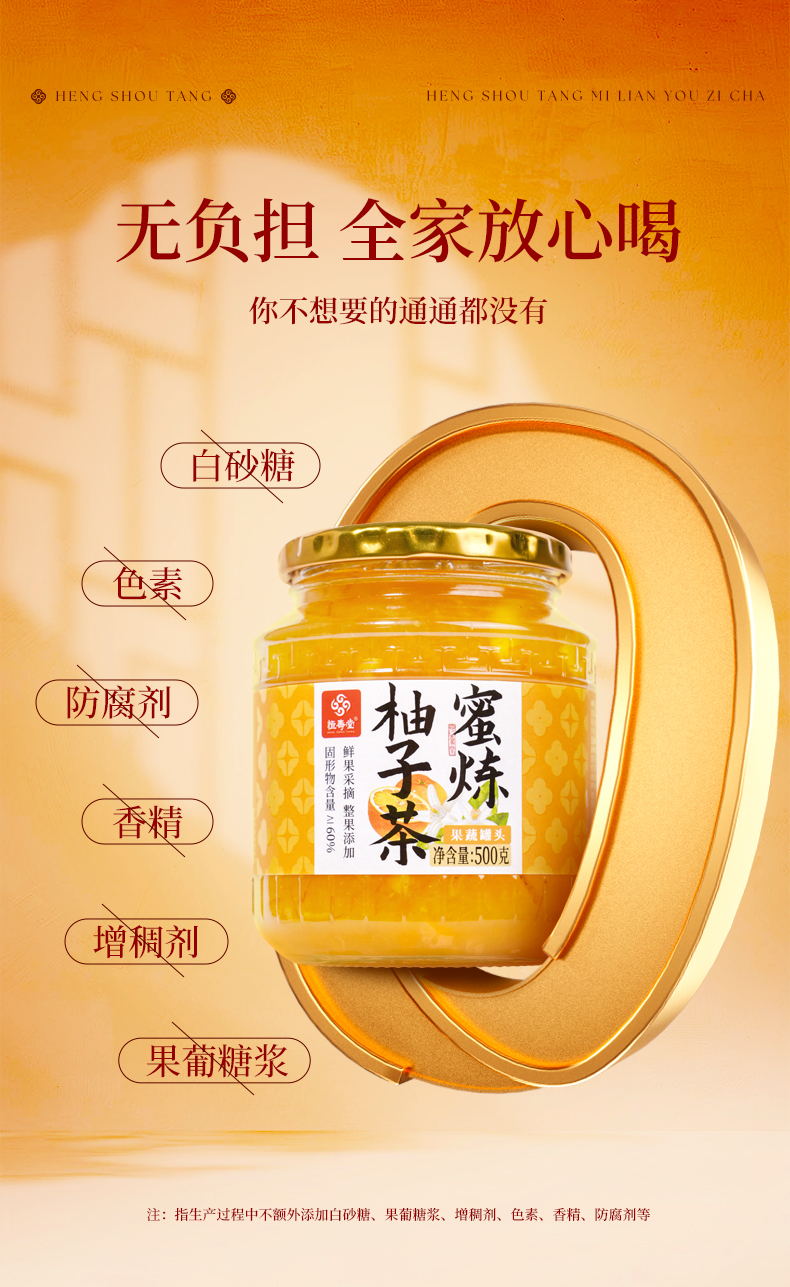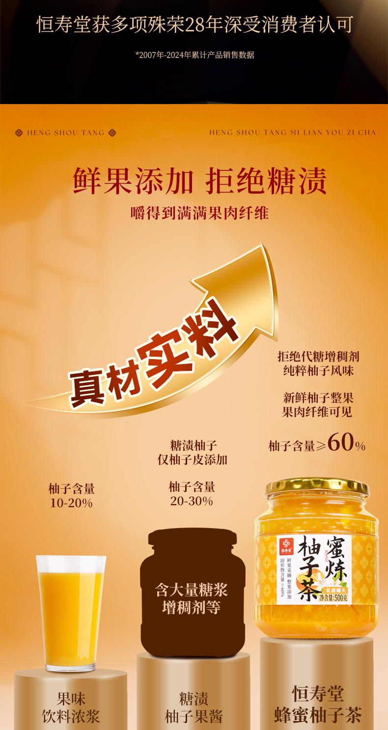 【女神节】恒寿堂 蜜炼60%柚子茶(送勺子) 500g/500g*2