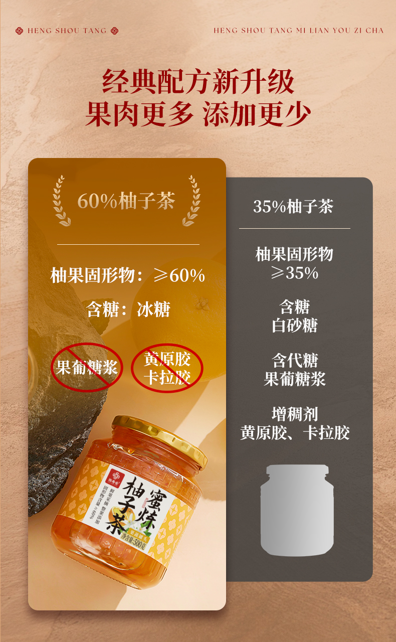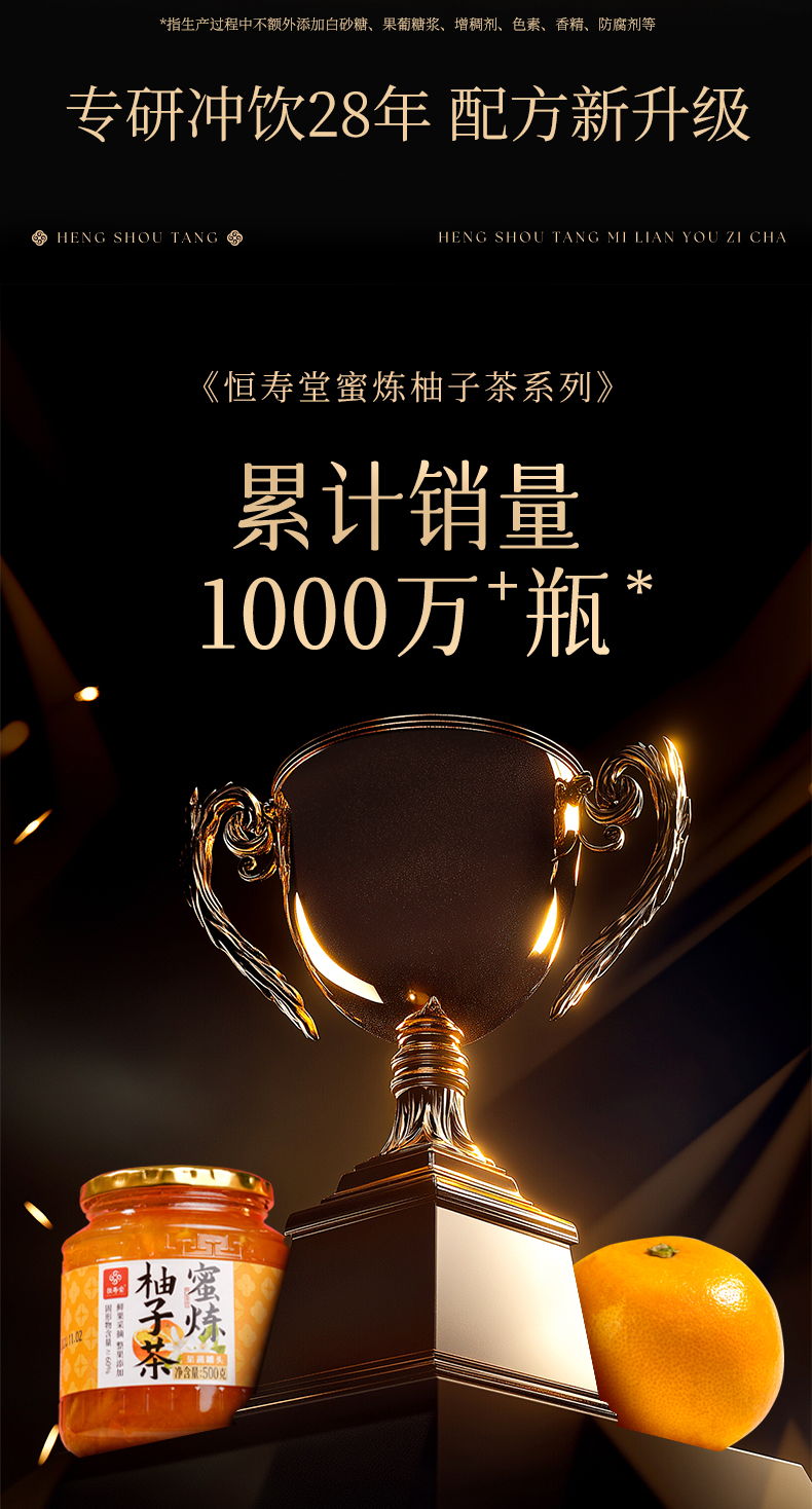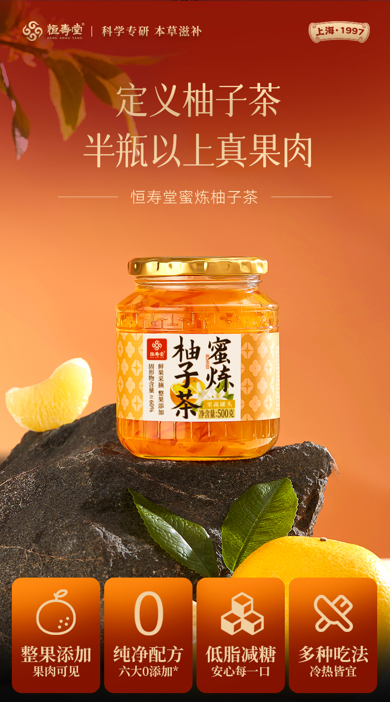 【女神节】恒寿堂 蜜炼60%柚子茶(送勺子) 500g/500g*2