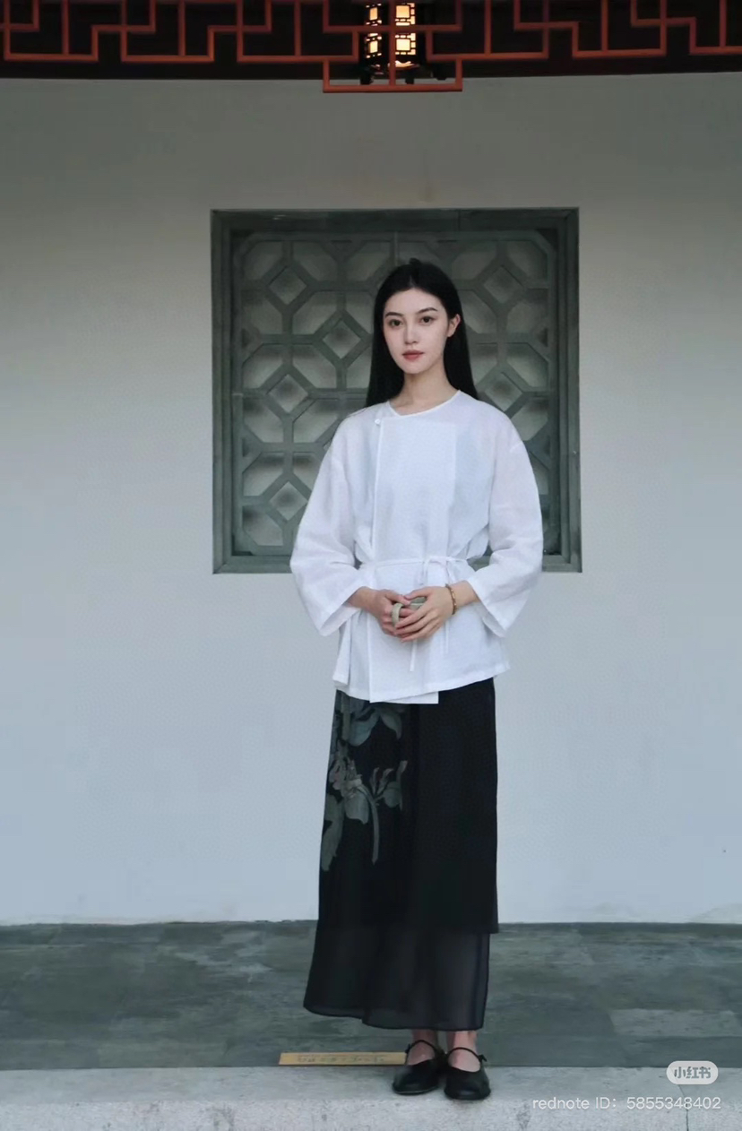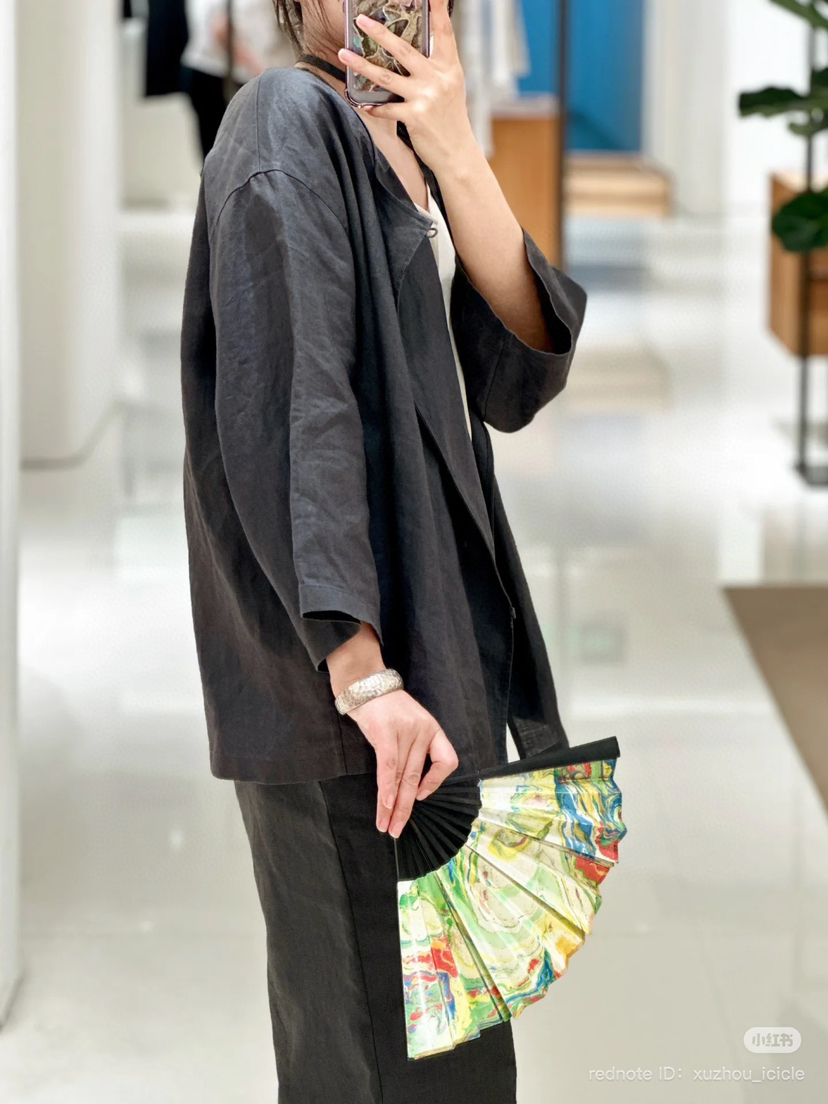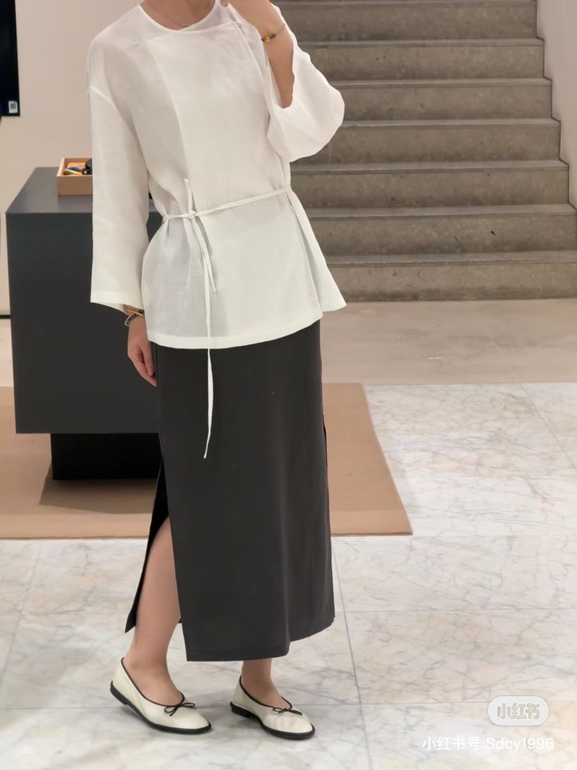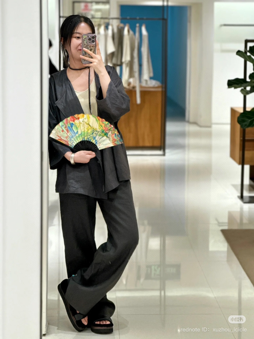 一本正经全部扣上有点像女总,但是敞开穿则是完全不一样的感觉,松弛感拉满。很素雅,很有意境, 一根纤细腰带,可收腰,也可以就这么飘着