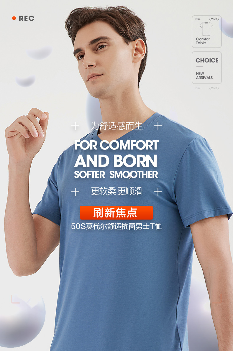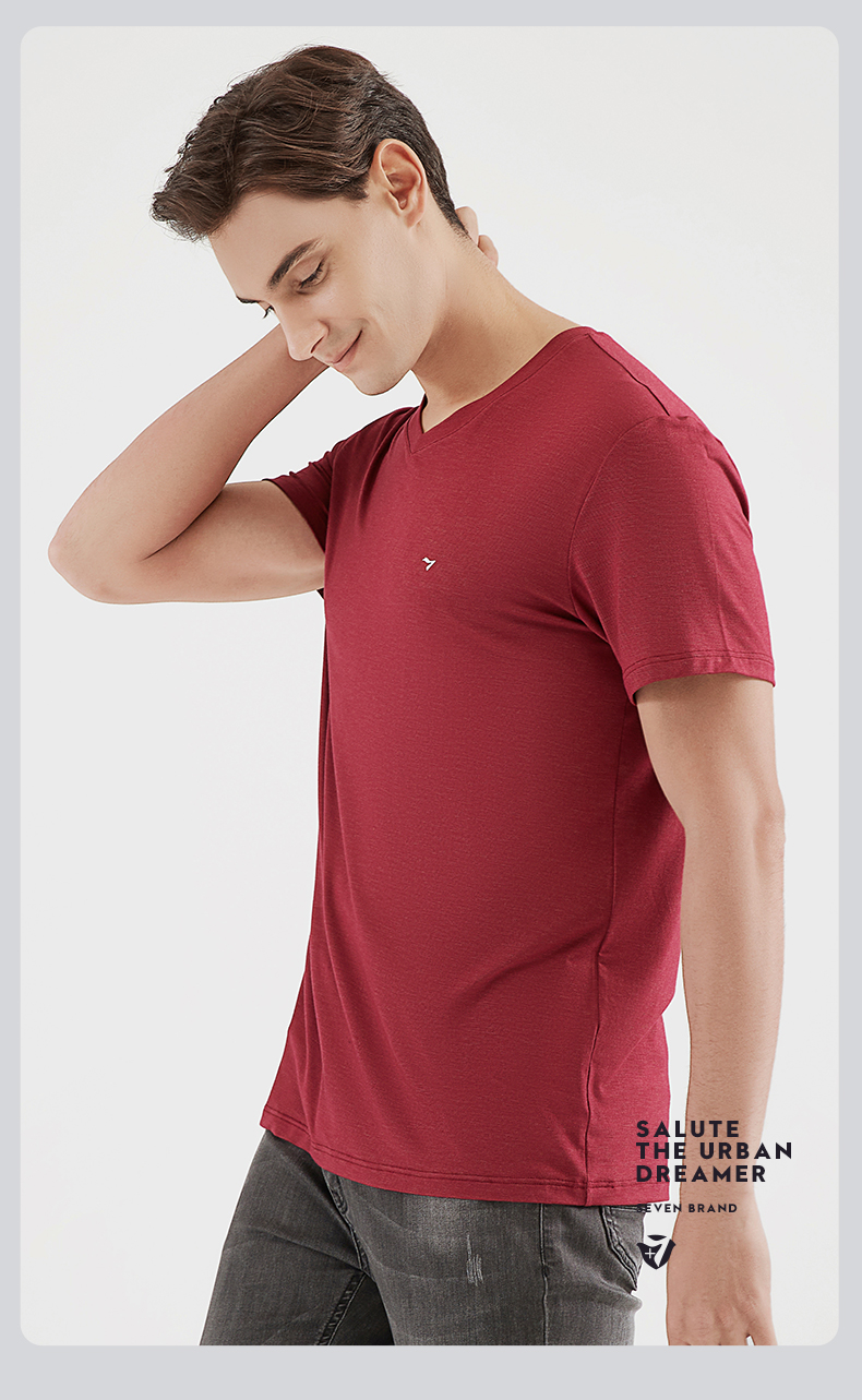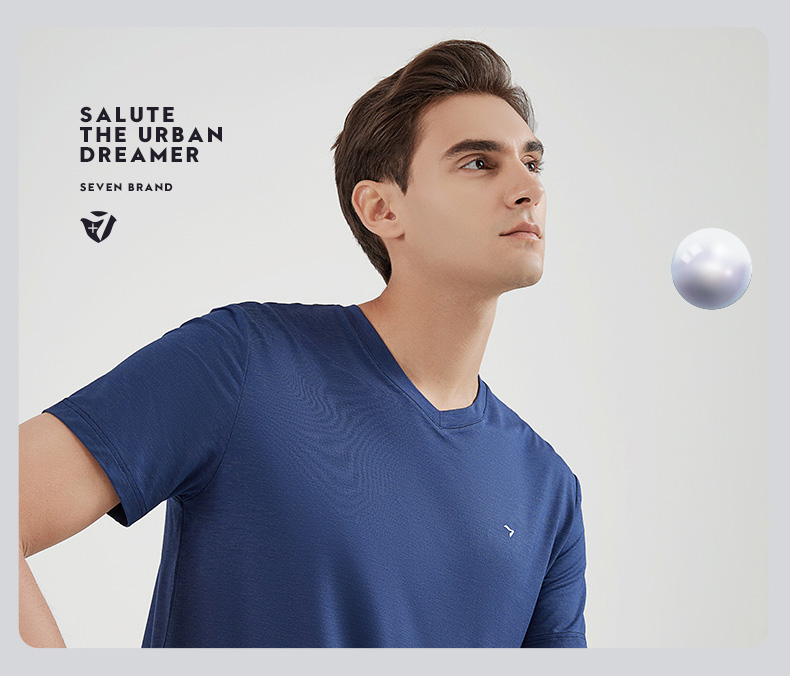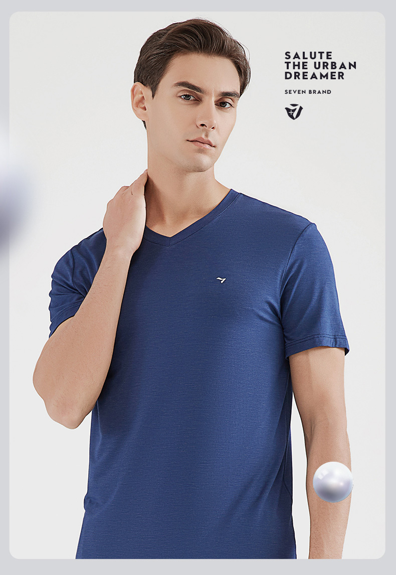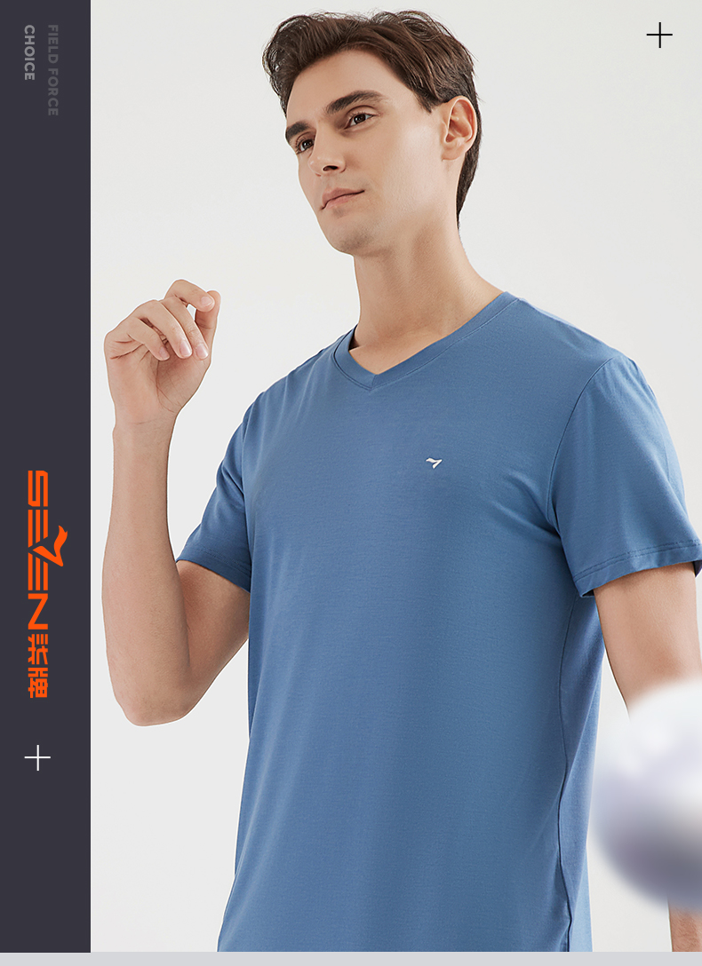 【清仓】柒牌男装短袖T恤2021夏季新款莫代尔打底衣中青年运动休闲V领汗衫 120F72030