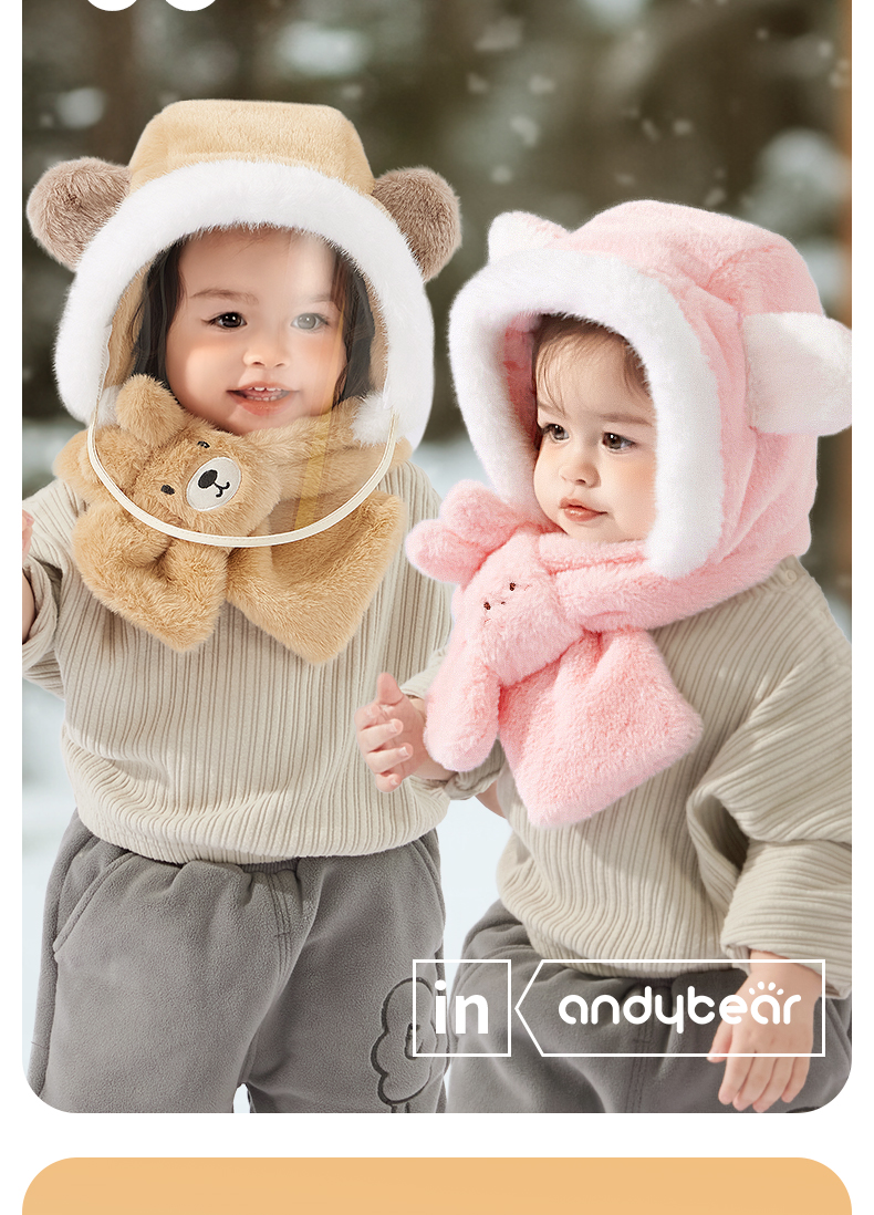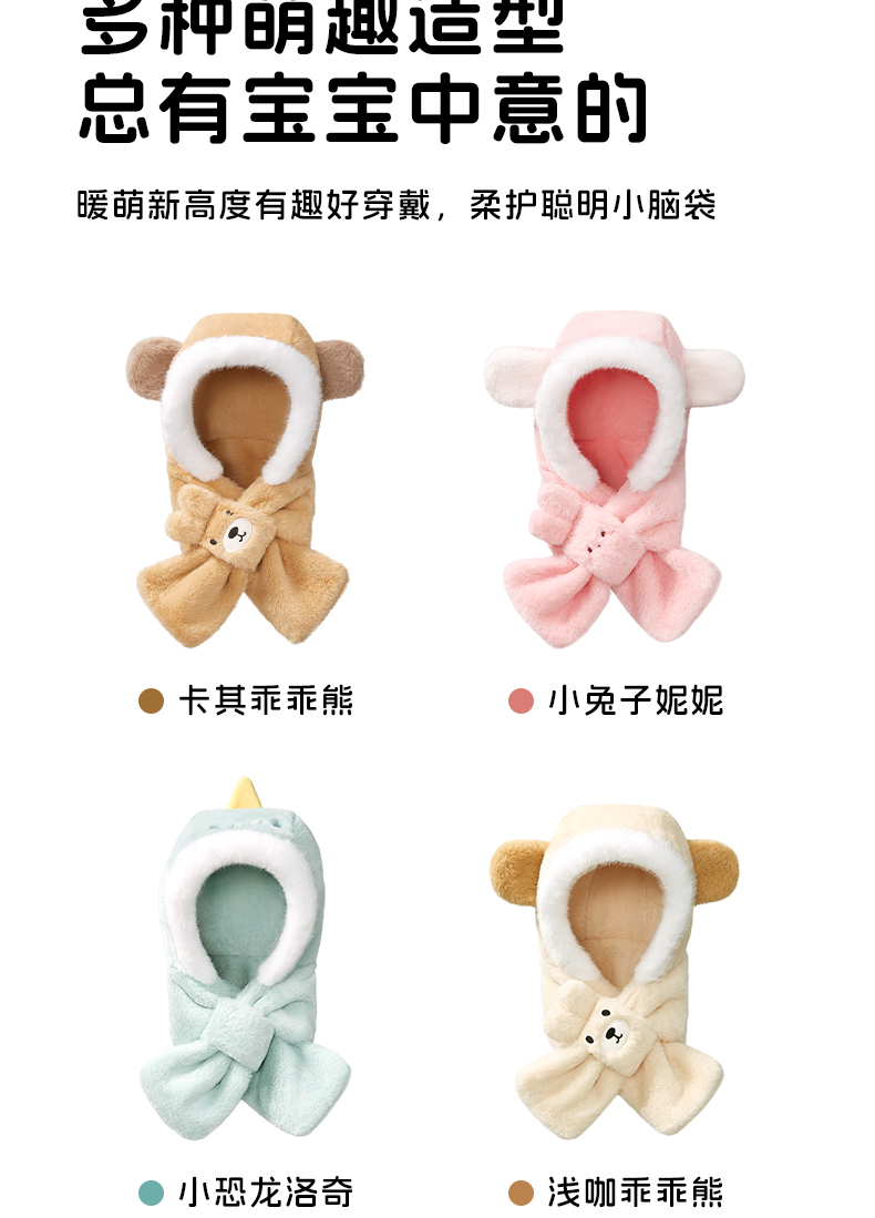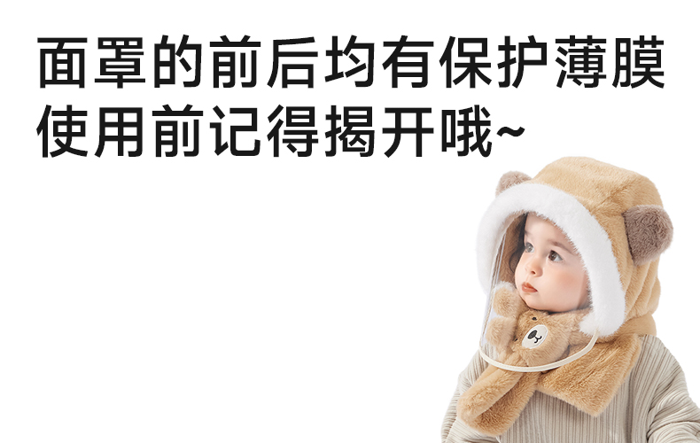 儿童帽子秋冬季防风面罩男女童户外骑行护耳套头帽宝宝围巾一体帽