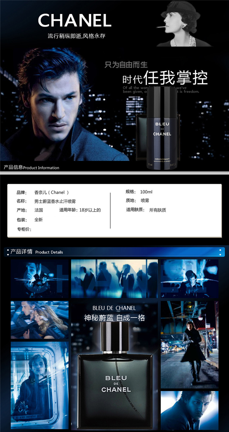 CHANEL/香奈儿 蔚蓝男士止汗香体清新喷雾100ml