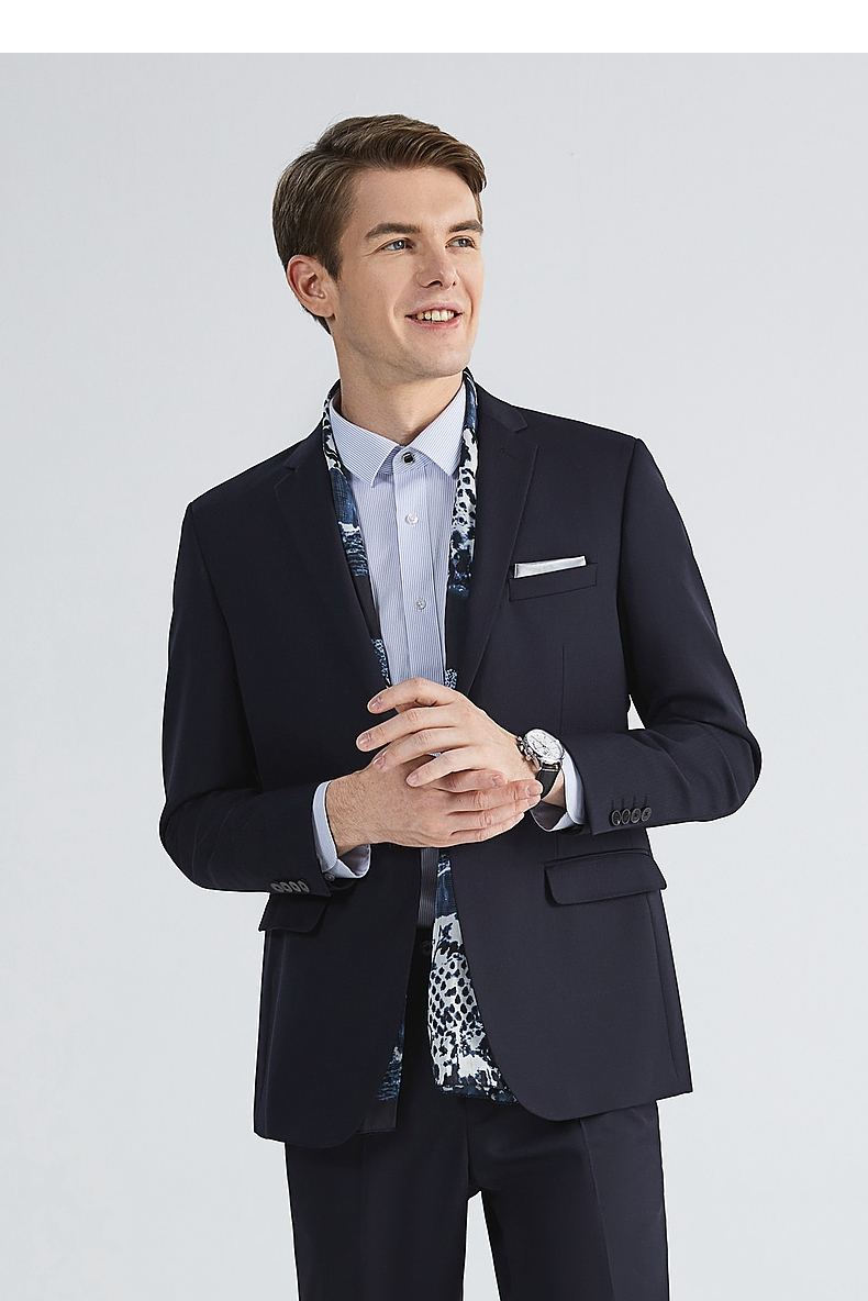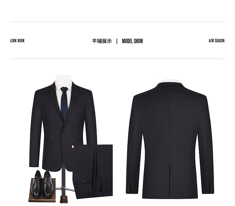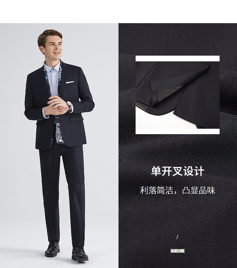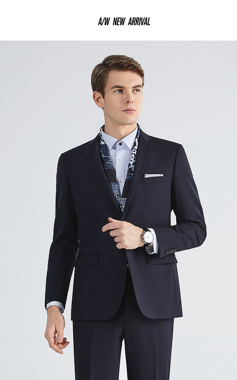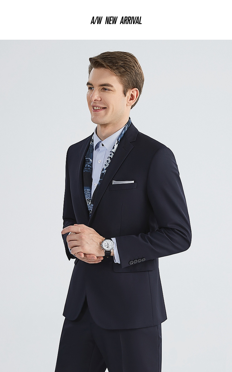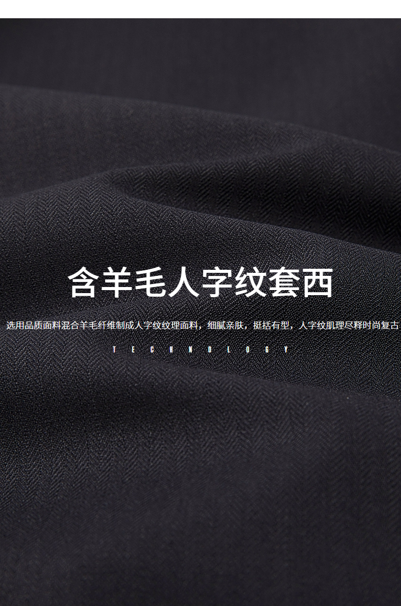 【含羊毛】柒牌西装套装男秋季新款商务绅士人字纹西服两件套 123C70430